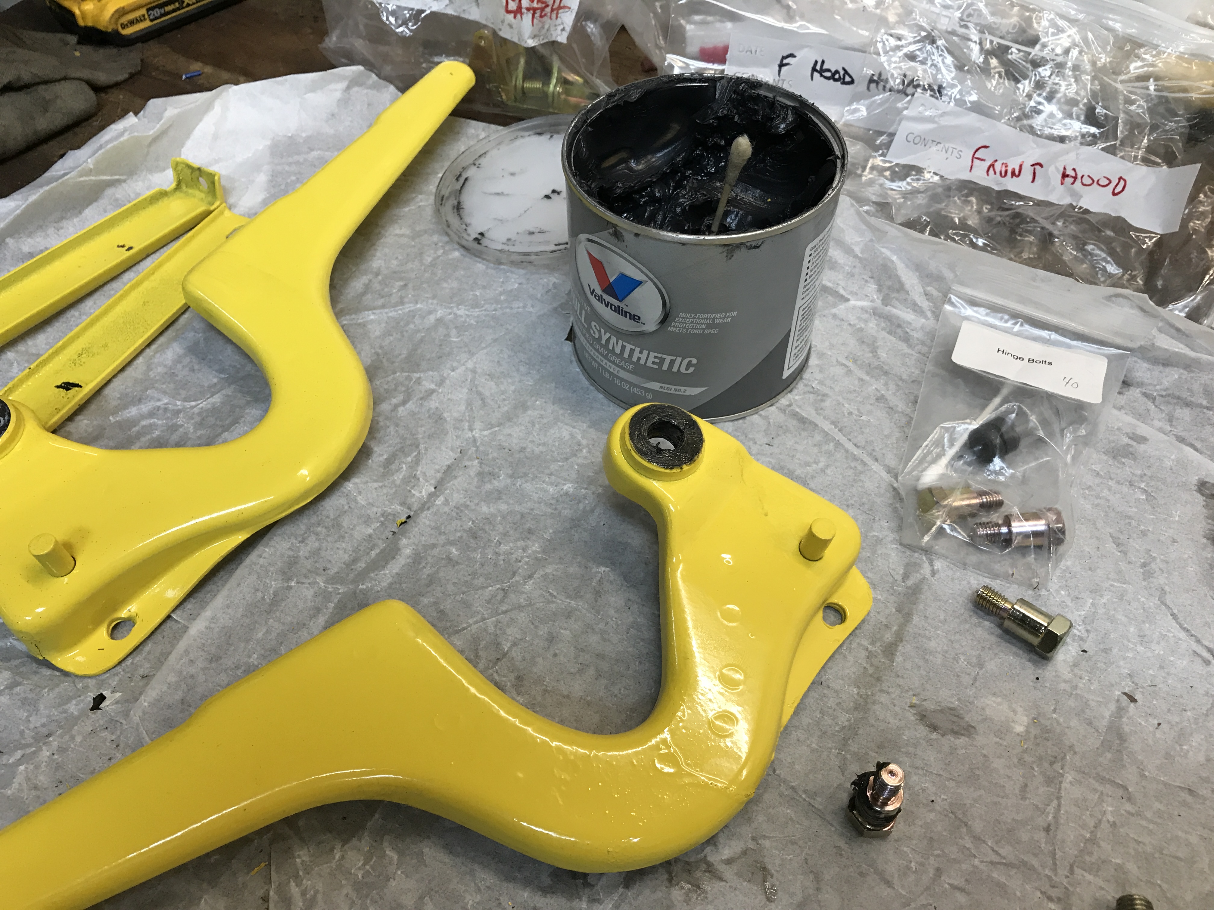 And I got out the front and rear lid hinge brackets, to test the fit of new hardware.