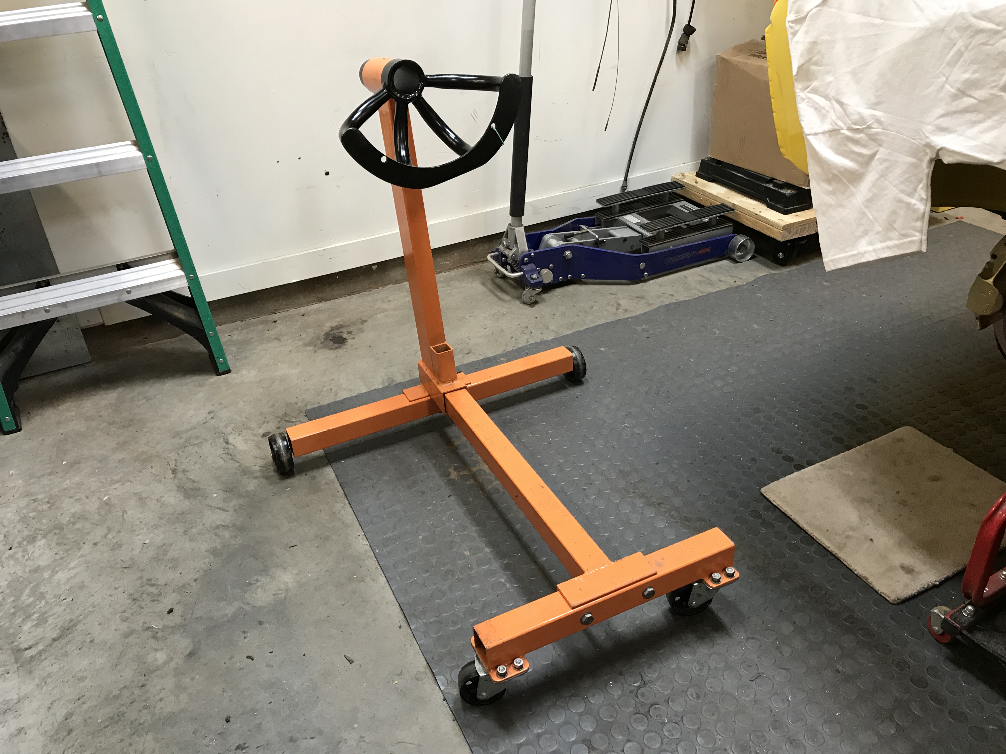 While I wait for some more orders to arrive I re-arranged my work space a bit, and got the stand out. Time to start some engine work. Soon.