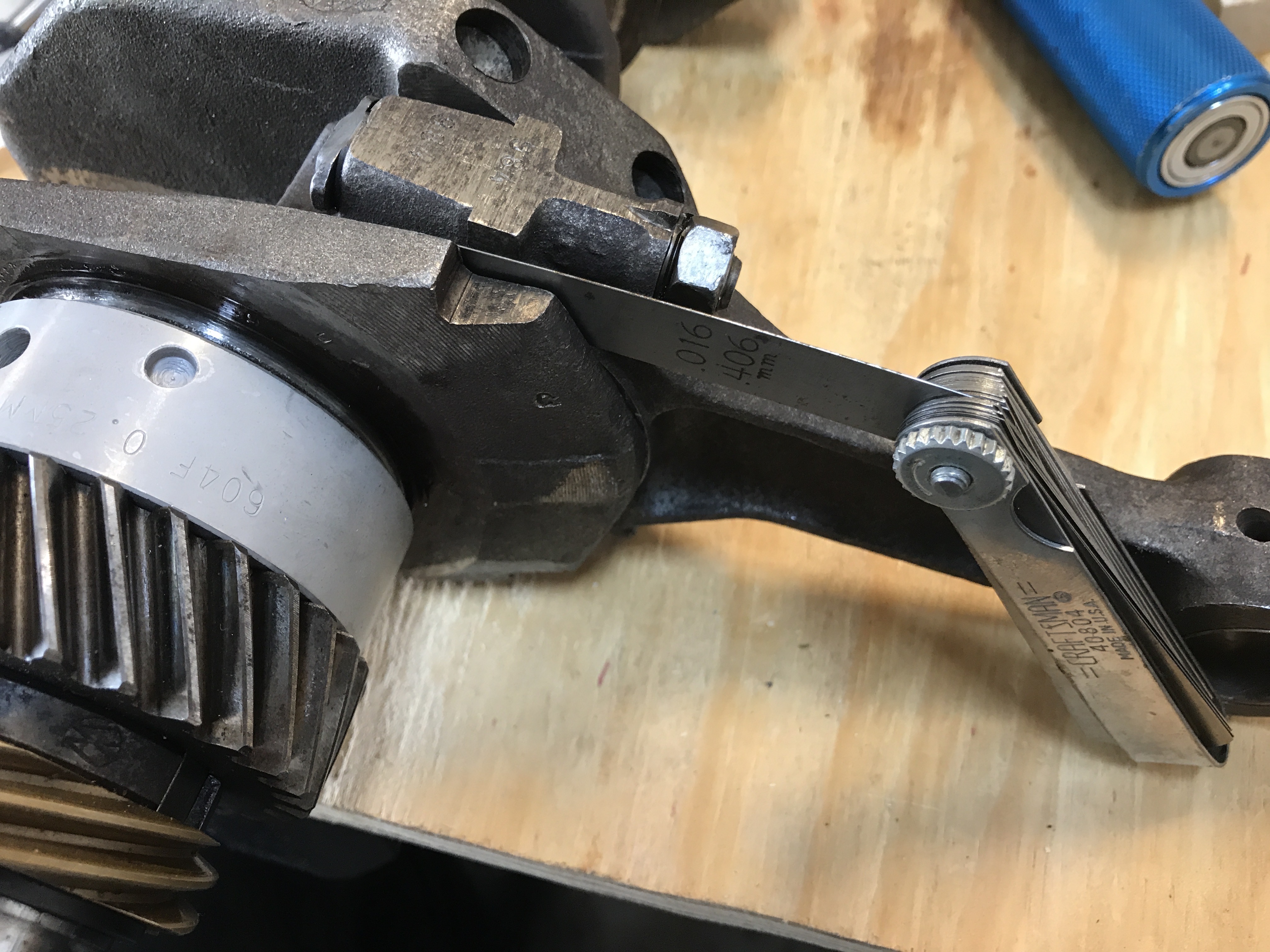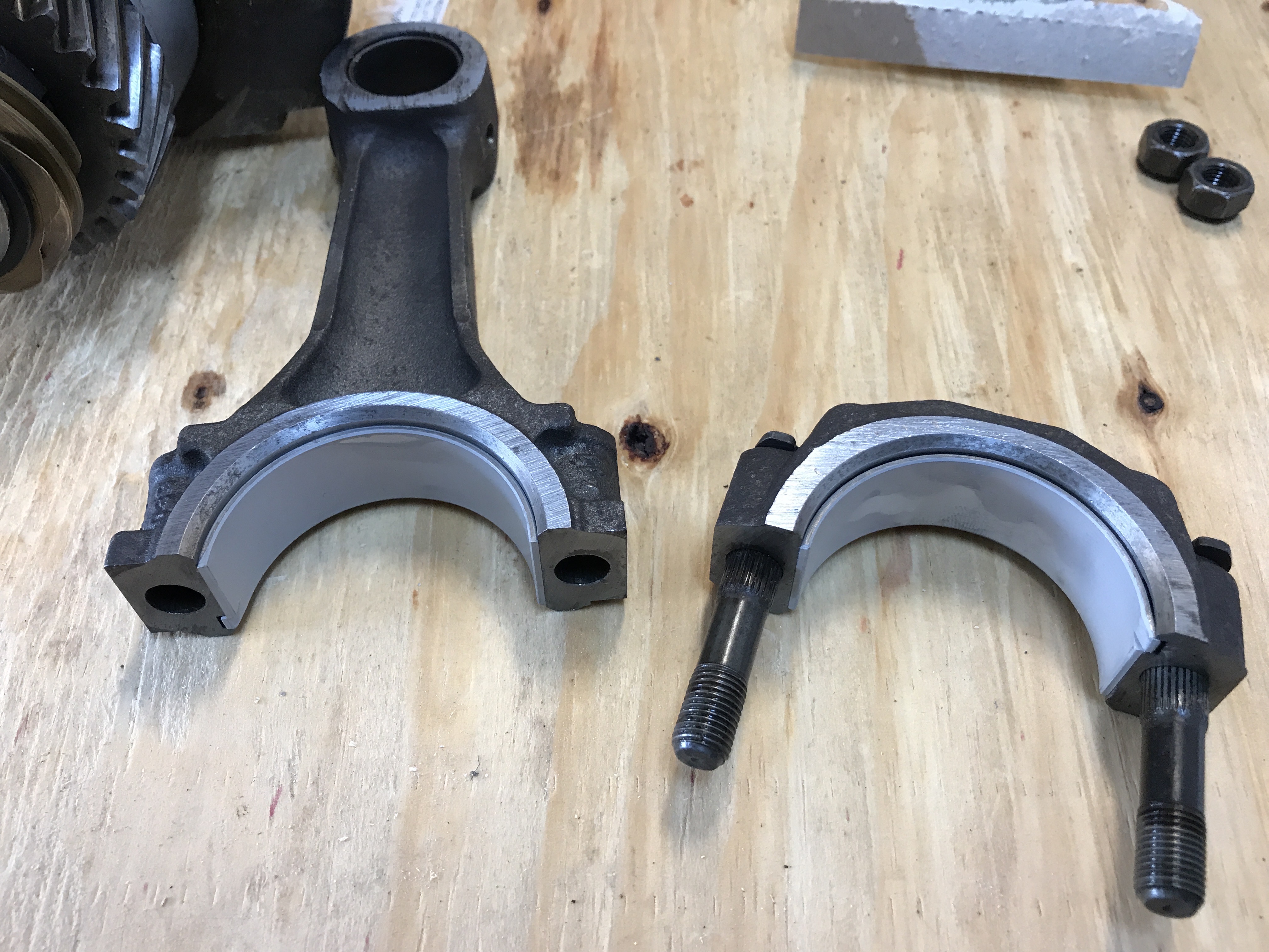 While the rod was still on the crank, I checked the side clearance, and got 0.016 inch, just within the 0.004 to 0.0016 spec.