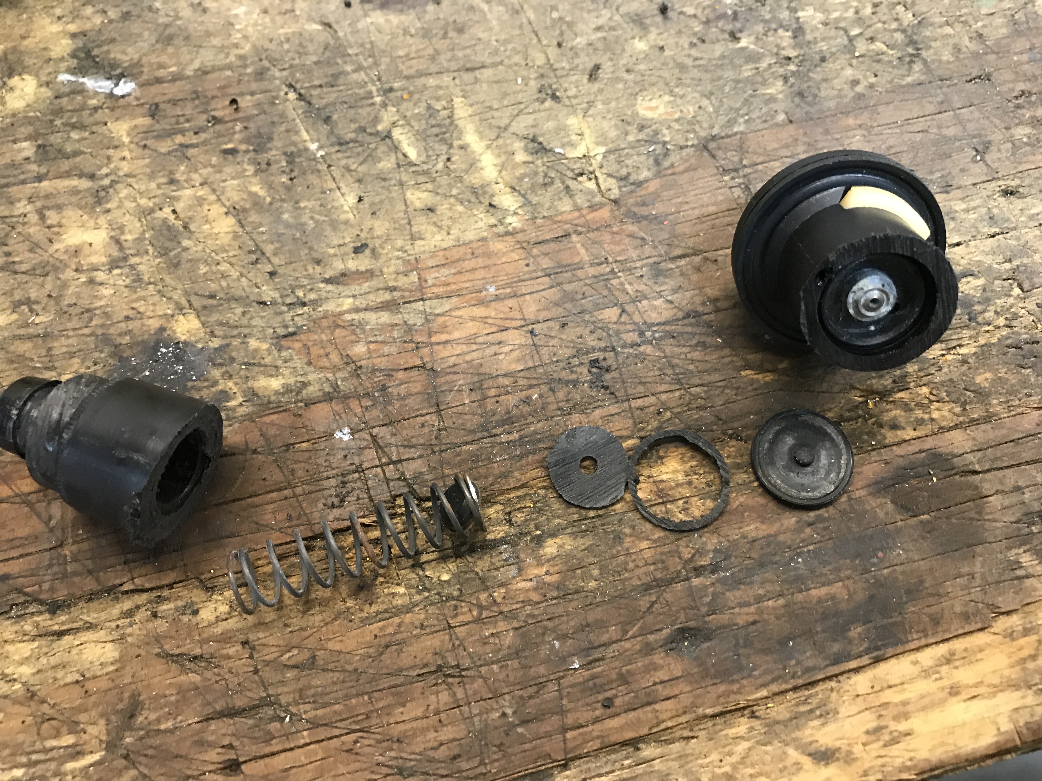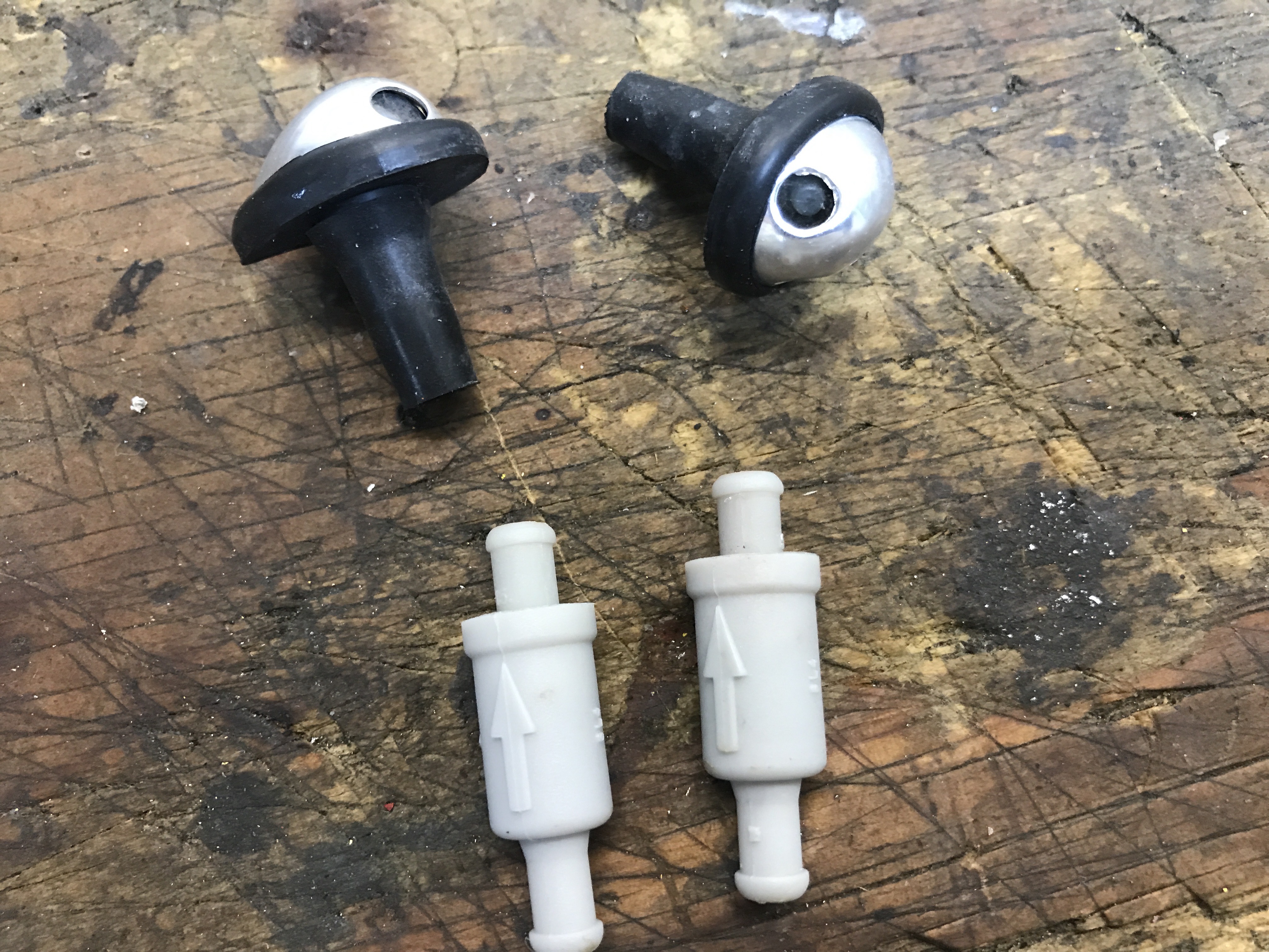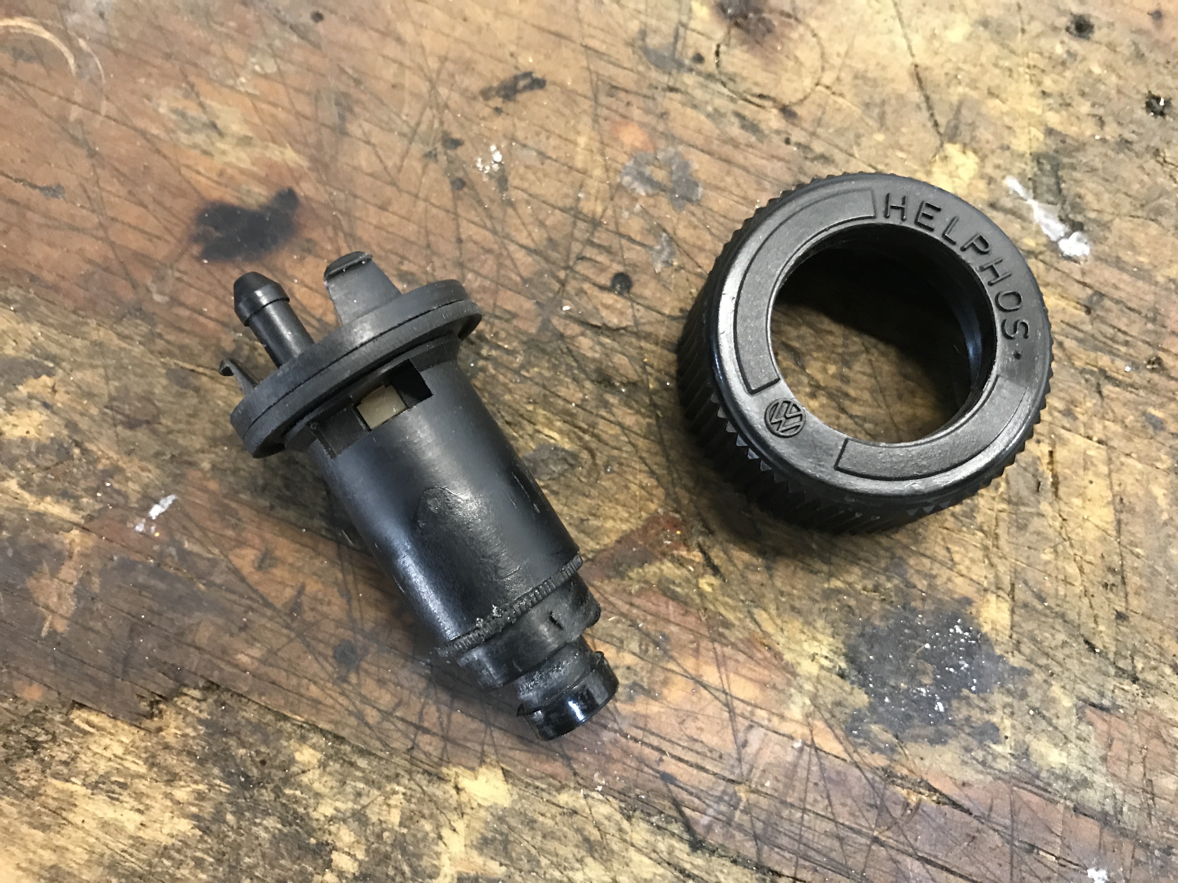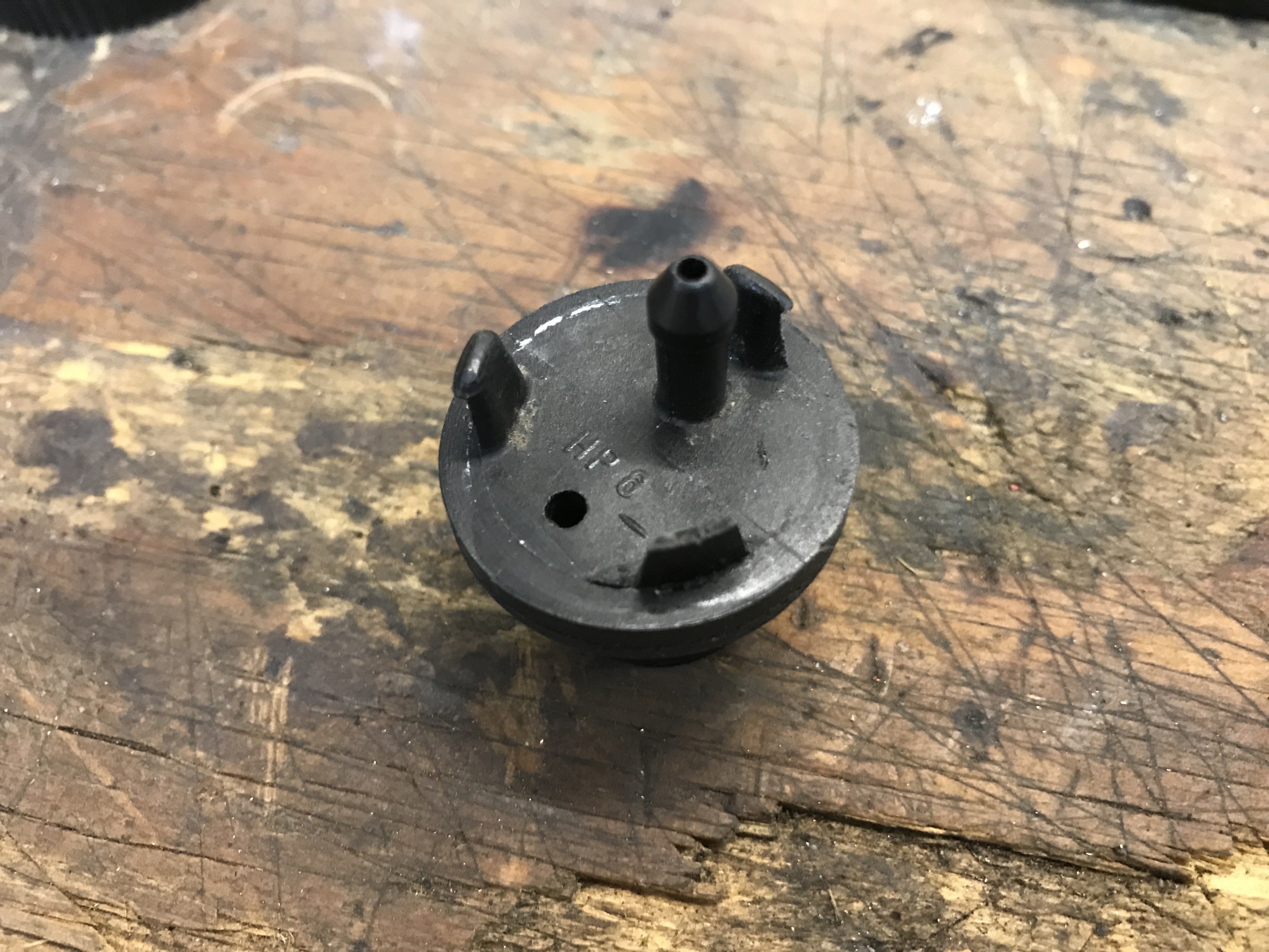 Now for the reservoir cap. Of course, this was originally set up to feed air pressure from the spare tire. Now I need it to vent to the atmosphere, but not allow fluid to slosh out.