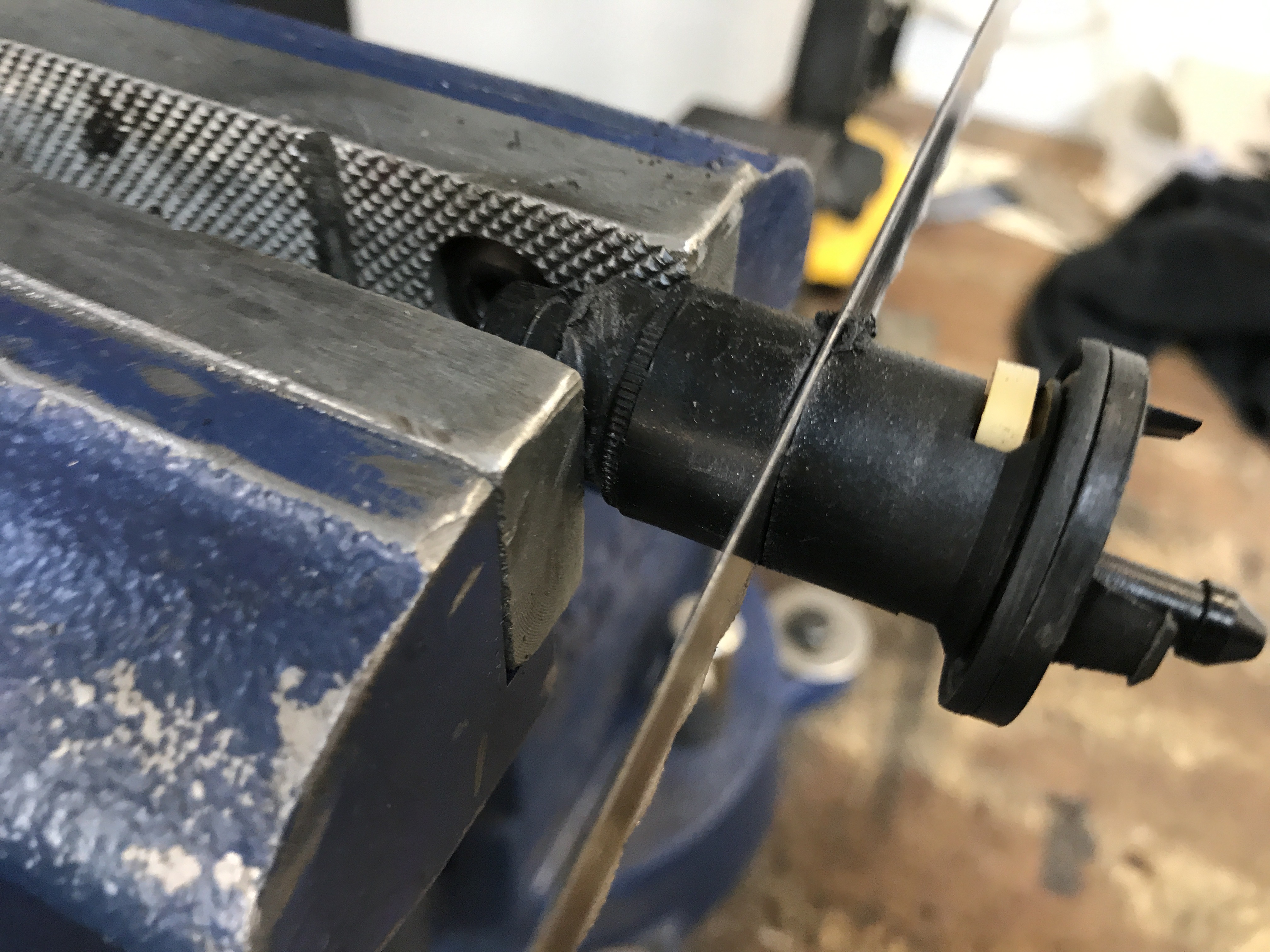 Then the squirters get inserted, and wiggled about to seat the rubber flange.