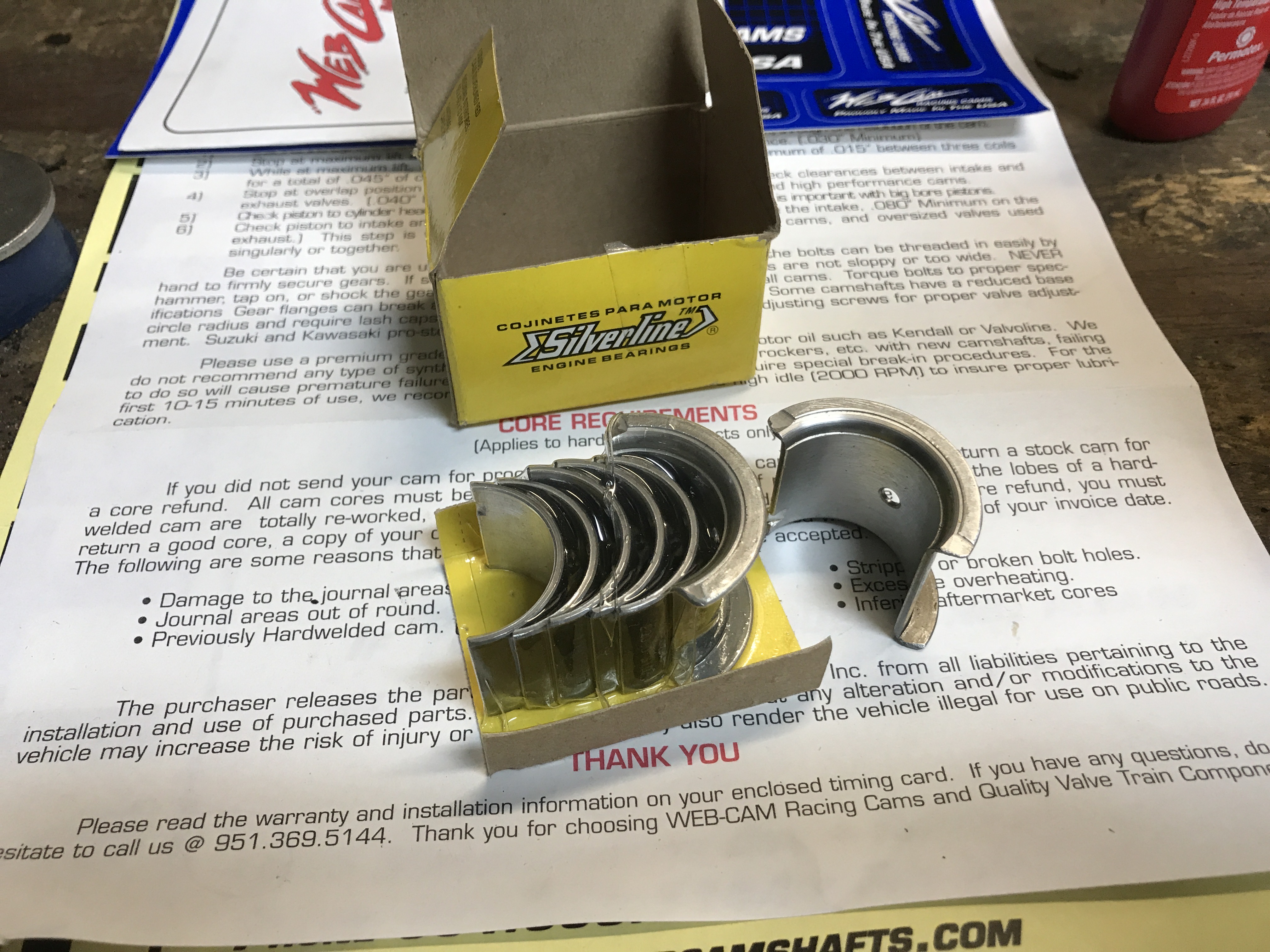 Then time for the cam bearings. I have a full set, plus an extra half with thrust edges.