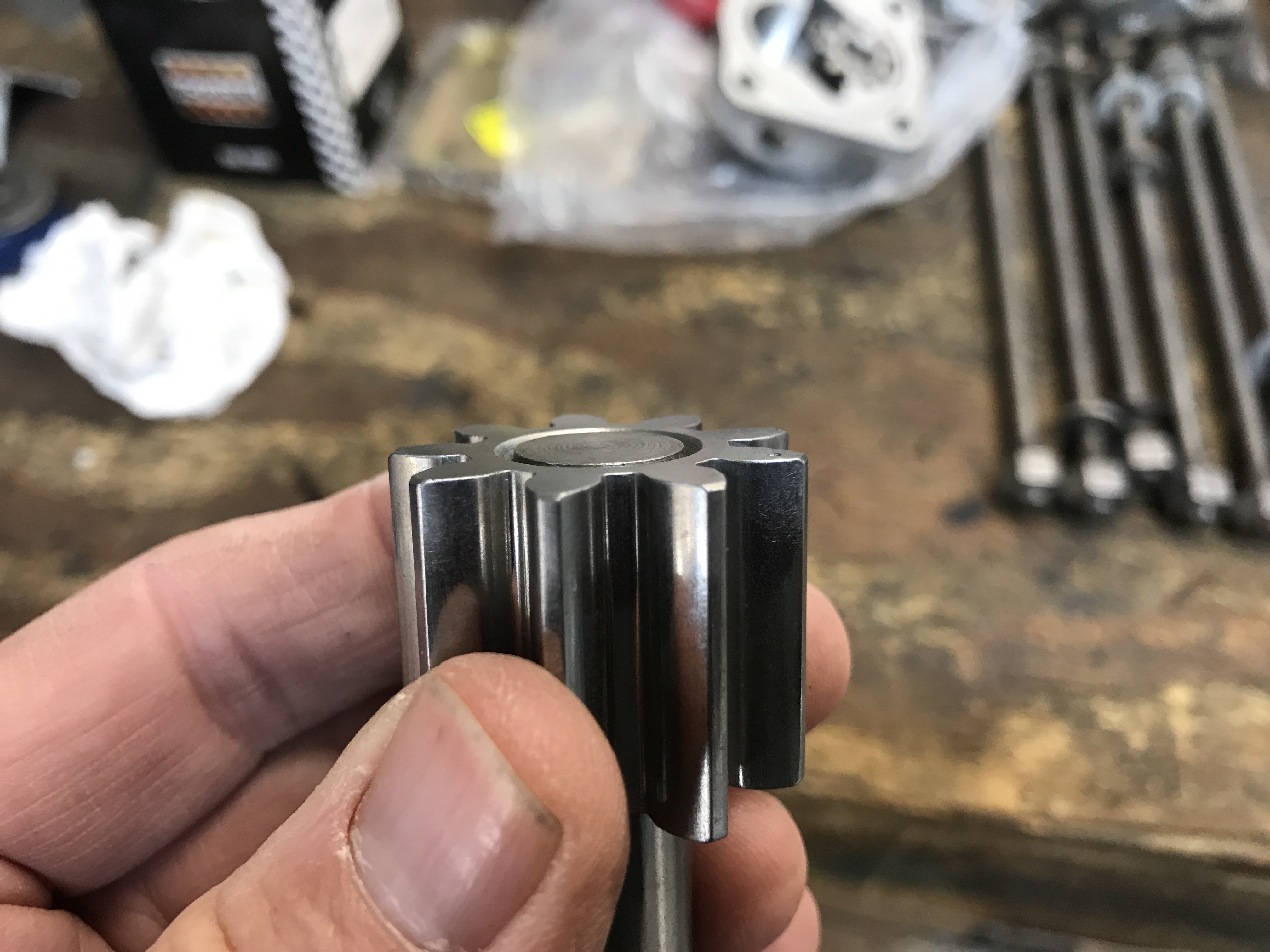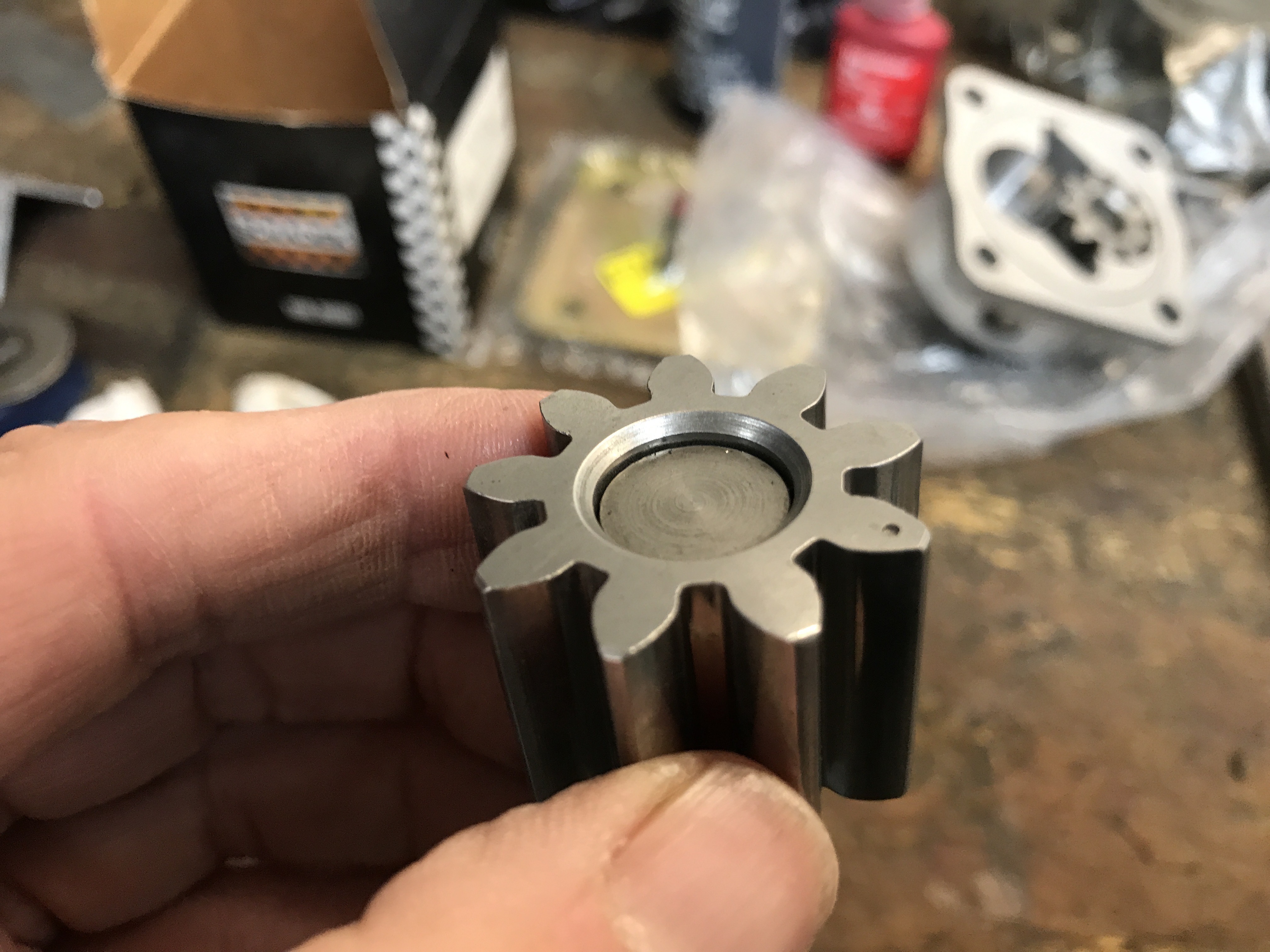 But then found another problem. The rotor stud is bottoming out against the cam end, and so does not sit completely inside the pump body.