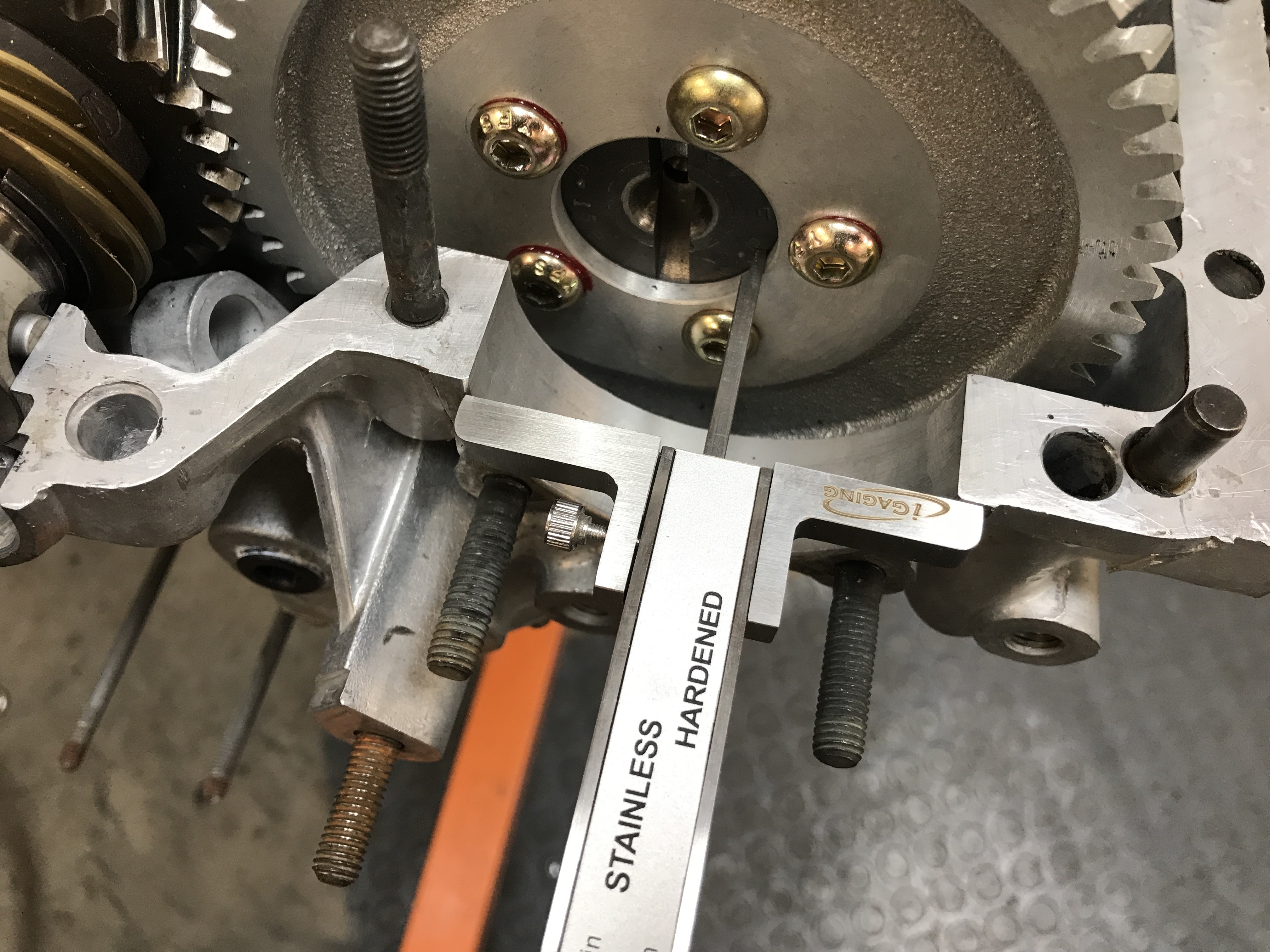 I also checked the clearance of the oil pump case against the end of the cam. The depth to the cam end is 38.85 mm.