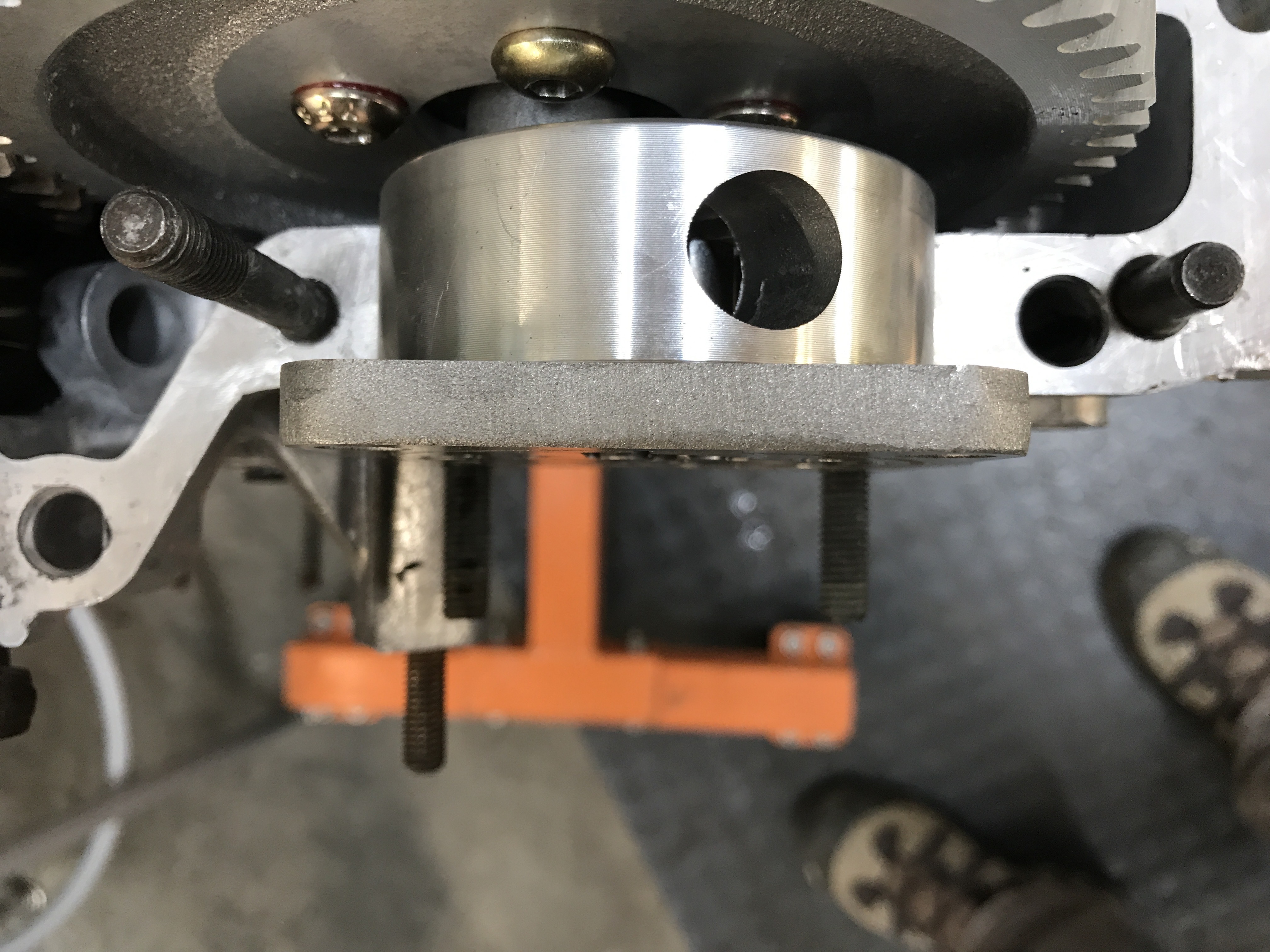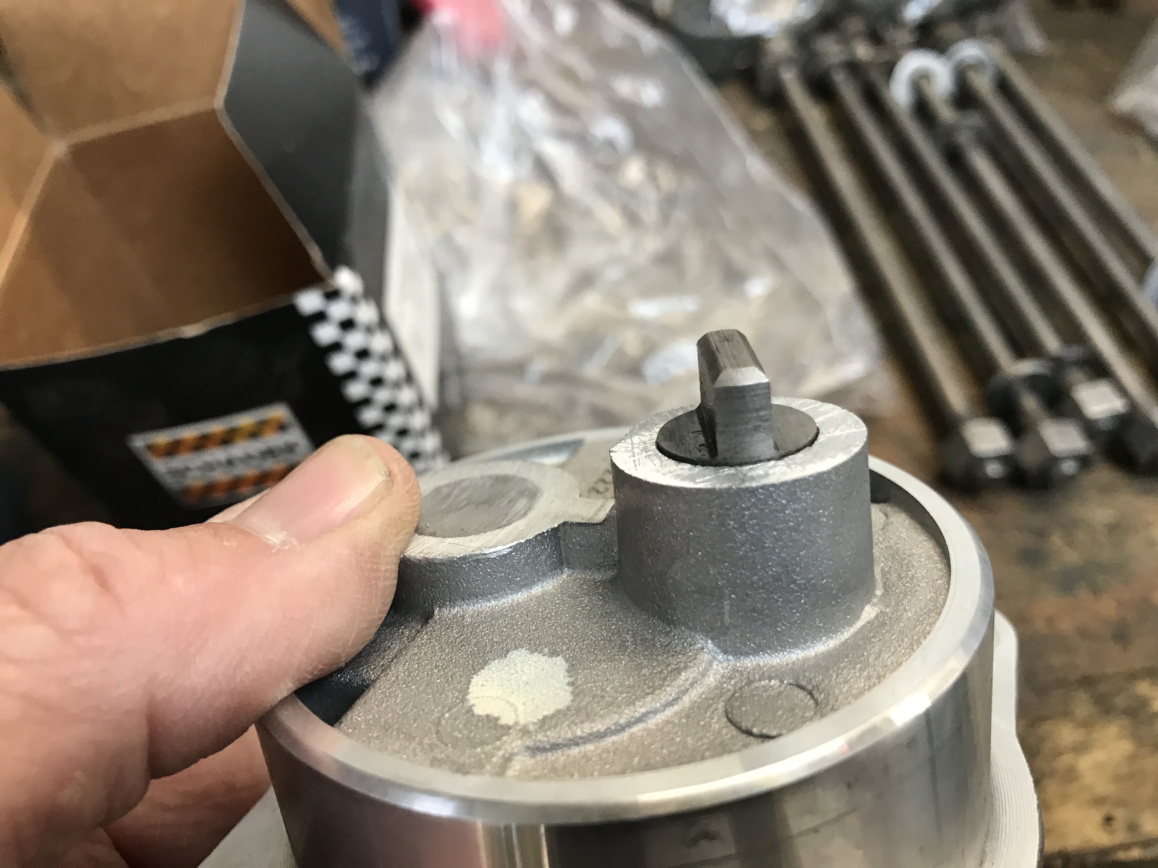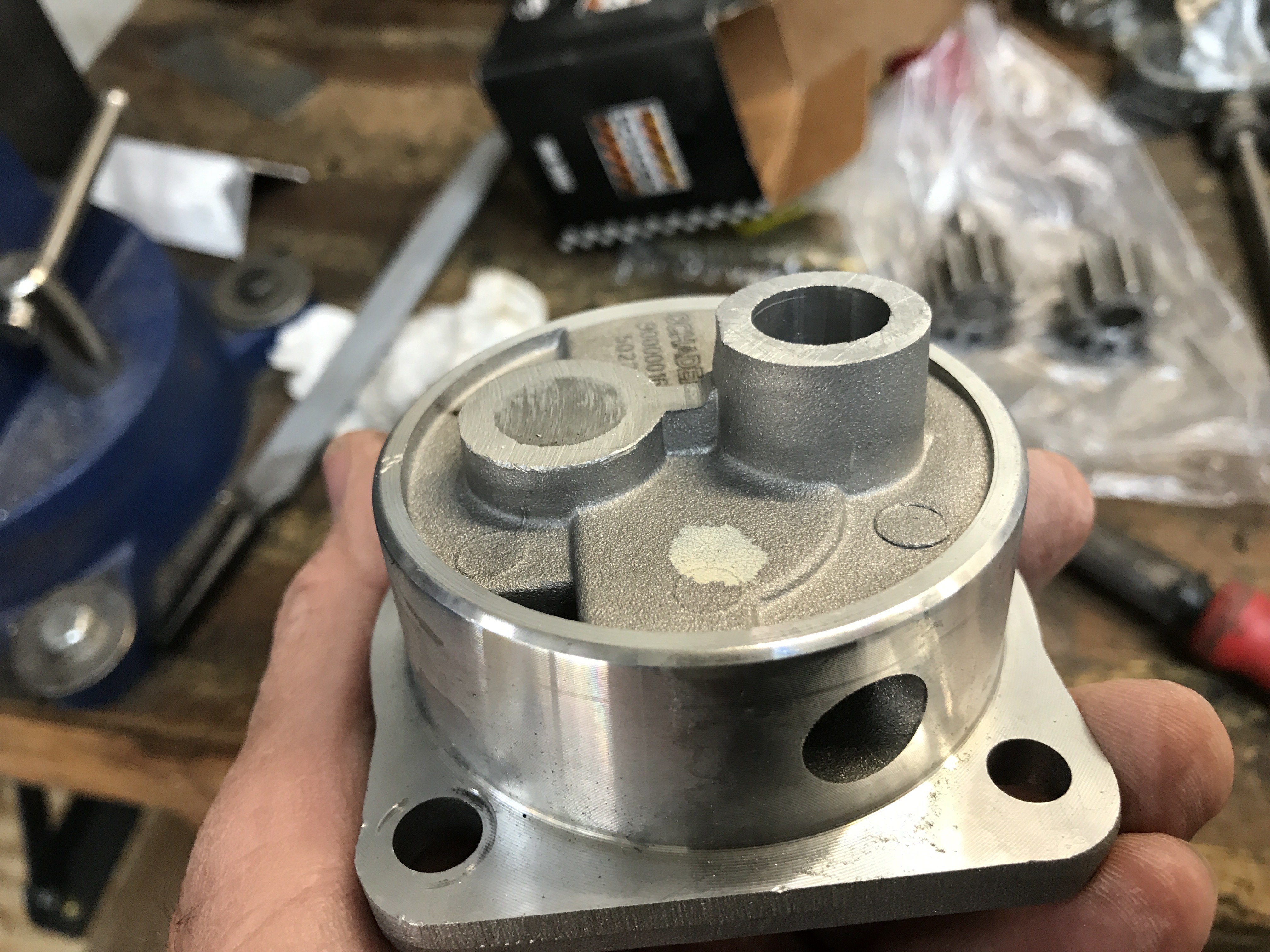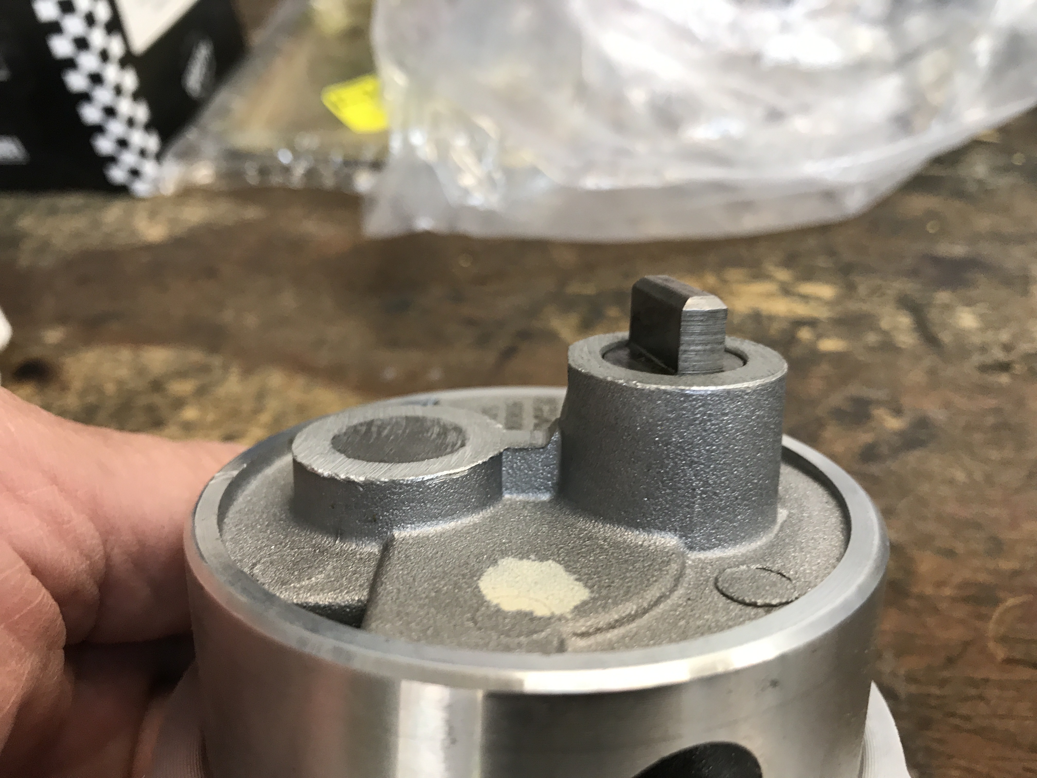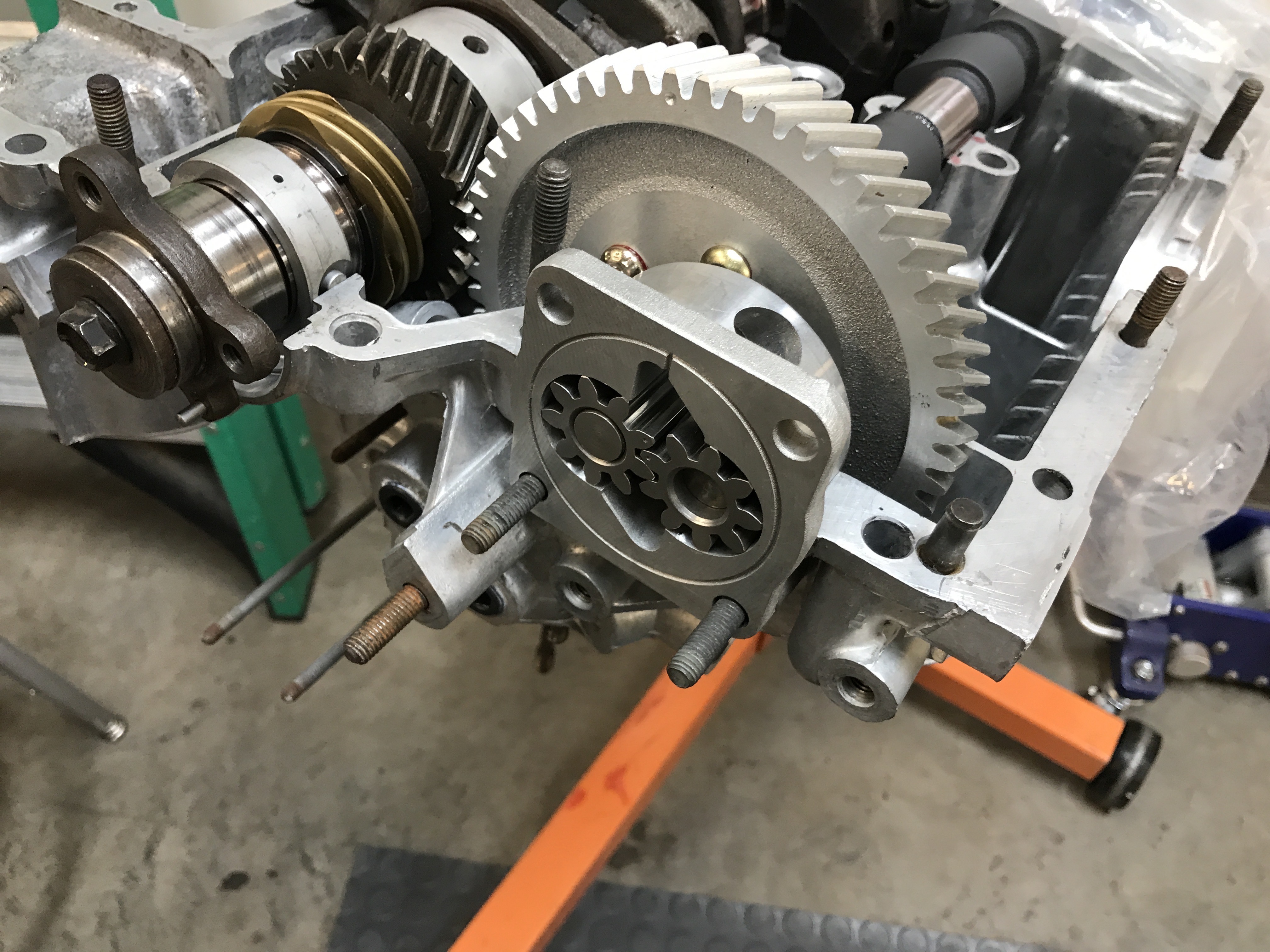 Now the pump sits tight into the engine case, with about 0.75 mm clearance with the cam end (without any gaskets).