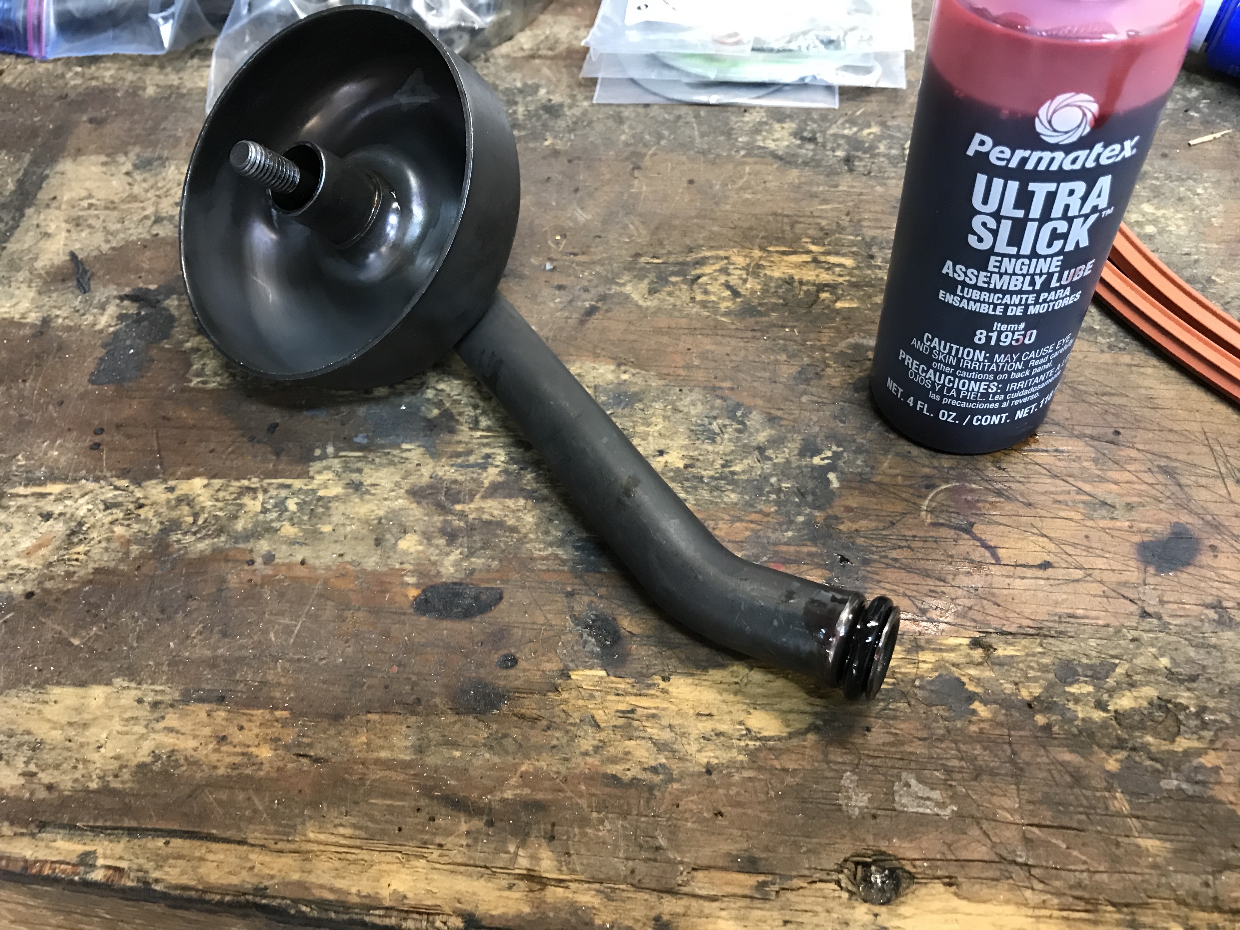 I replaced the oil pickup tube O-ring, and gave it a bit of assembly lube (red).
