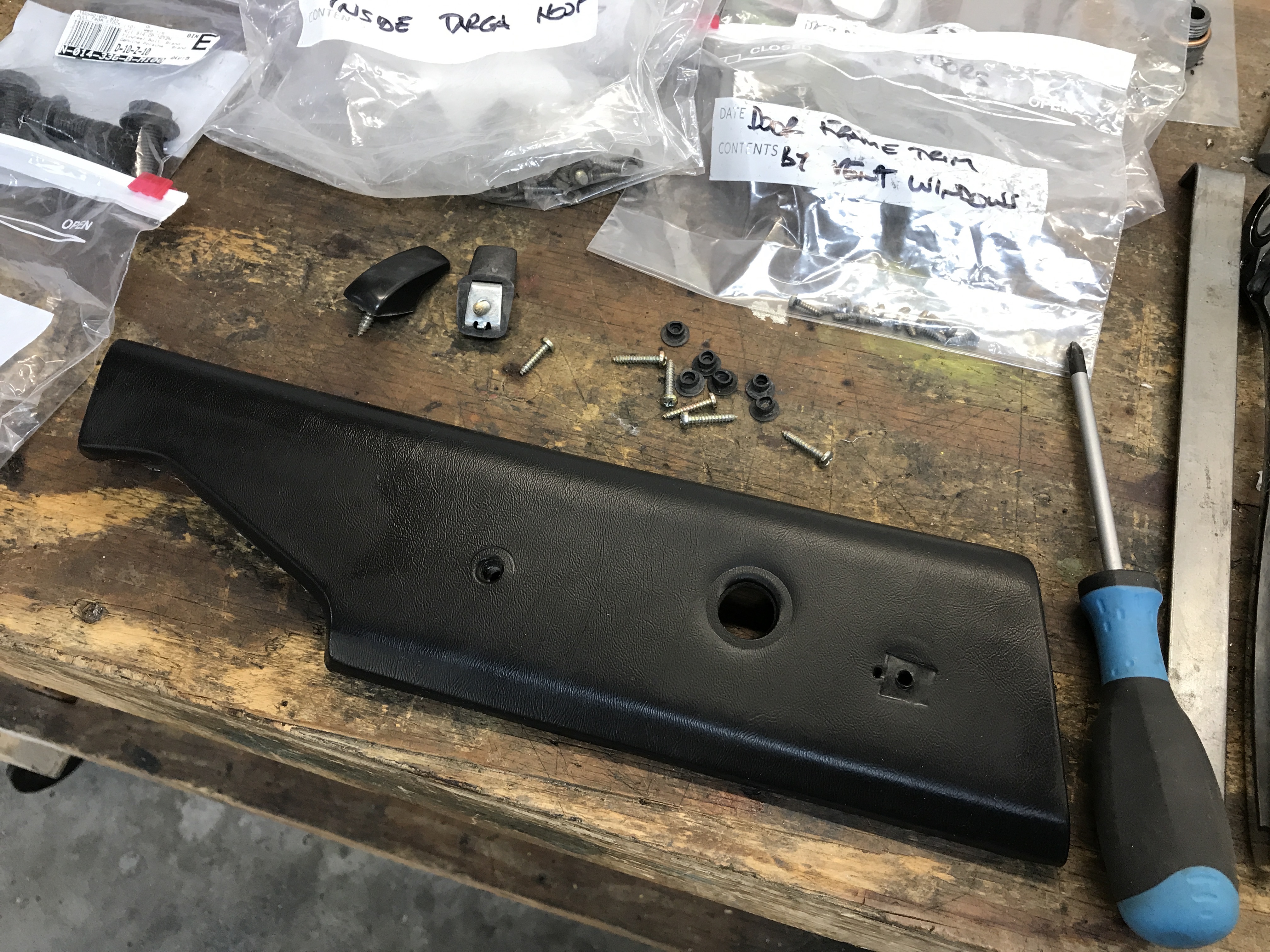 Meanwhile, back to working on the body trim. I got out the targa inside pads and hardware.