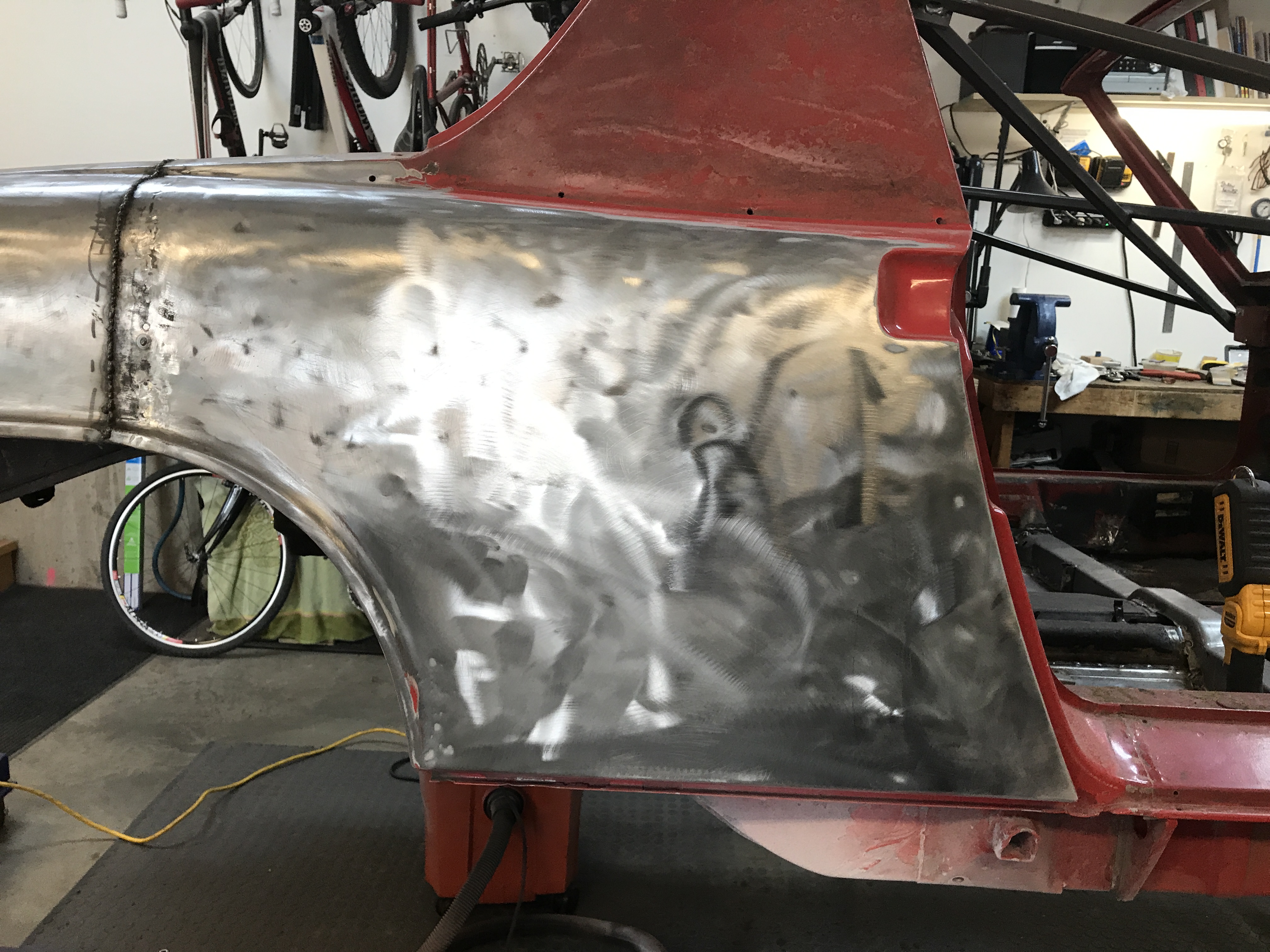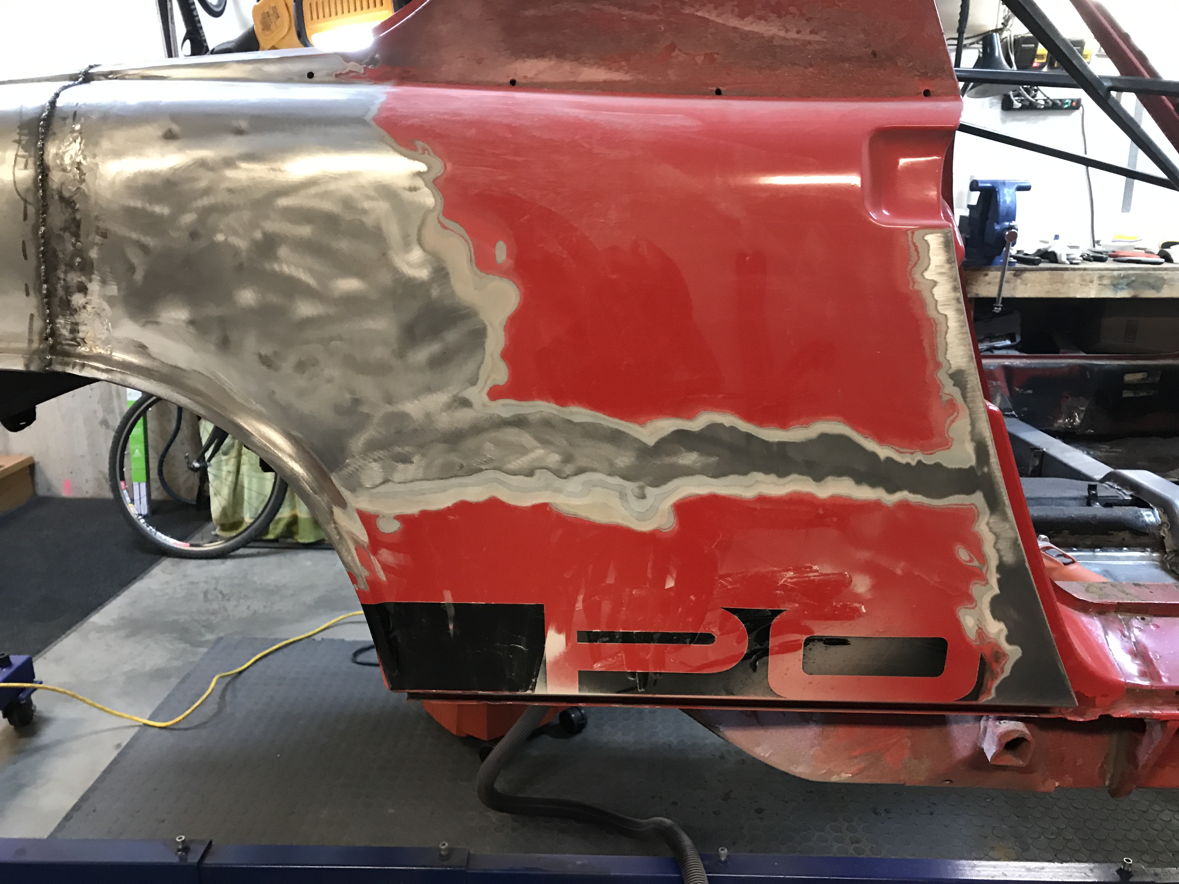 After a couple of hours of quality time with my angle grinder and die grinder, things are looking better. A few spots and holes to re-weld.