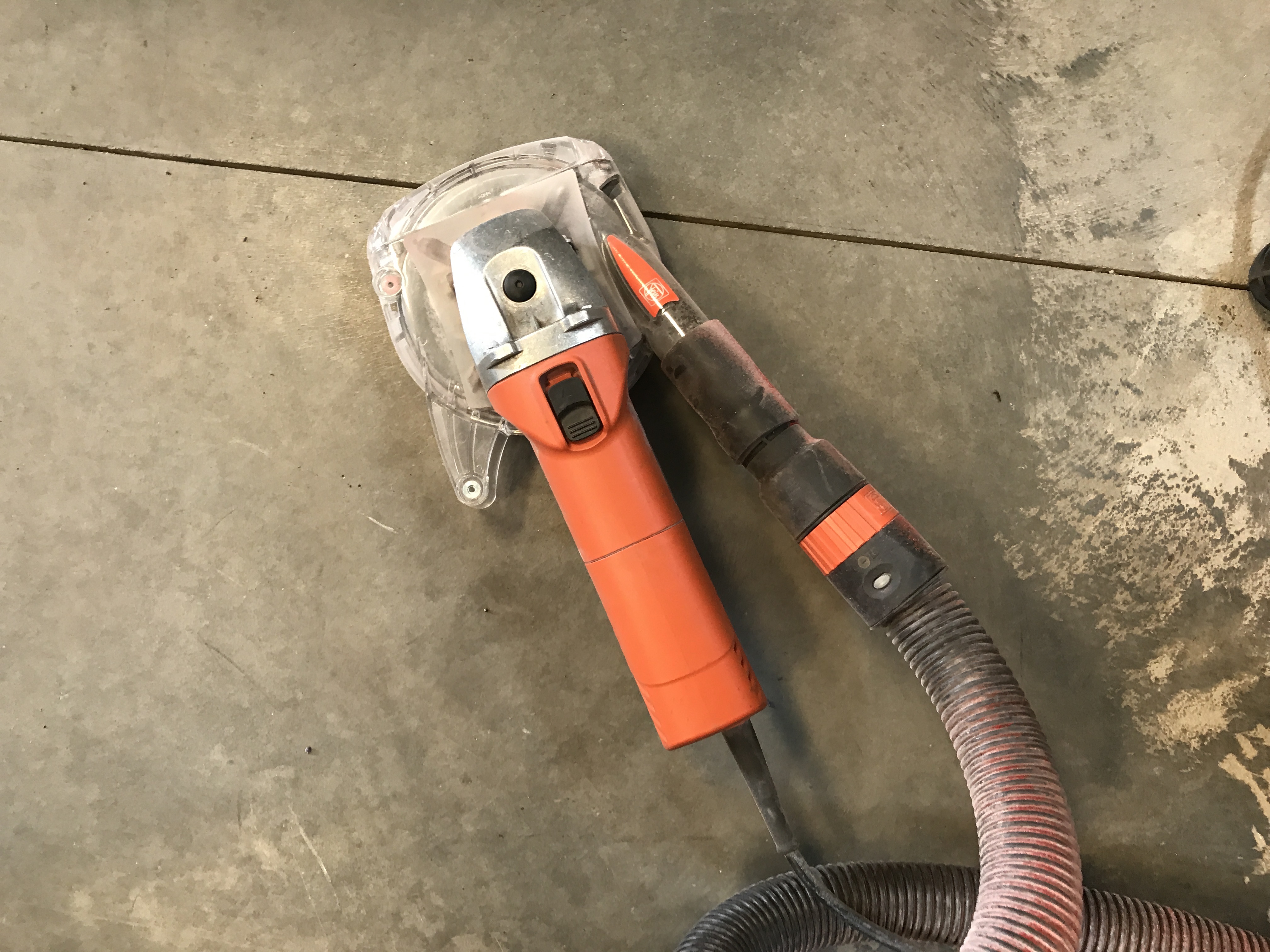 To minimize the mess I mounted the Fein dust shield on the angle grinder. Not 100% but much better than without it.