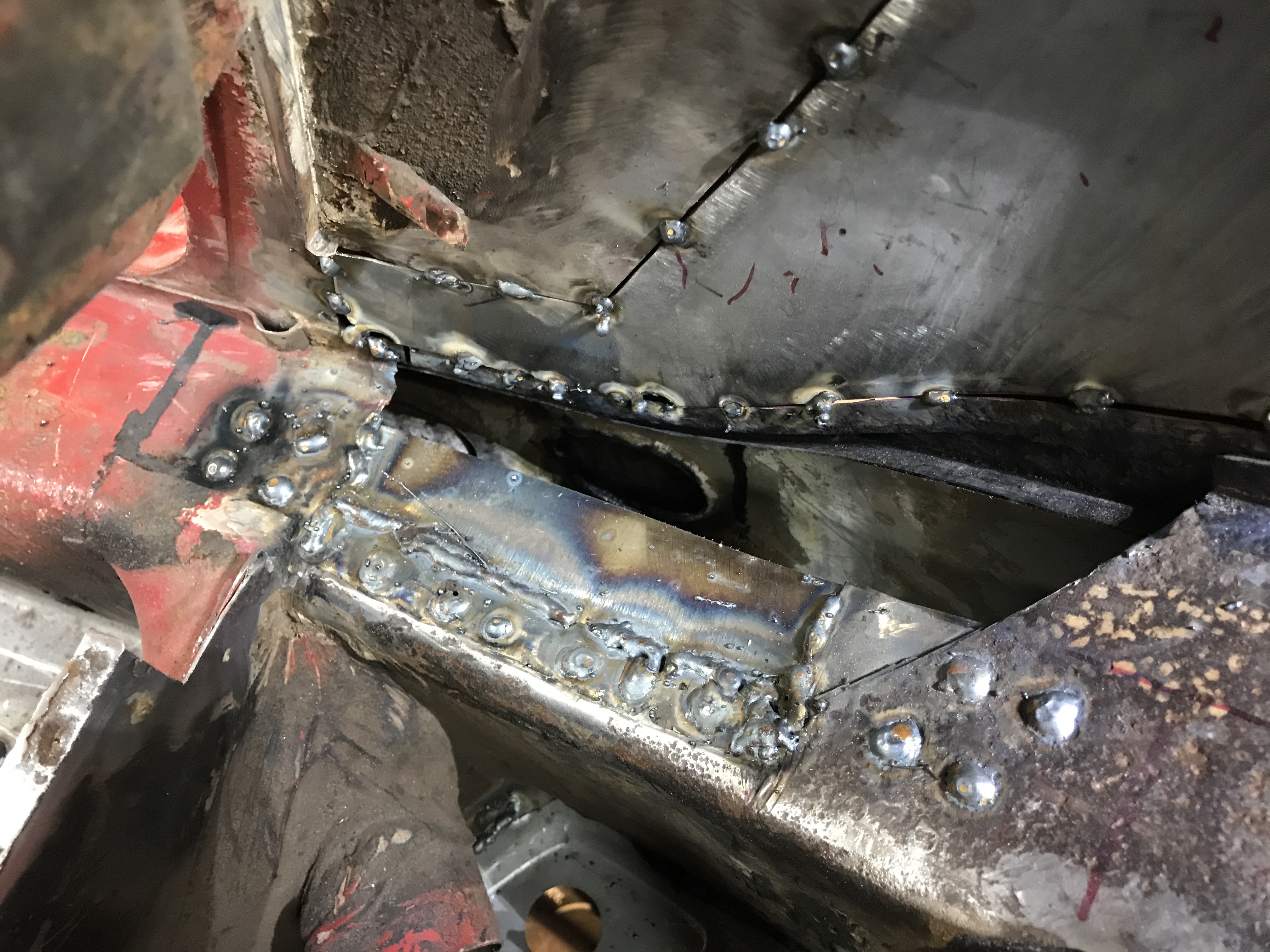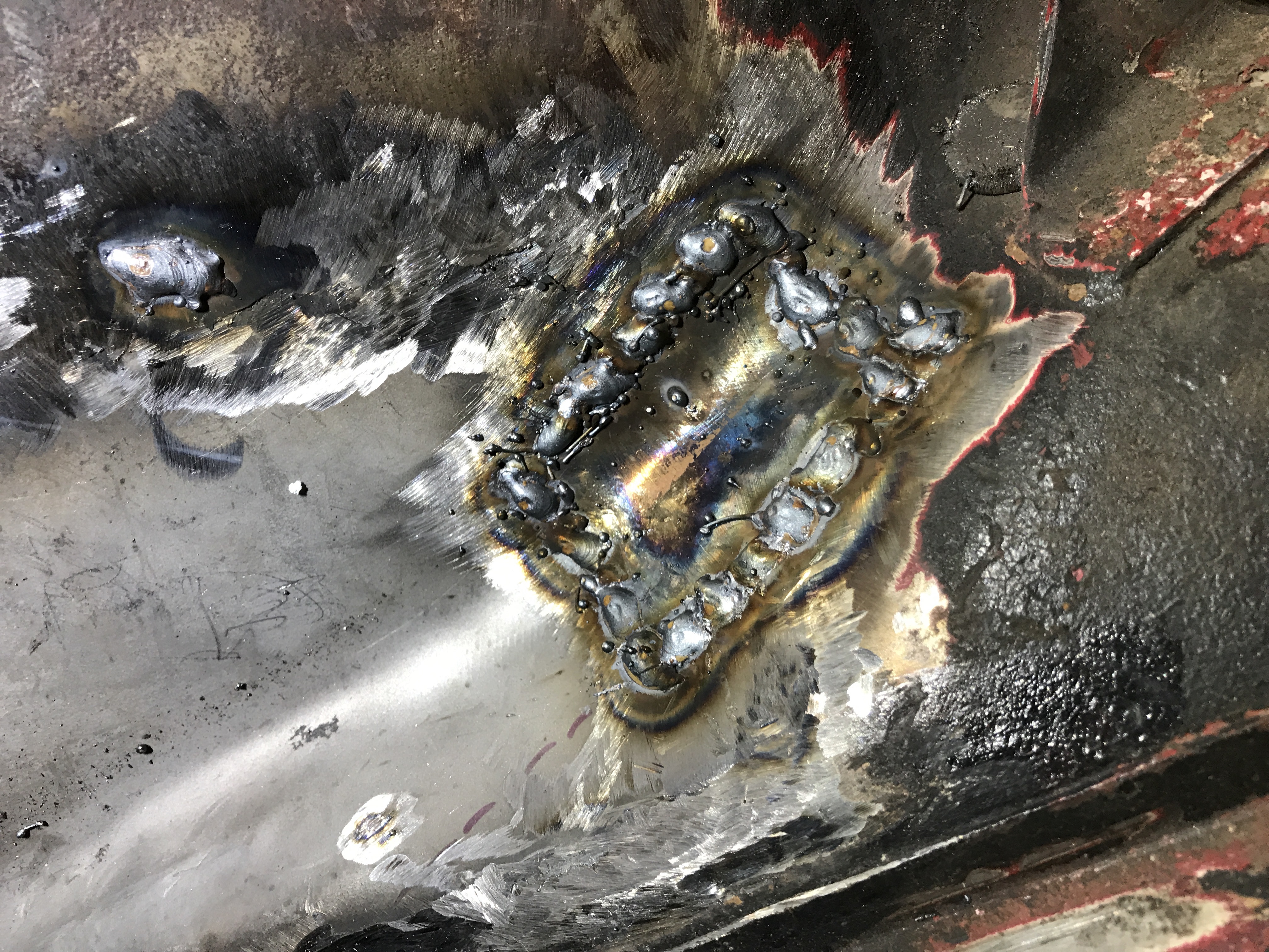 Did some grinding and then tried to finish the butt seam welding around the patch. Got it done, but very frustrating with lots of burn-throughs. The final result is ugly, with lots of thick spot welds and big boogers. That will lead to more quality time with my grinder.