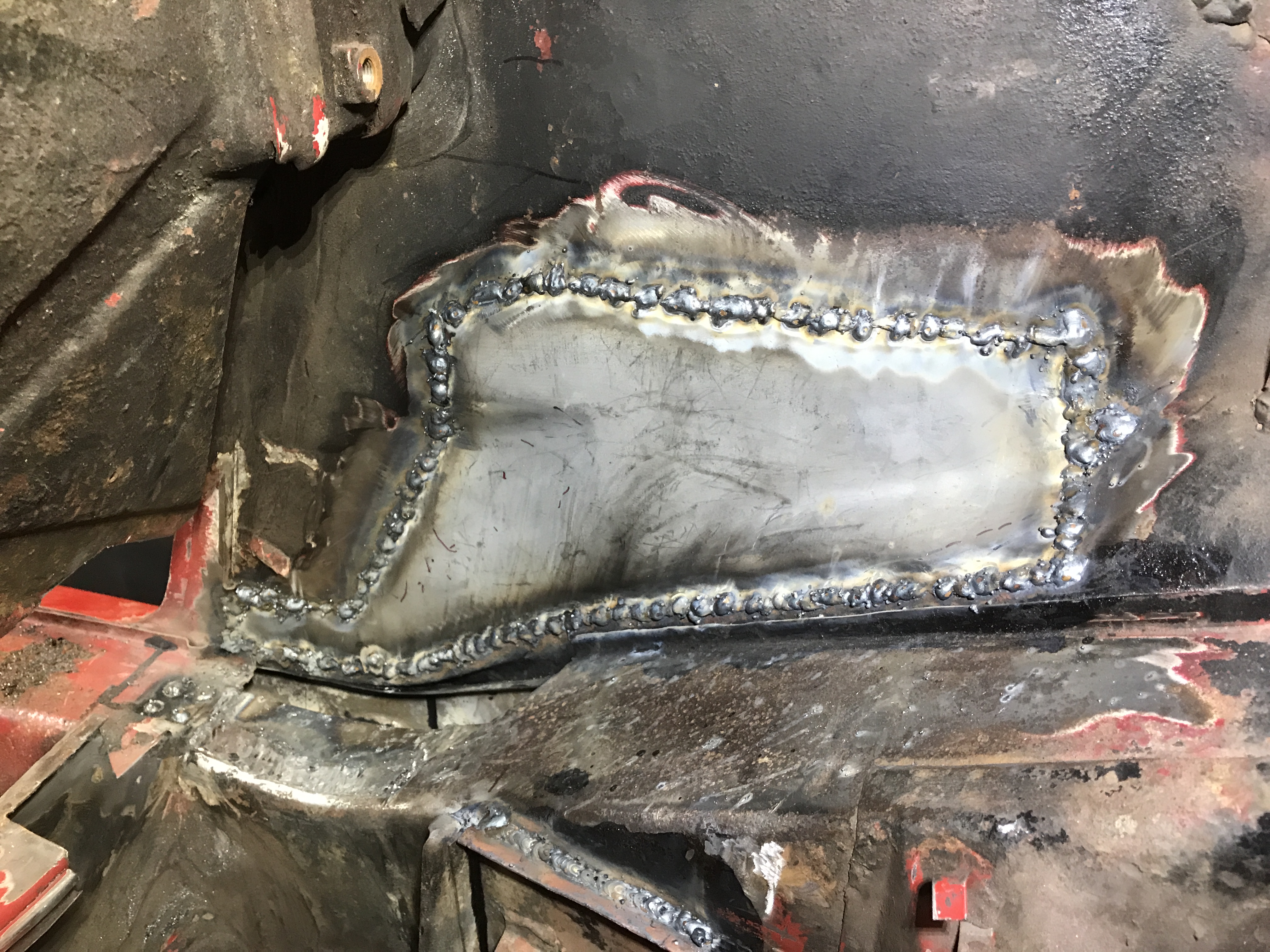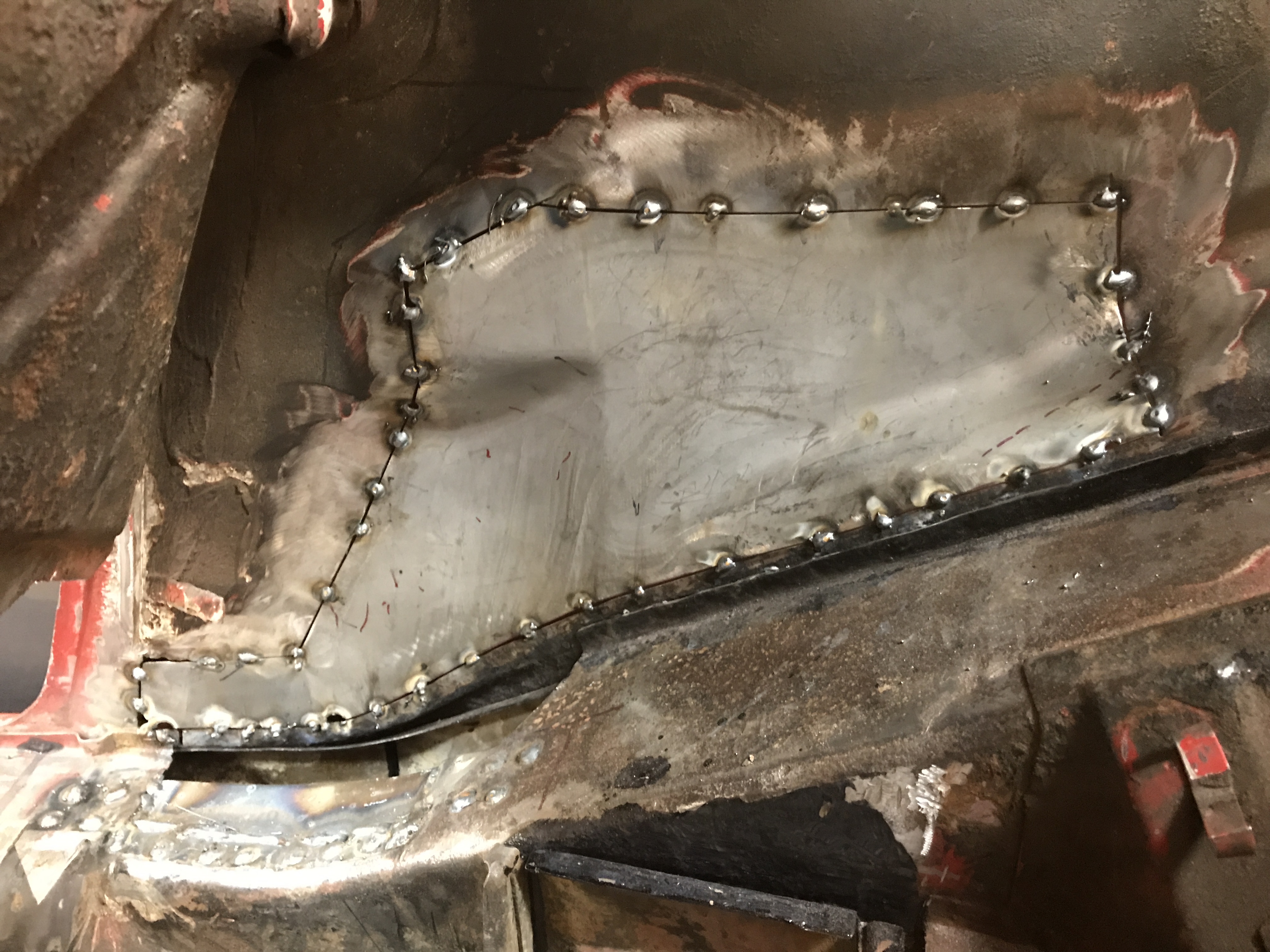 Here it is welded in place. I will need to grind this down to fit the "middle" panel patch.