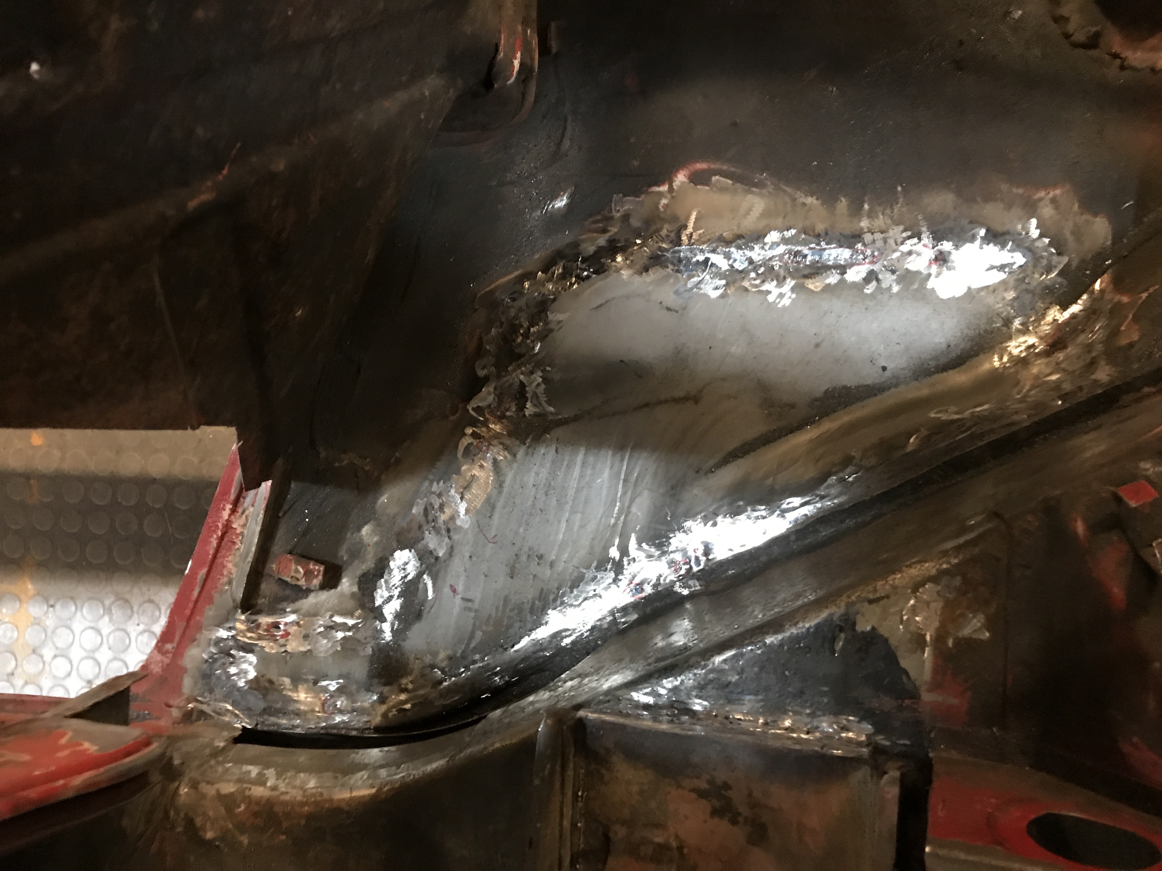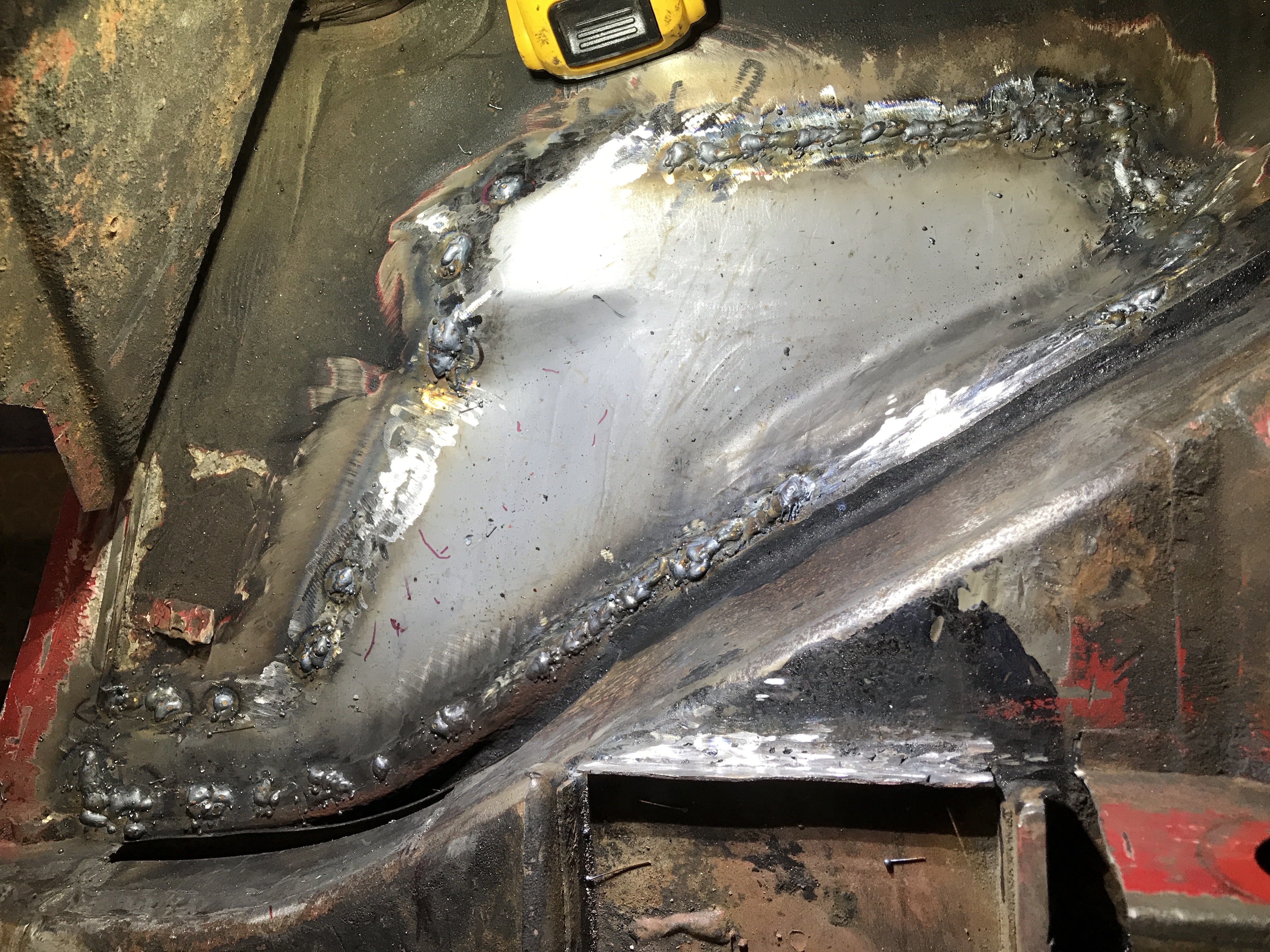 I feel like I am in a groundhog day loop with the inner fender wall patch. After grinding yesterday, I checked the weld with a light inside the fender. This revealed a Buch of pin holes and thin spots, and a few segments where the weld did not penetrate.