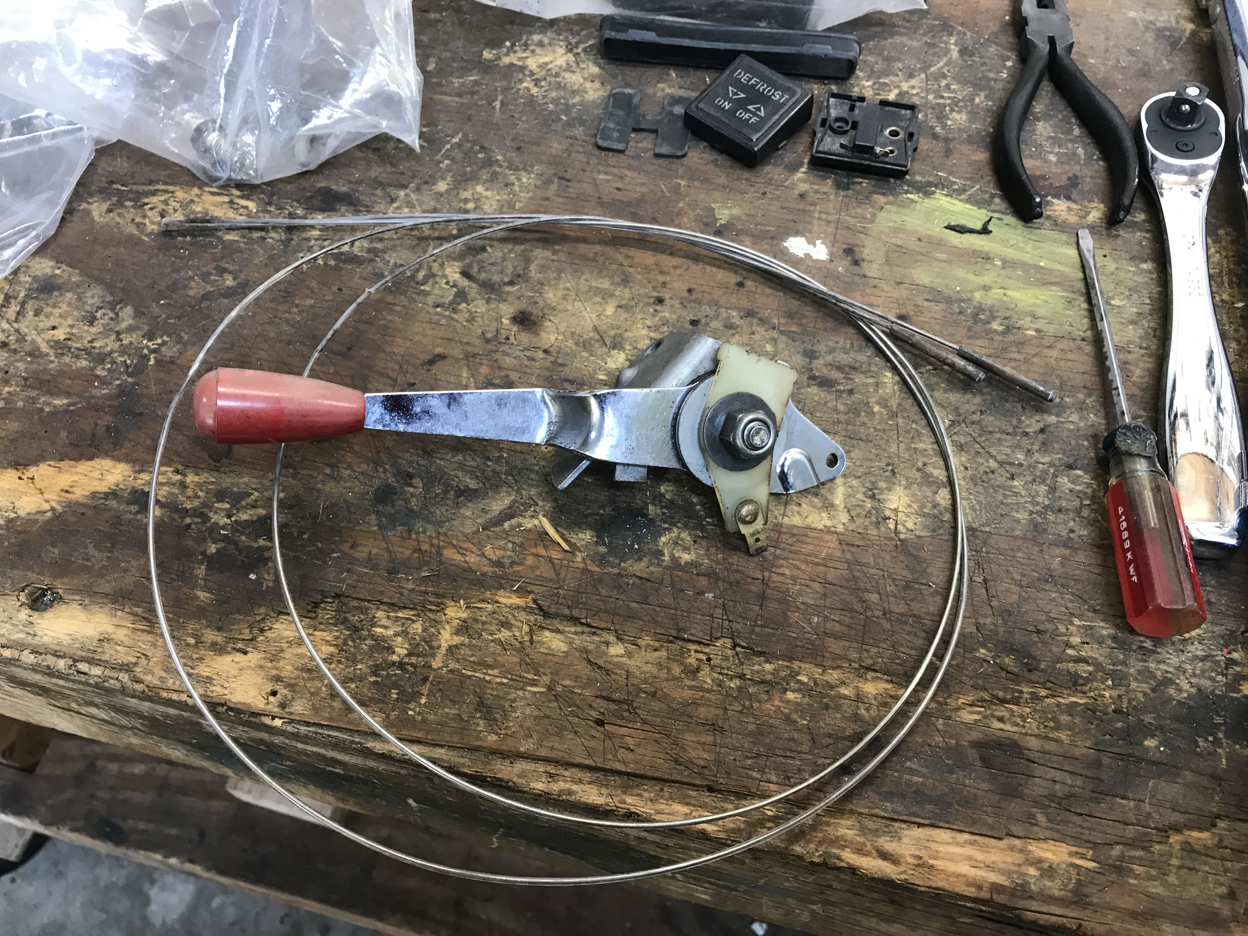 Next, I got out the heat control lever and cable. I rebuilt the lever months ago (but now the knob looks a little shabby).
