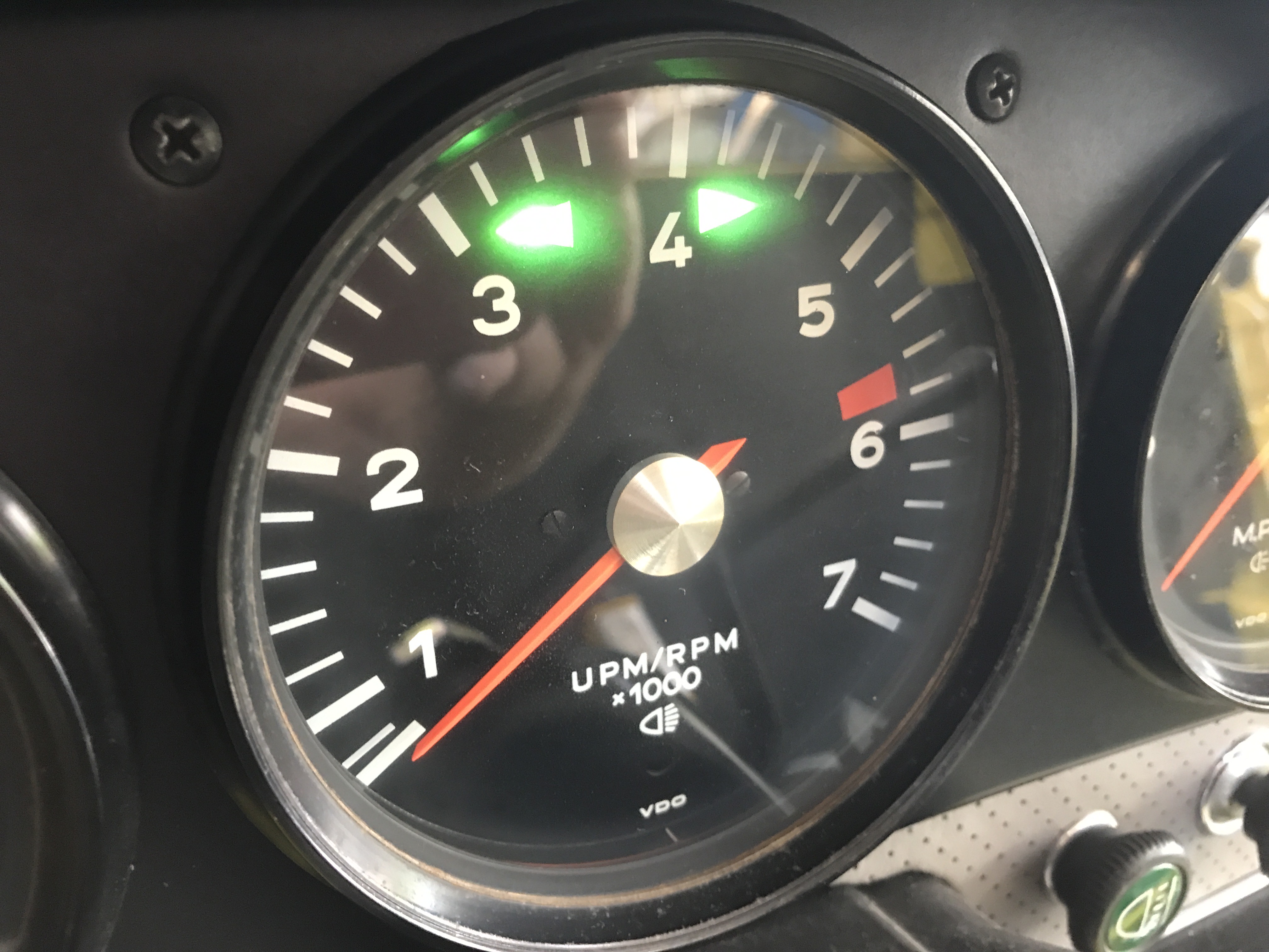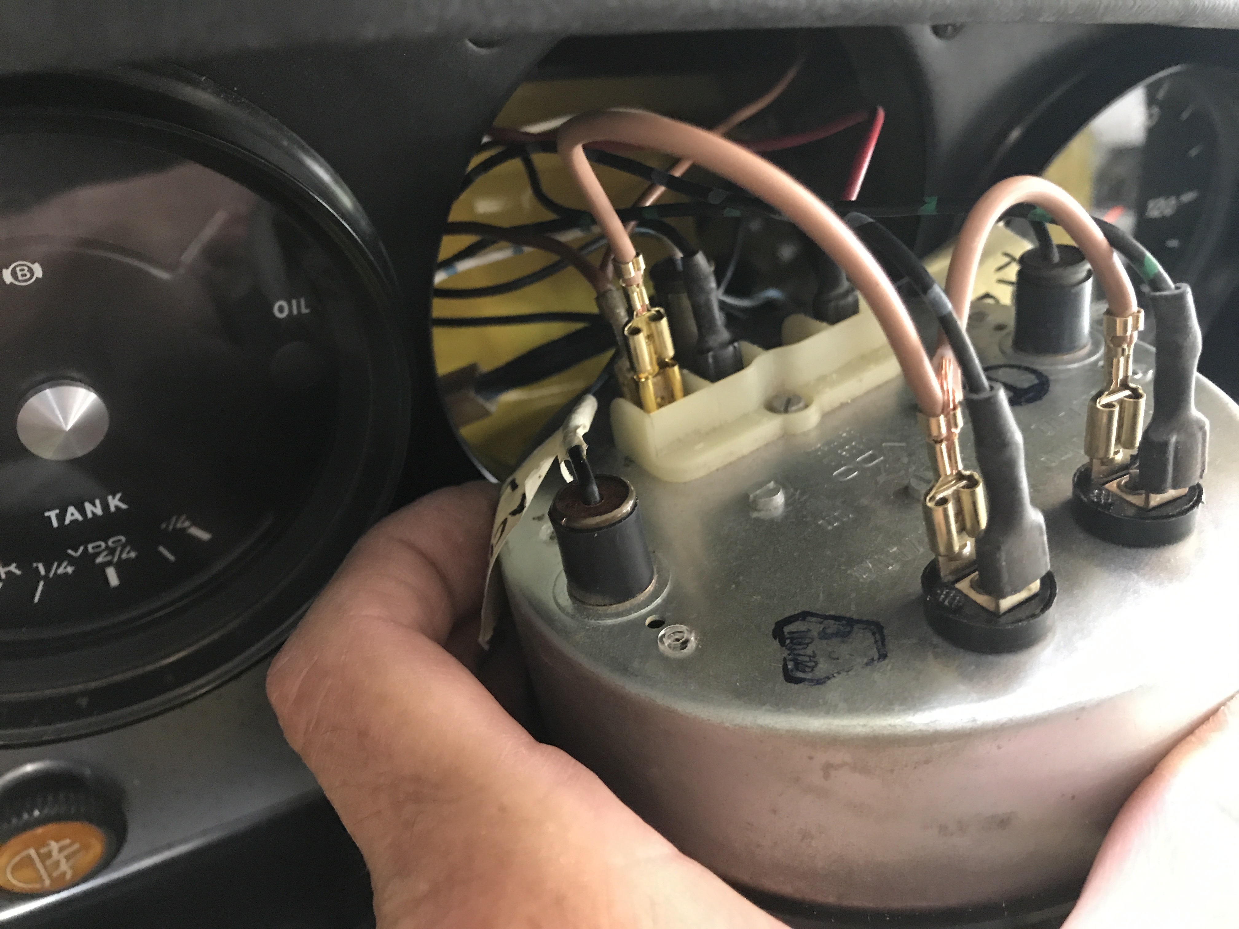 The new ground jumper installed, connecting the indicator lamps to the ground terminal on the back of the tach.