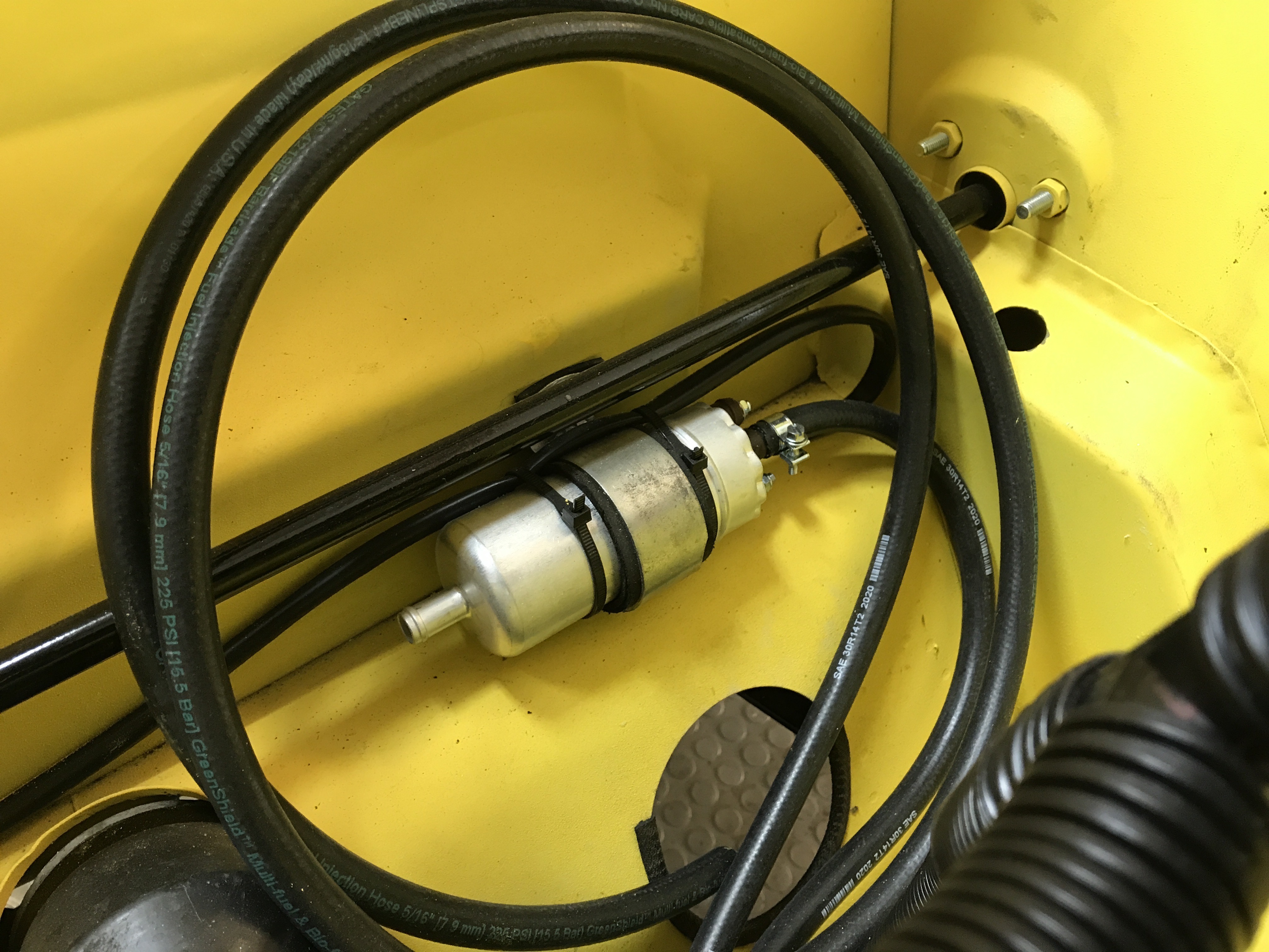 Fuel pump runs (with the correct connection tab on the relay board grounded).