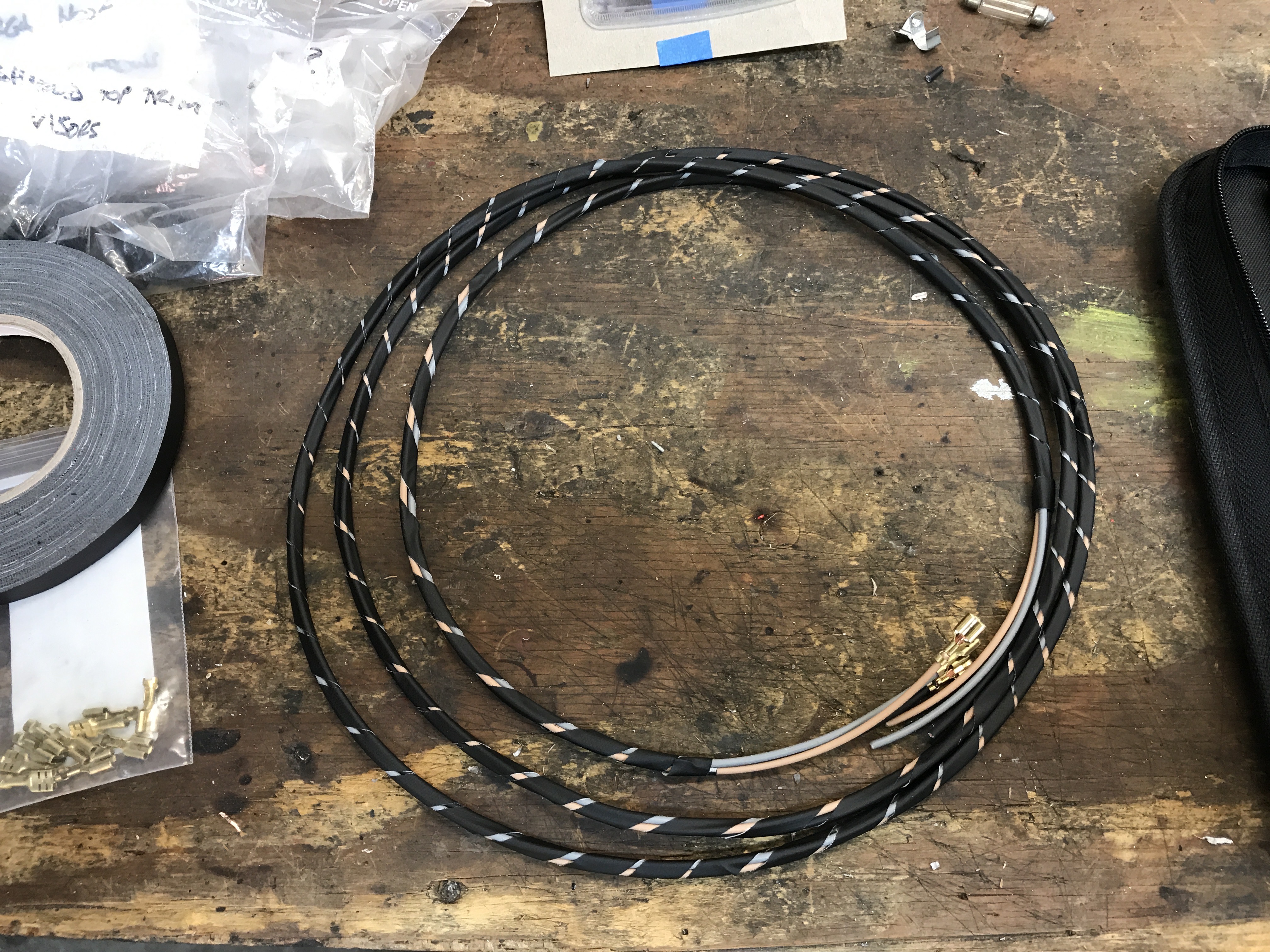 Here's the new bit of harness to extend the interior light leads. I already re-routed the existing wires from up between the seats to forward along the center tunnel.