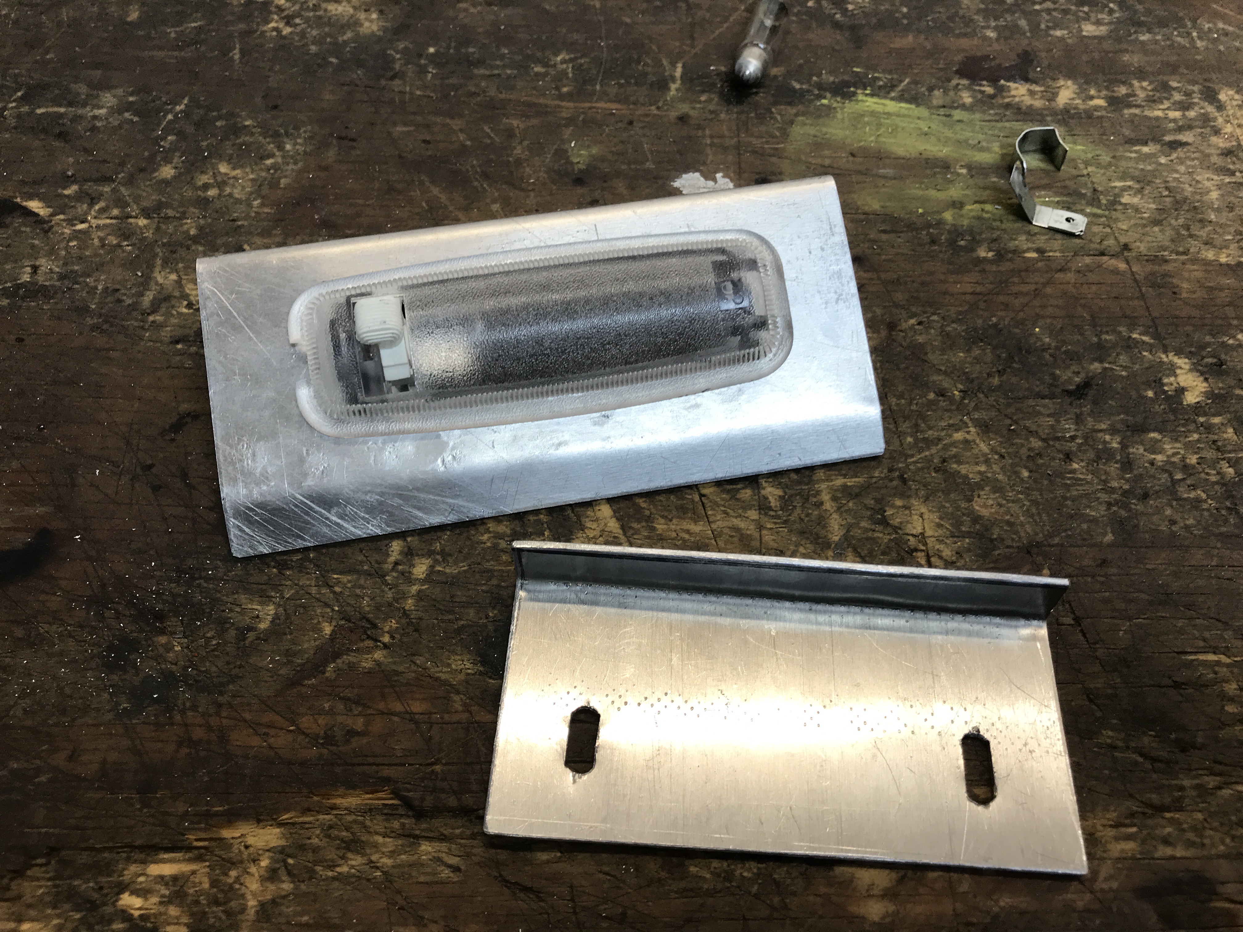 And then back to my new interior light holder. Here is the internal bracket piece, screwed into the underside of the slide.
