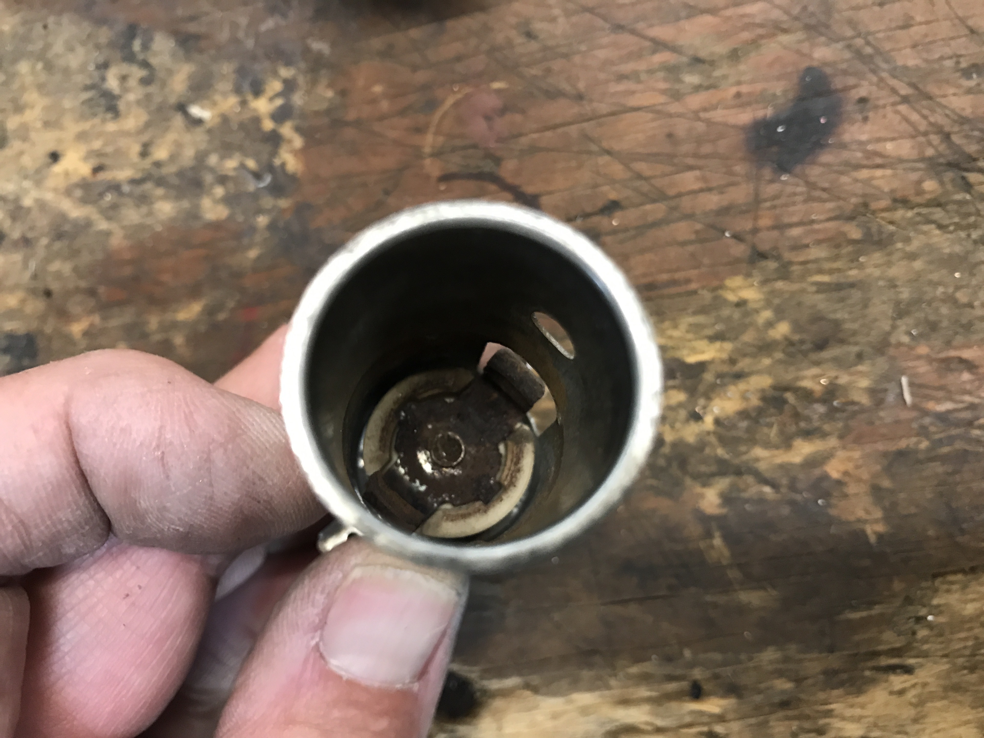 With all the rust and crud gone, I re-installed the lighter socket and tested the power--success!