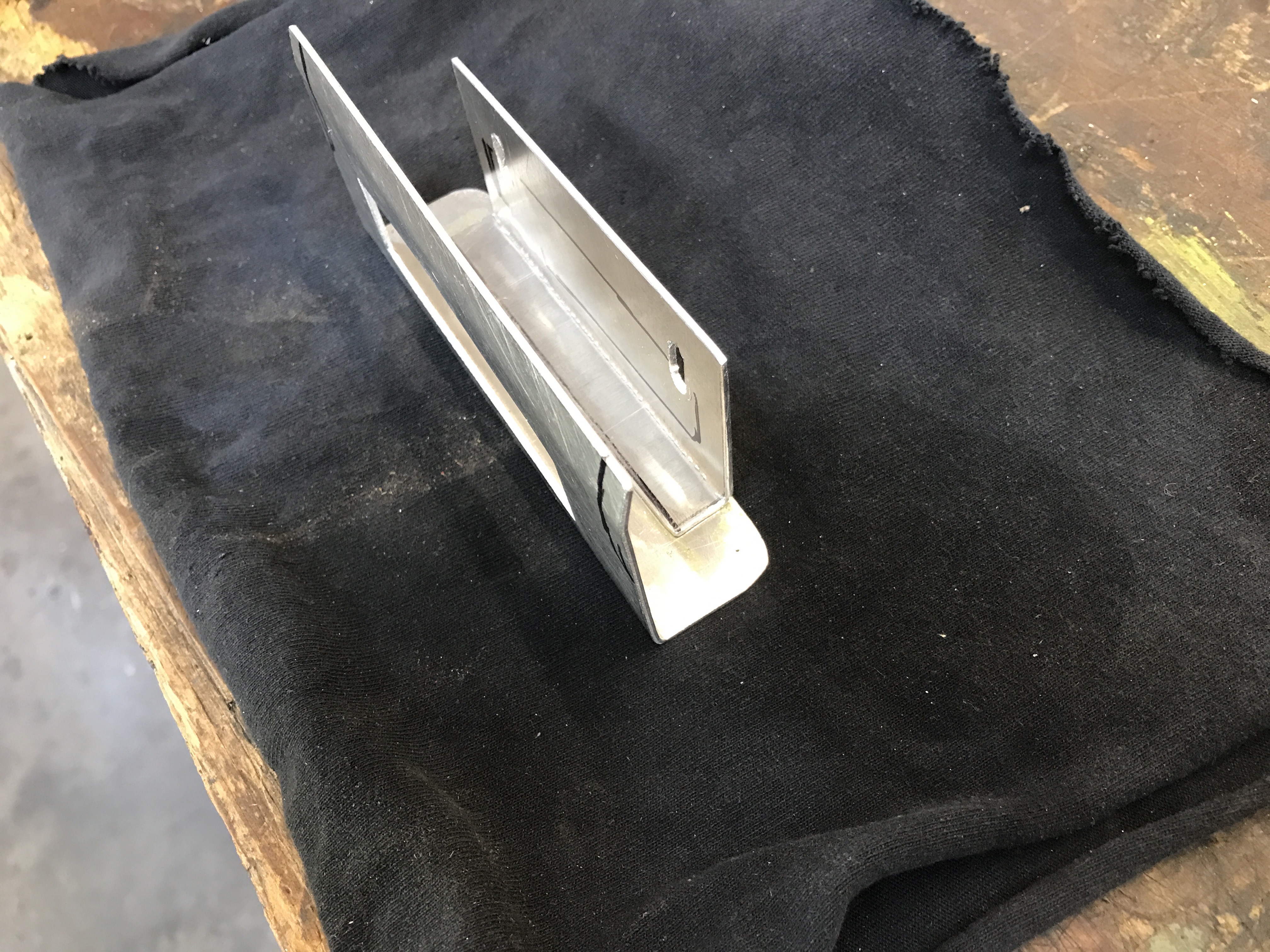 Here's the new interior light ash-tray fitting in aluminum. The second piece will attach the lamp holder to the underside of the original ash tray slide.