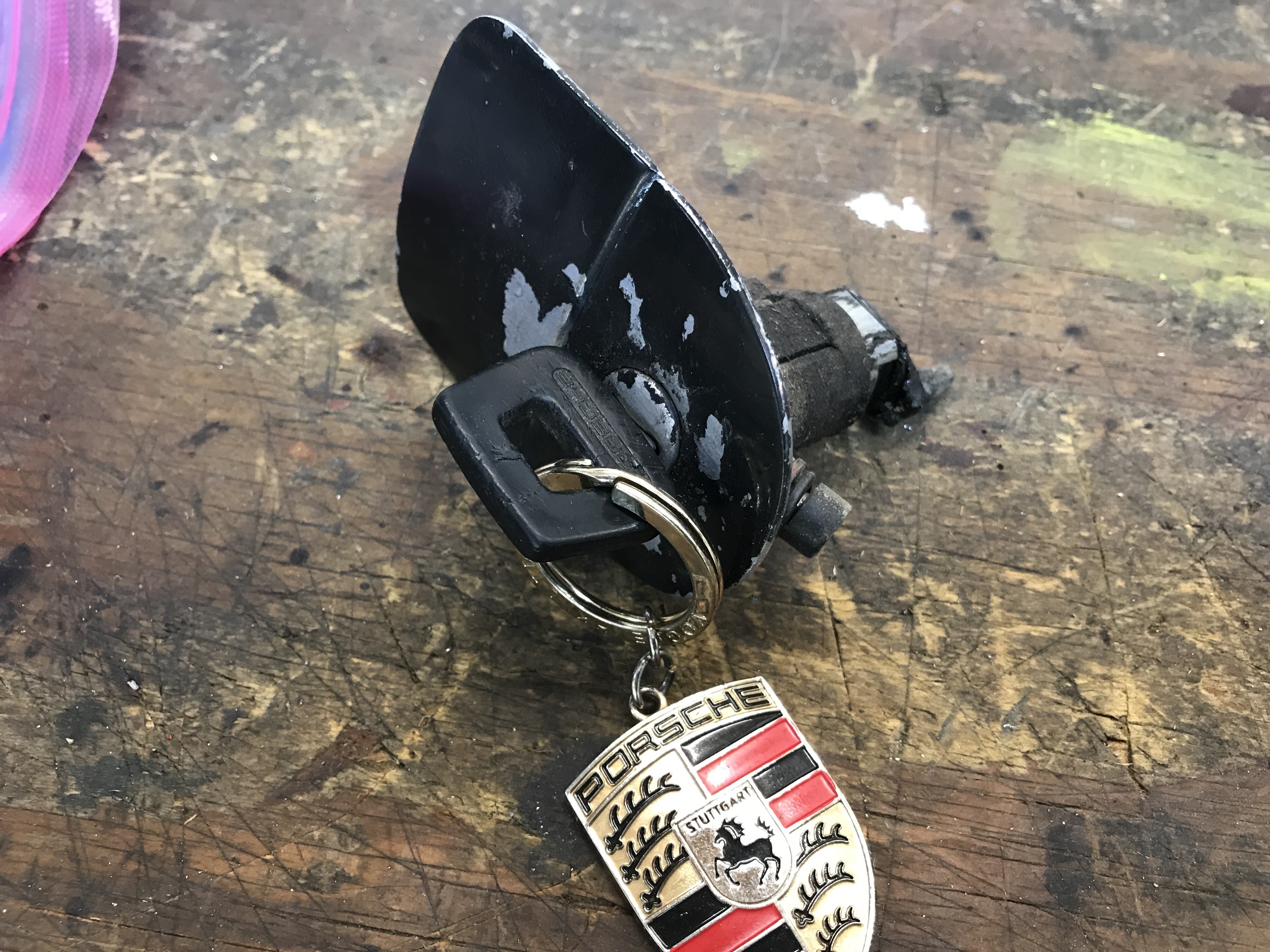 Moving along my shelf of parts, I checked the key in the door latches I removed way back in the beginning. I have 2 keys. The more warn key opens one door lock, but only the less warn key opens the other. Both keys work in the ignition.