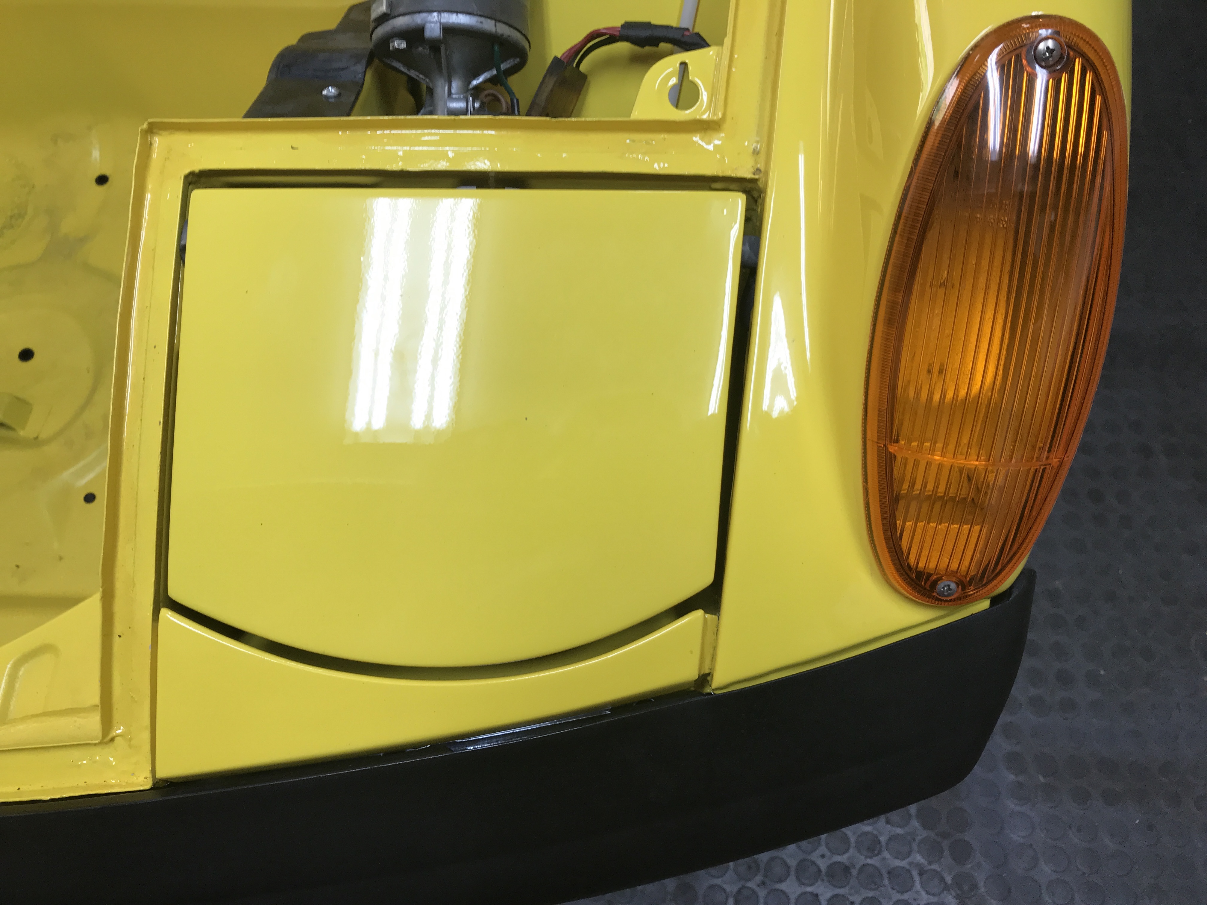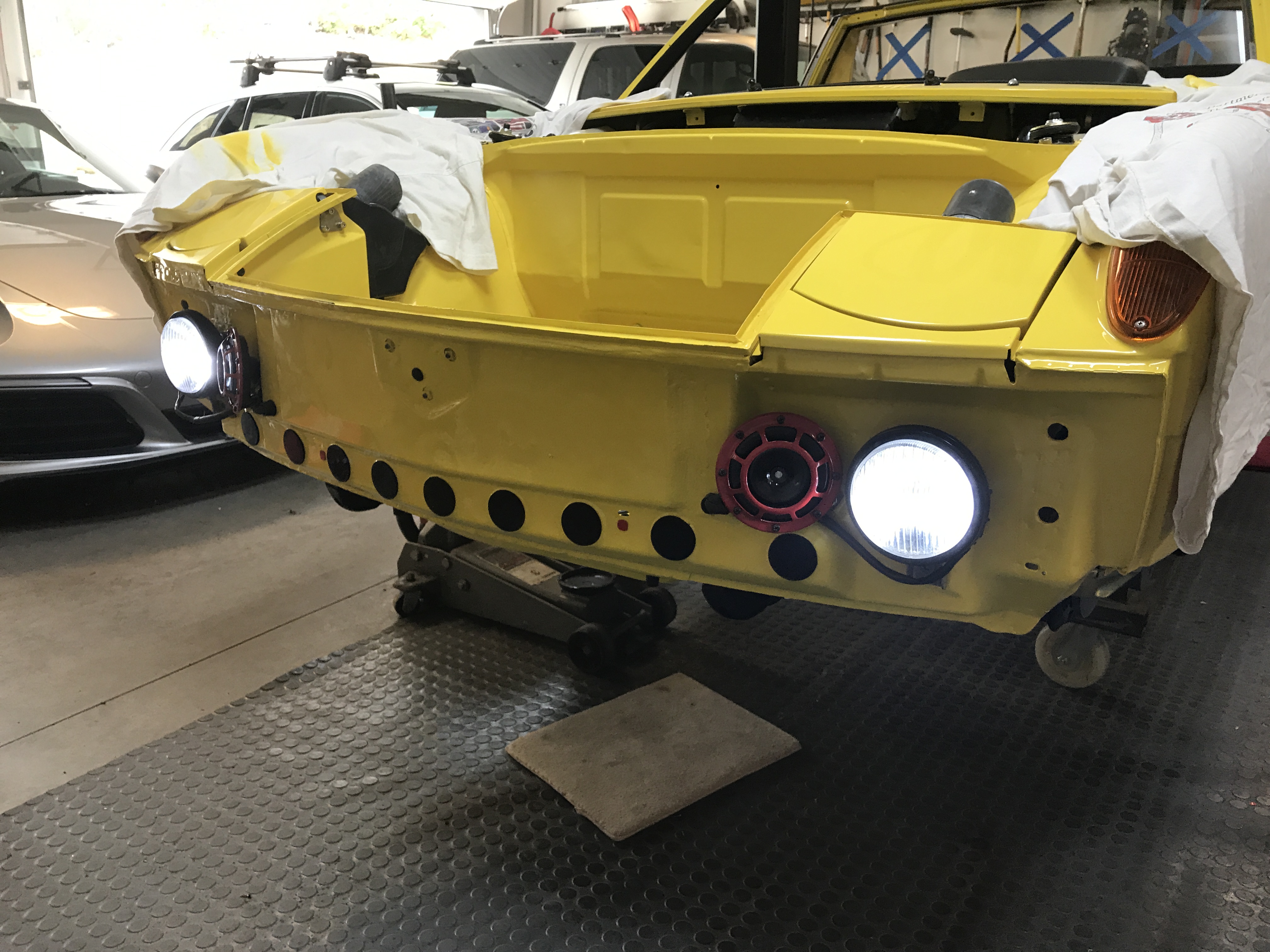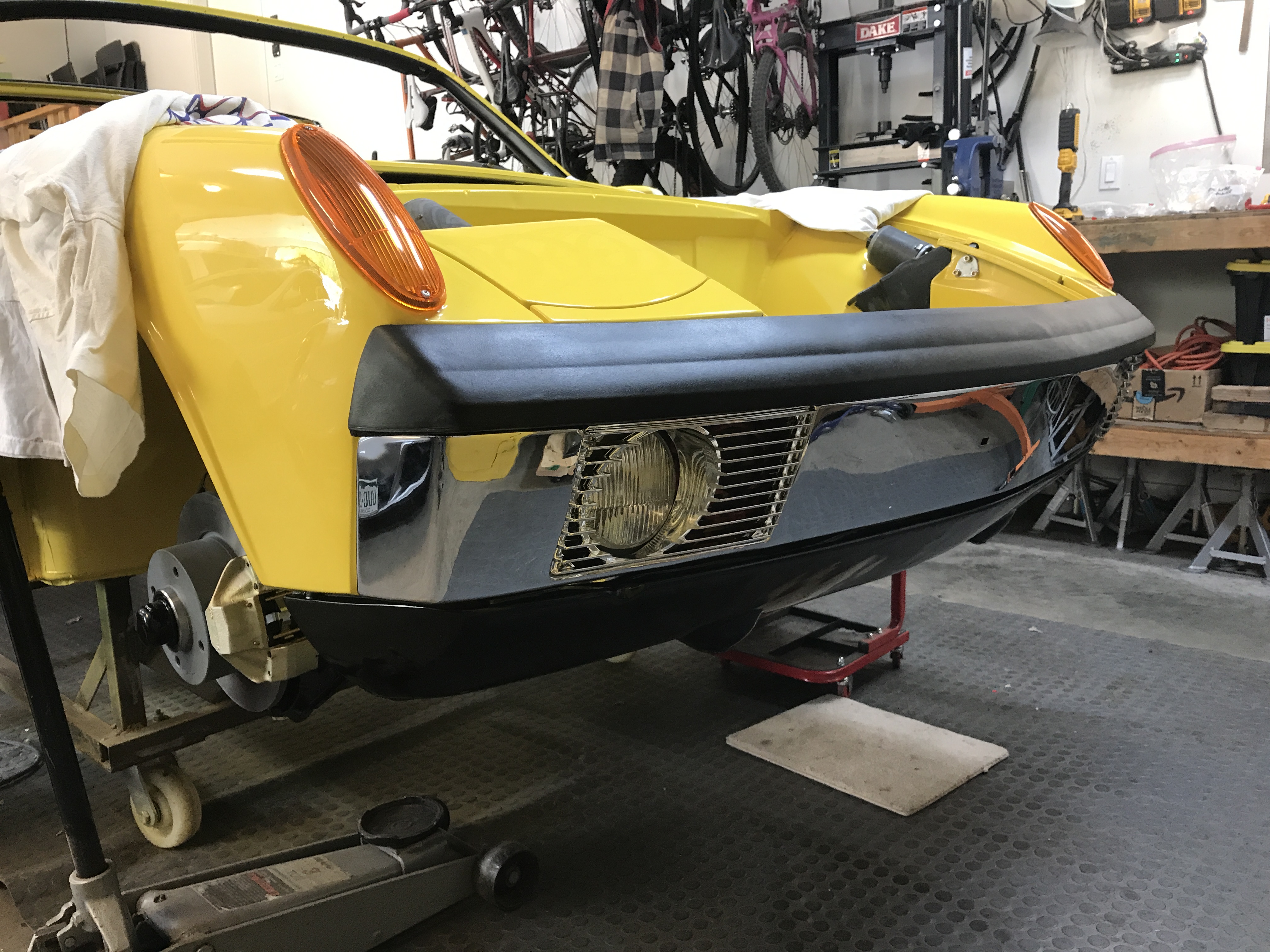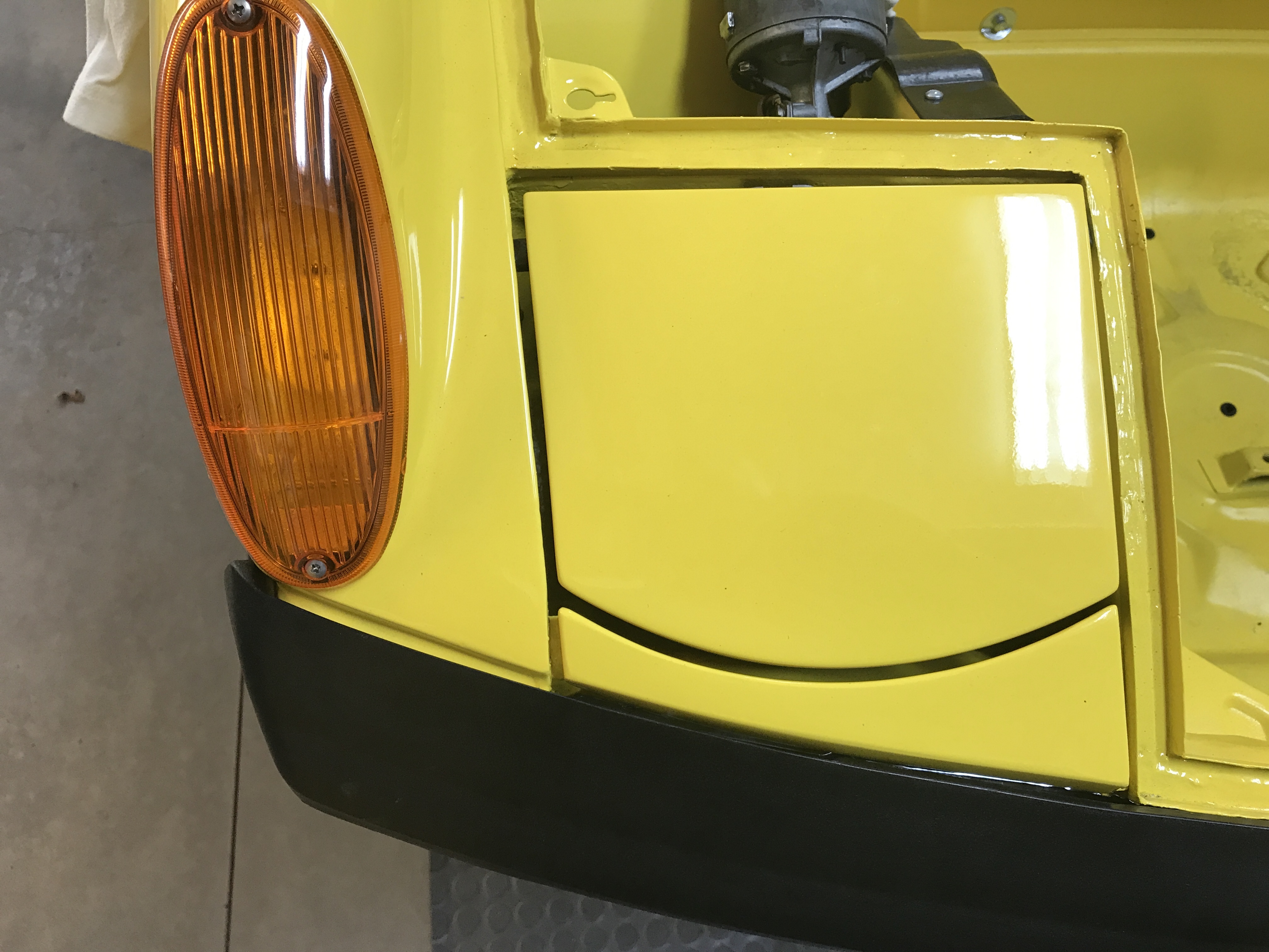 To check the fog light positions, I mounted the grills in the bumper. New repro grills from 914 Rubber.