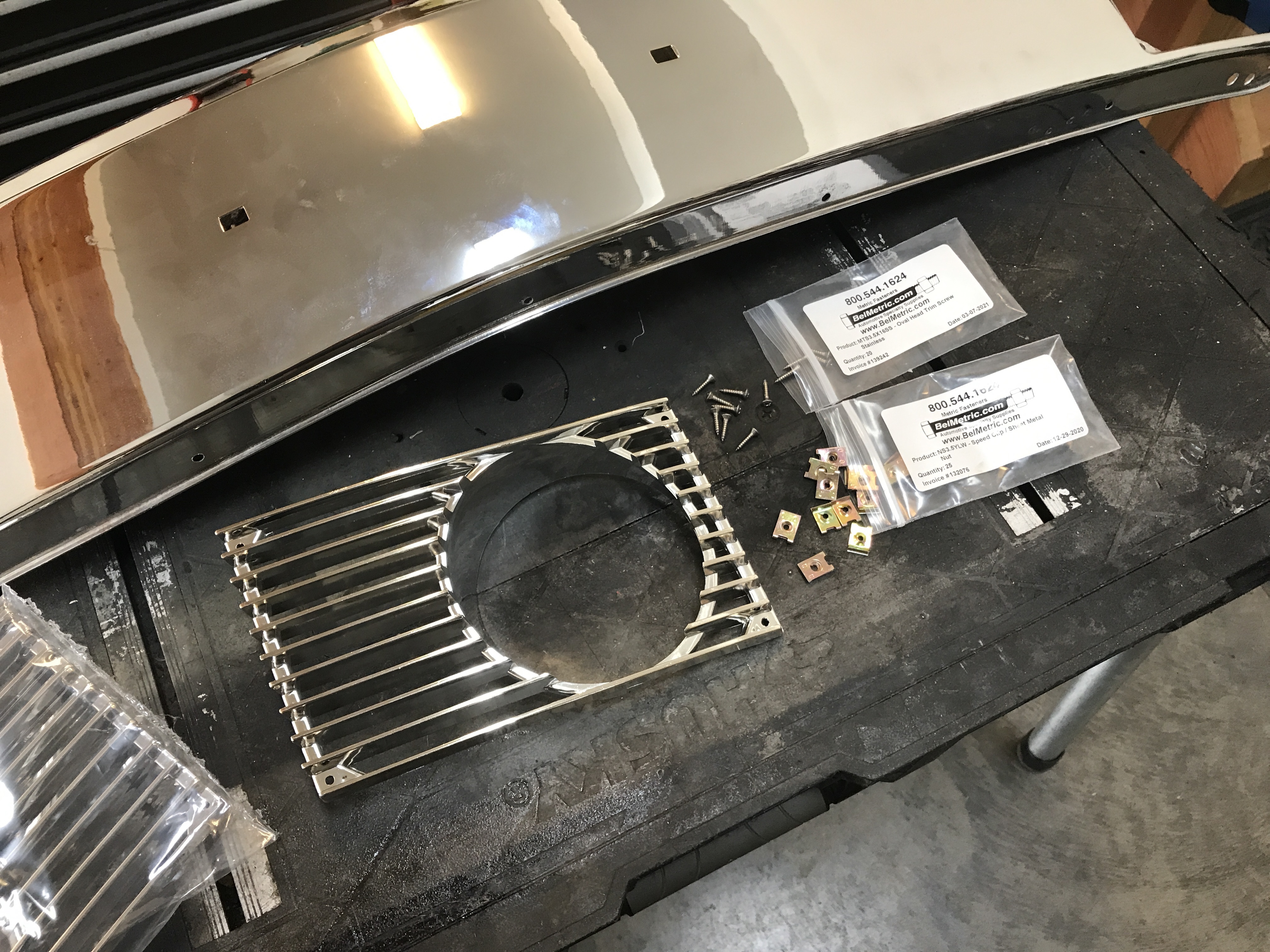 With the lights done, I can get going on completing the front. I got out my lower valence, a bit lumpy but its powder-coated and should resist chips.