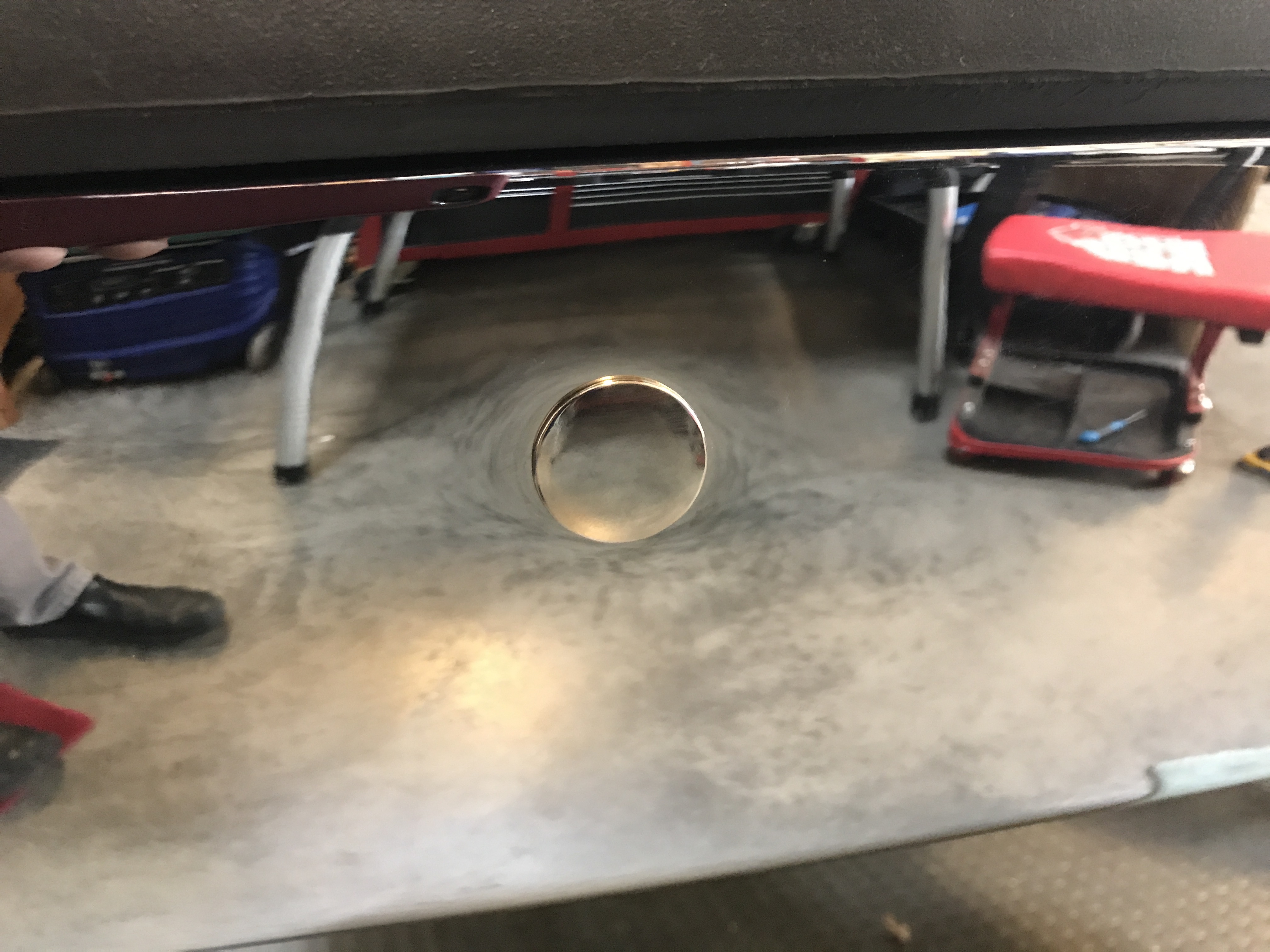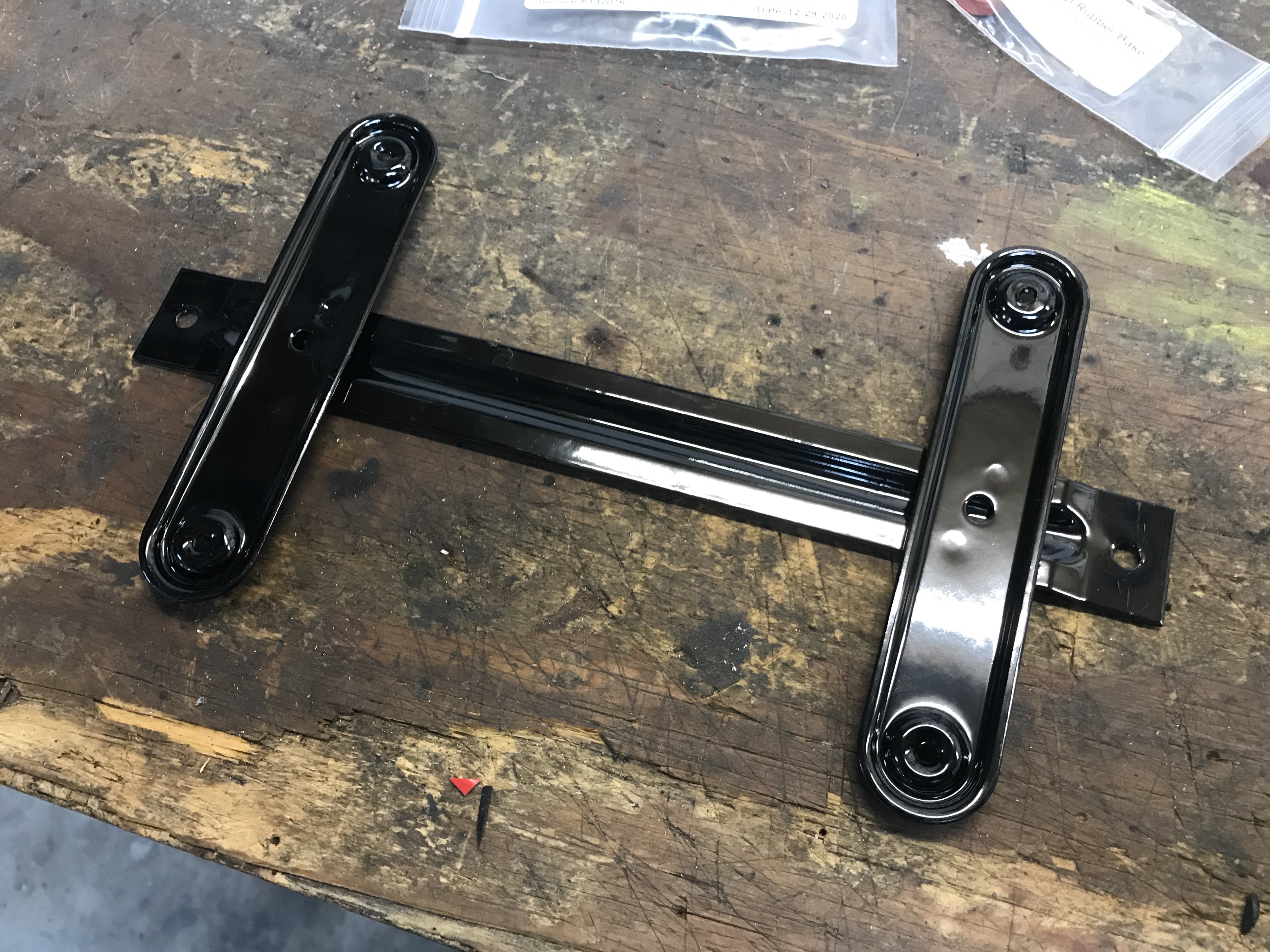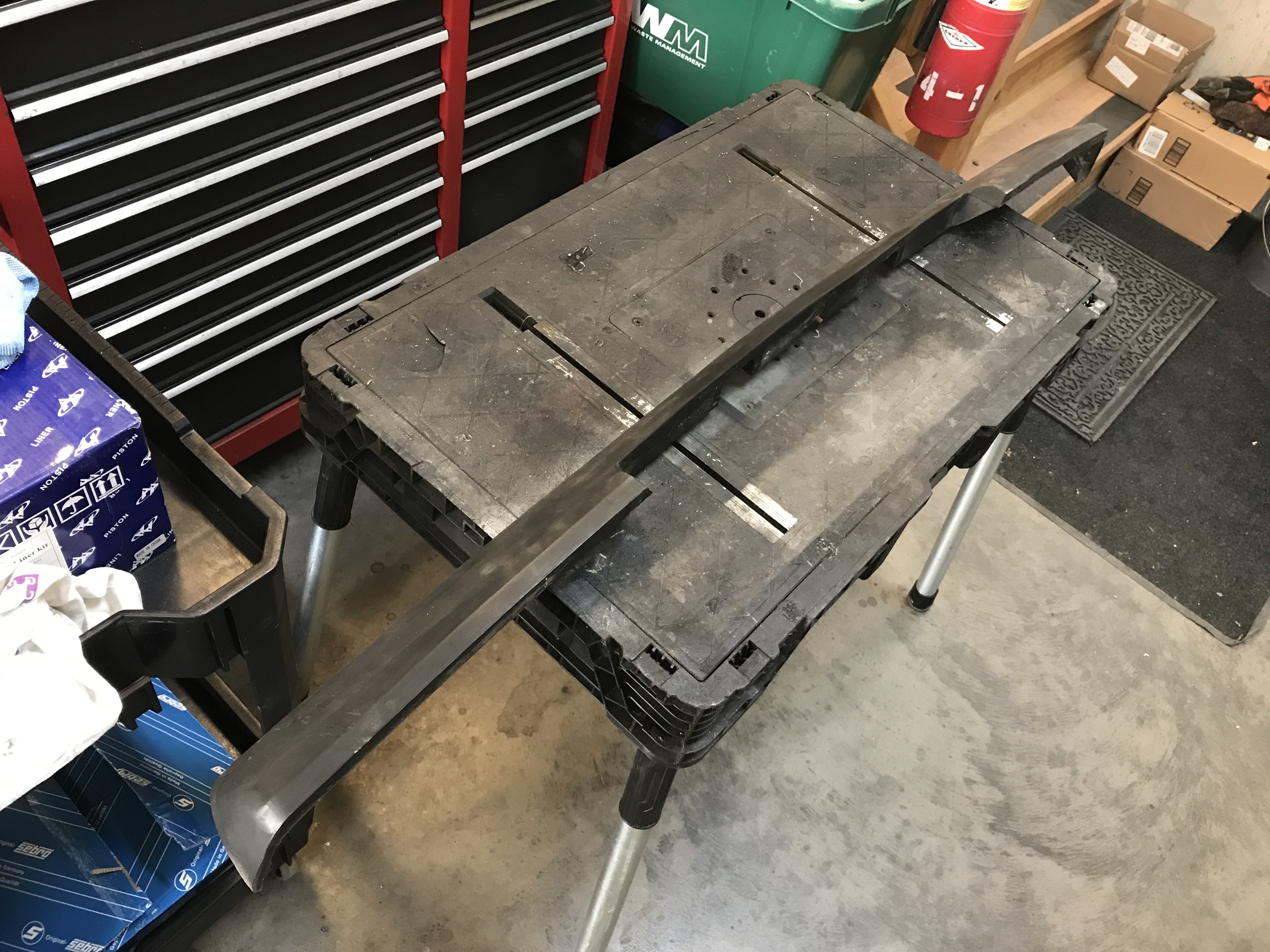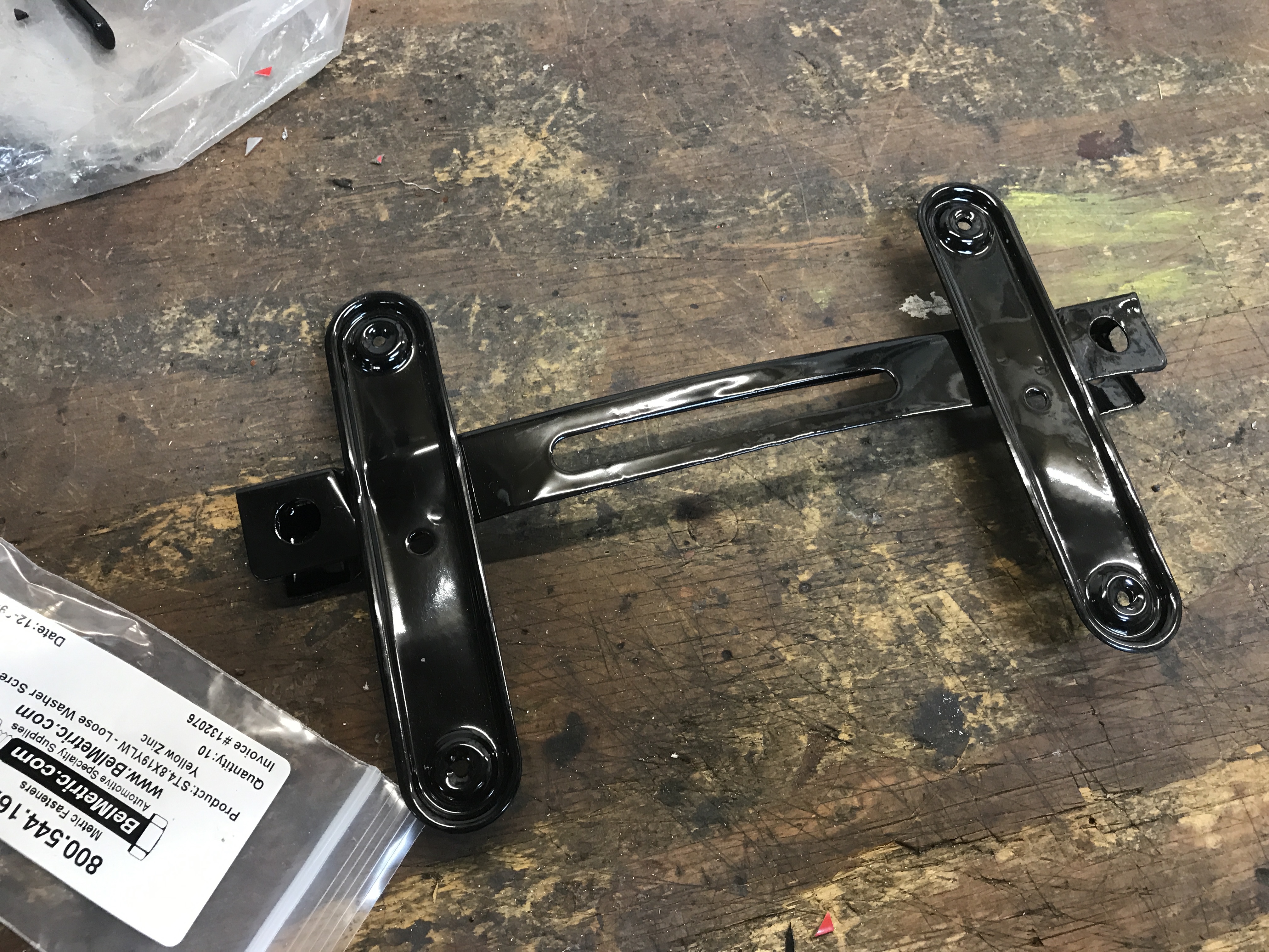 After I cleaned and treated the top, bolted it to the bumper with new spacer washers, I installed the bumper on the car. Now to deal with the license plate bracket and lights.