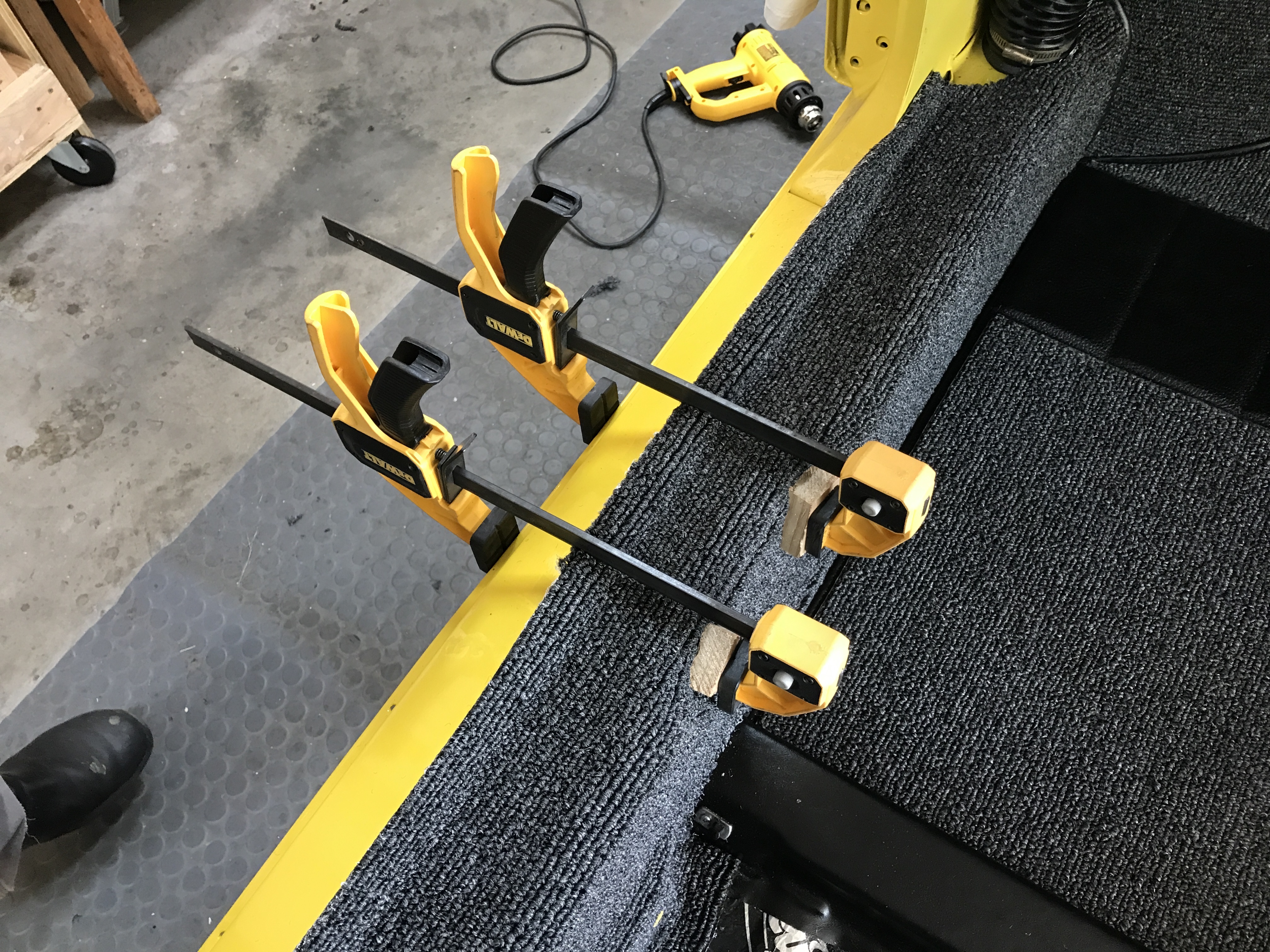 Great work! And great attention to detail, even the clamps to hold the carpet in place are yellow like your car. (IMG:style_emoticons/default/biggrin.gif) Plus the heat gun on the floor. I used that a VERY little bit on the carpet before clamping. |