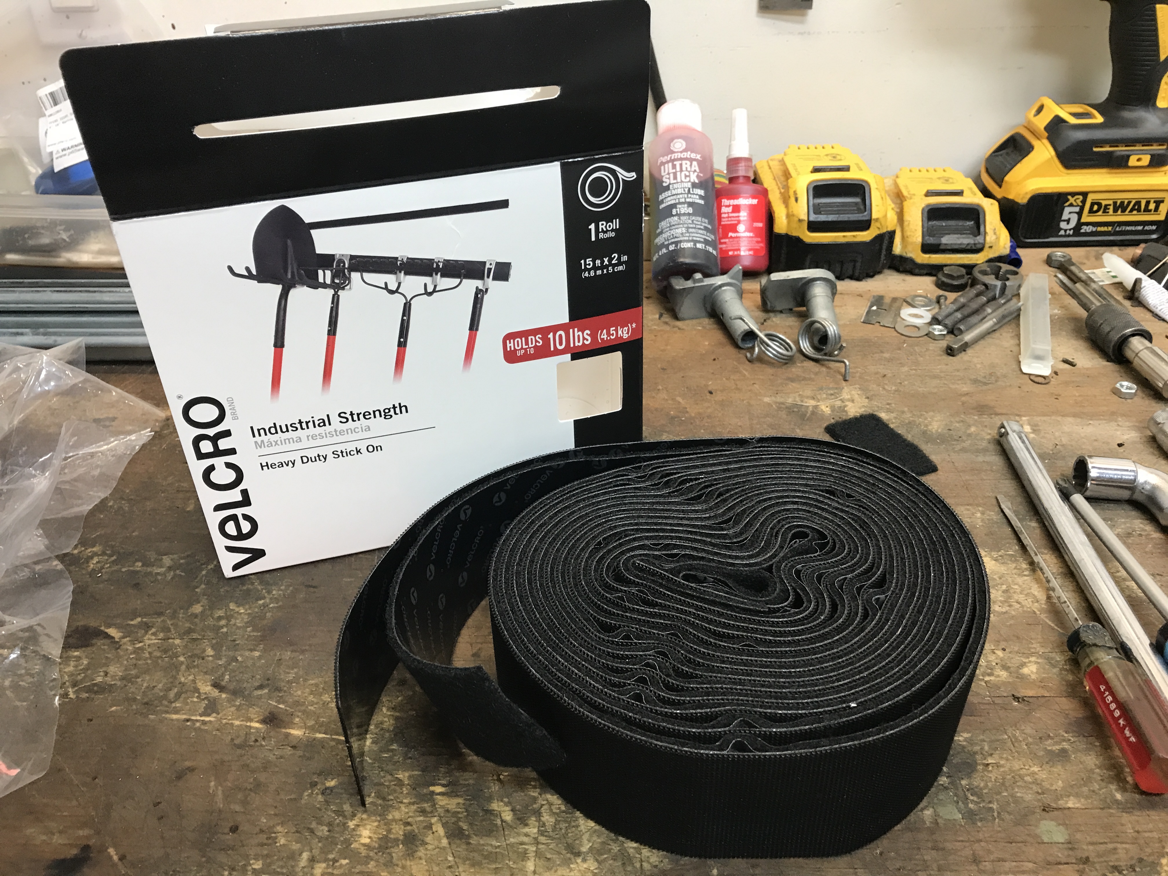To hold the main carpet piece in place, I got this industrial strength Velcro. I left out the floor studs since I did not want big grommets in the carpet. But I still want to remove the main pieces easily.