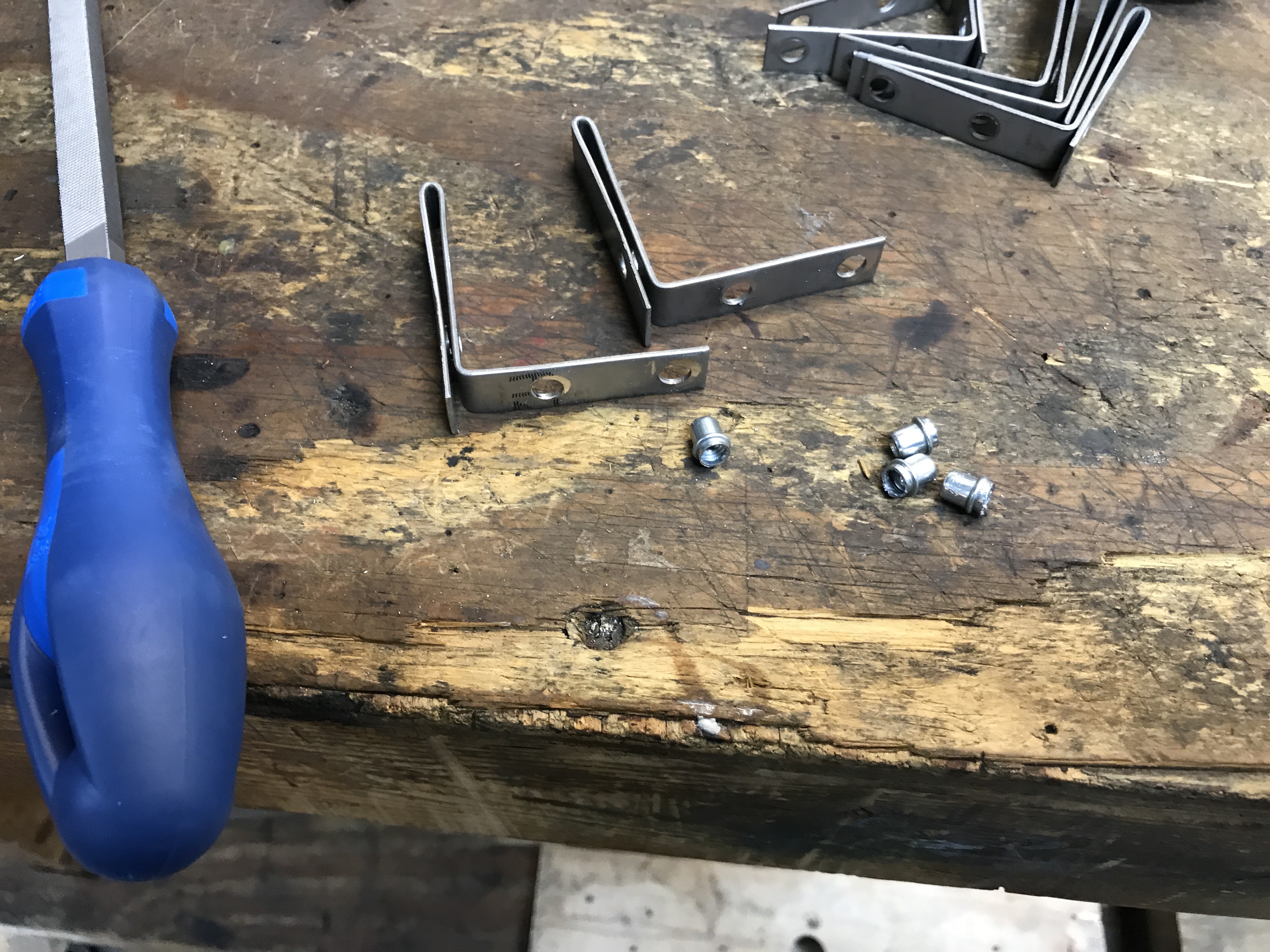Most are designed for pop-rivets (included in the kit). I decided to use screws to attach the liners to the clips, the raynekat method. Two of the clips have riv-nuts attached, but my OCD wants them all the same, so I used a file to undo the rib-nuts. BTW, I treated myself to new files for the first time in at least 30 years--wow!