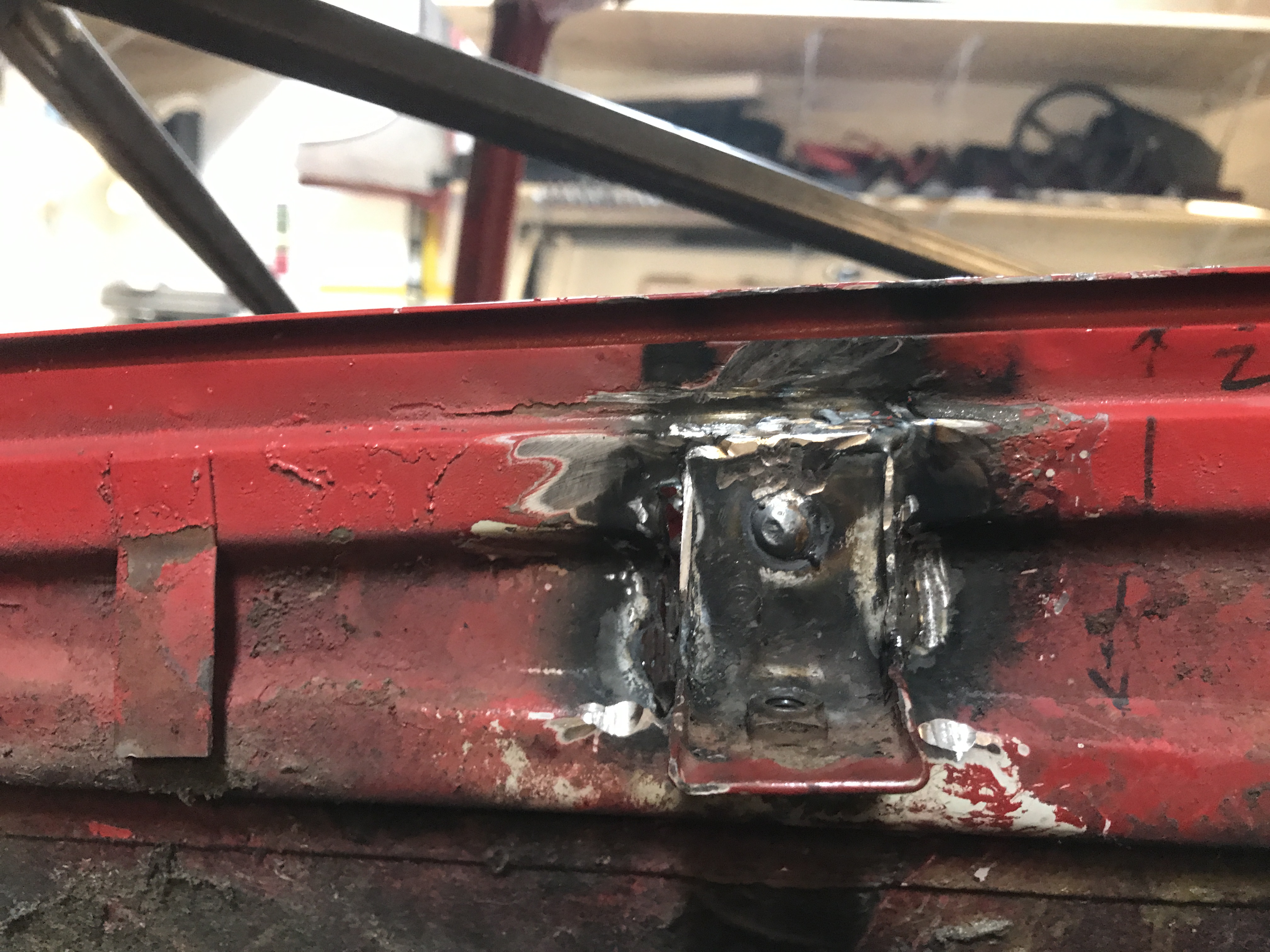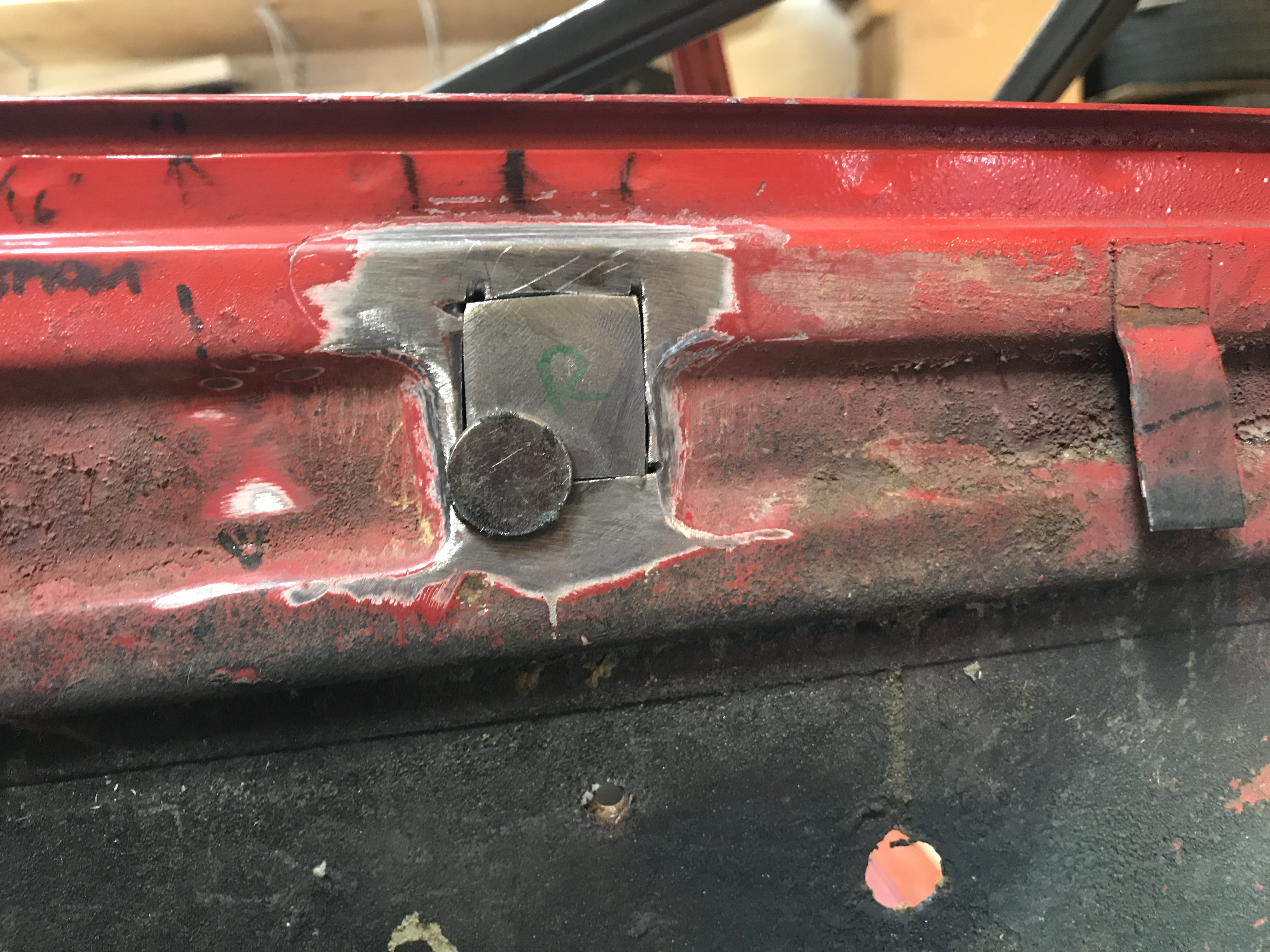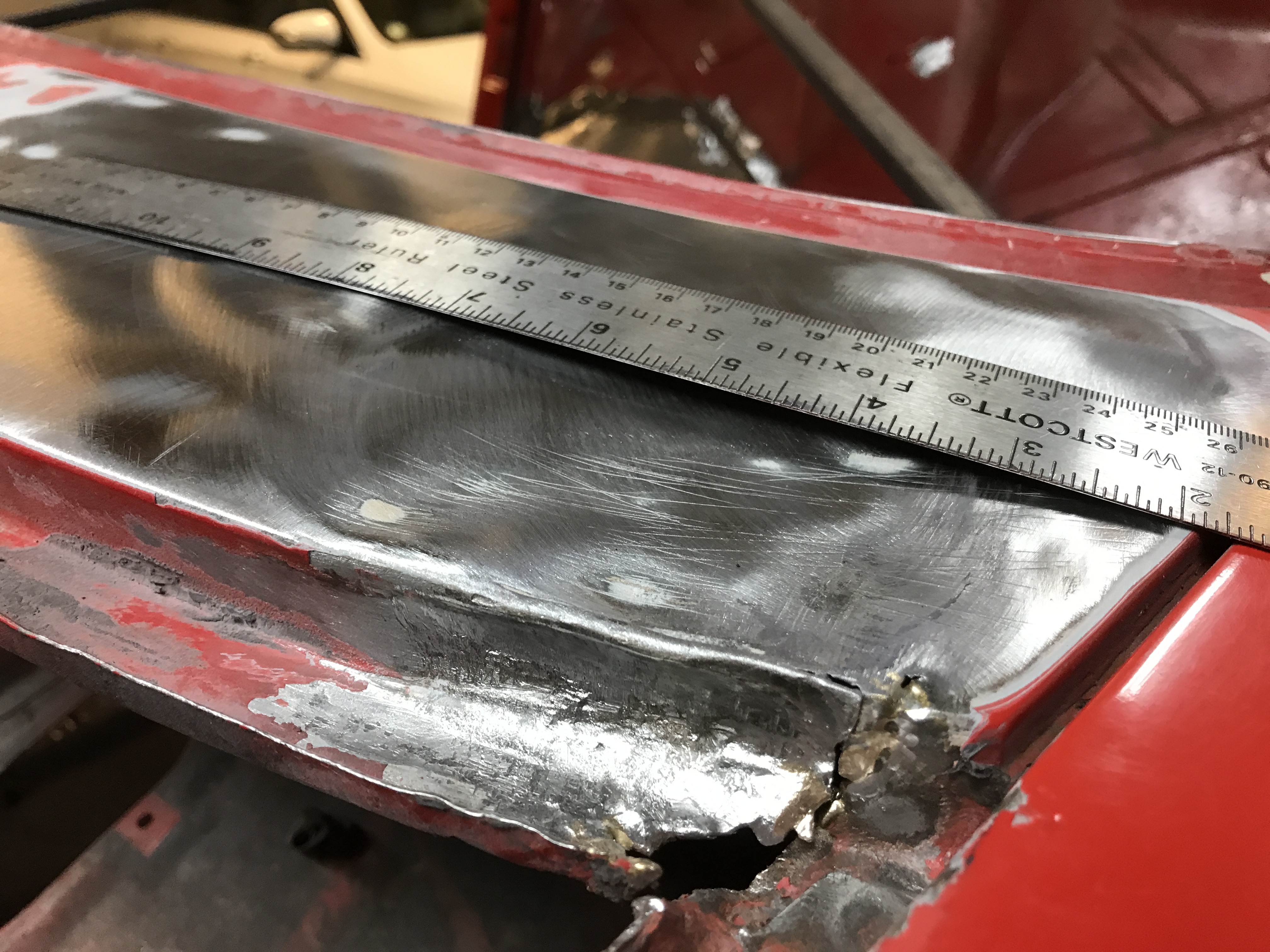 But the left side had a surprise! First, some bondo in the channel, hiding distortion of the channel side.