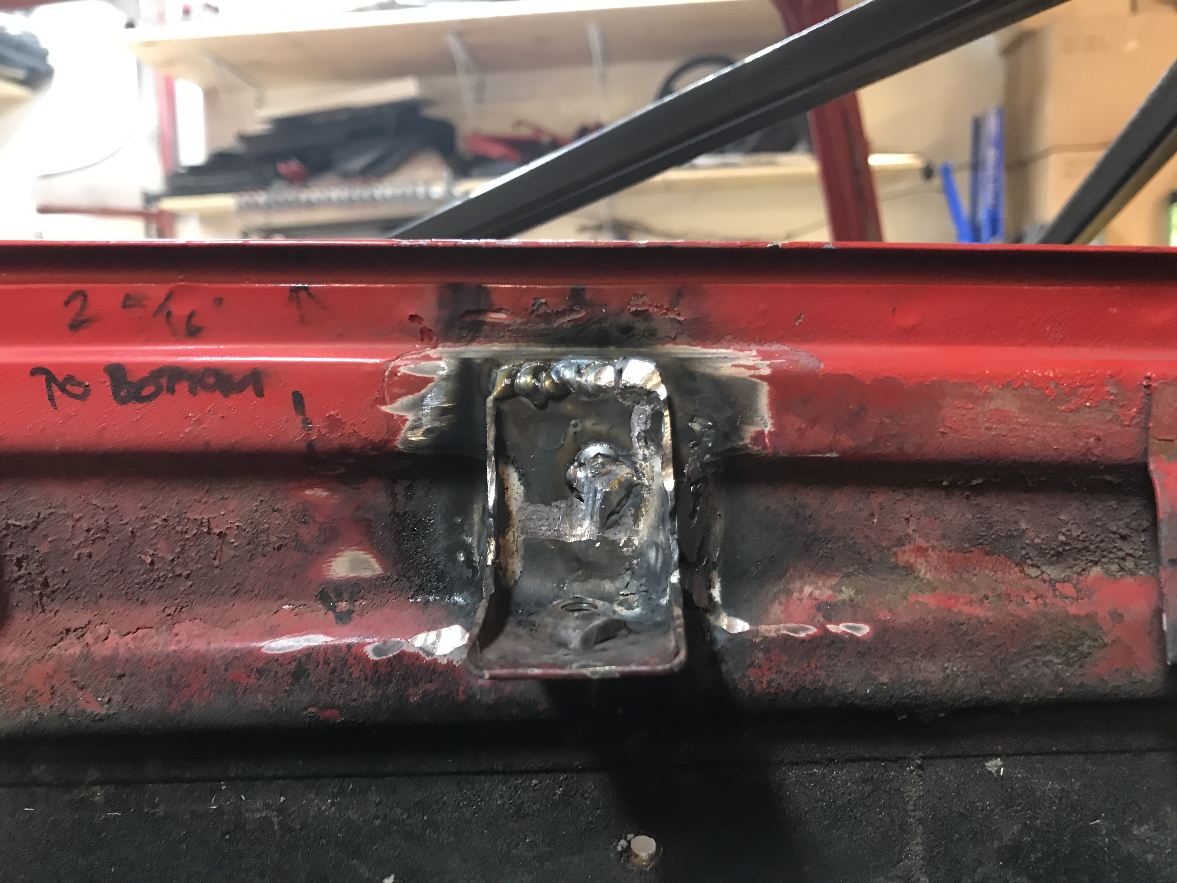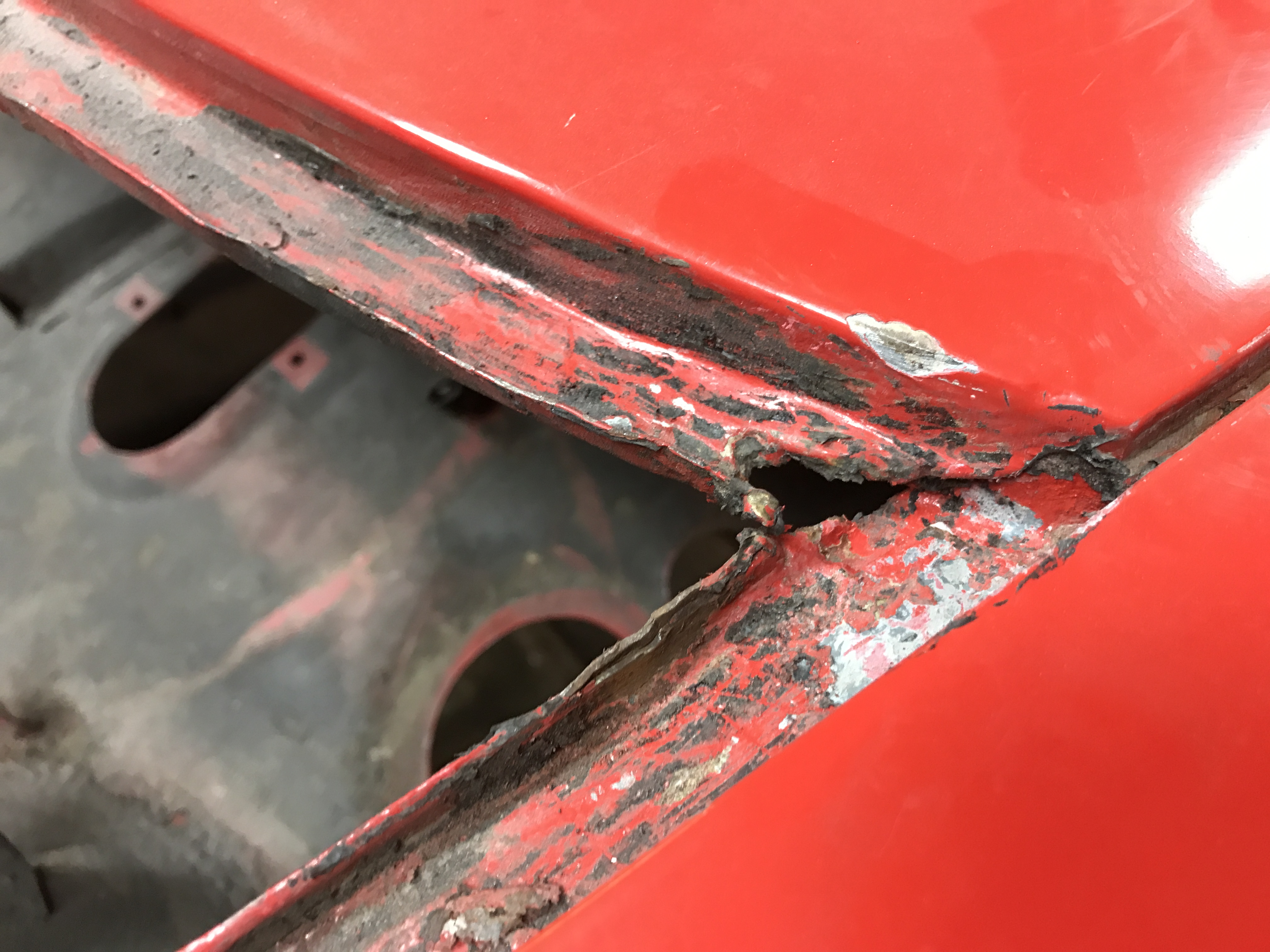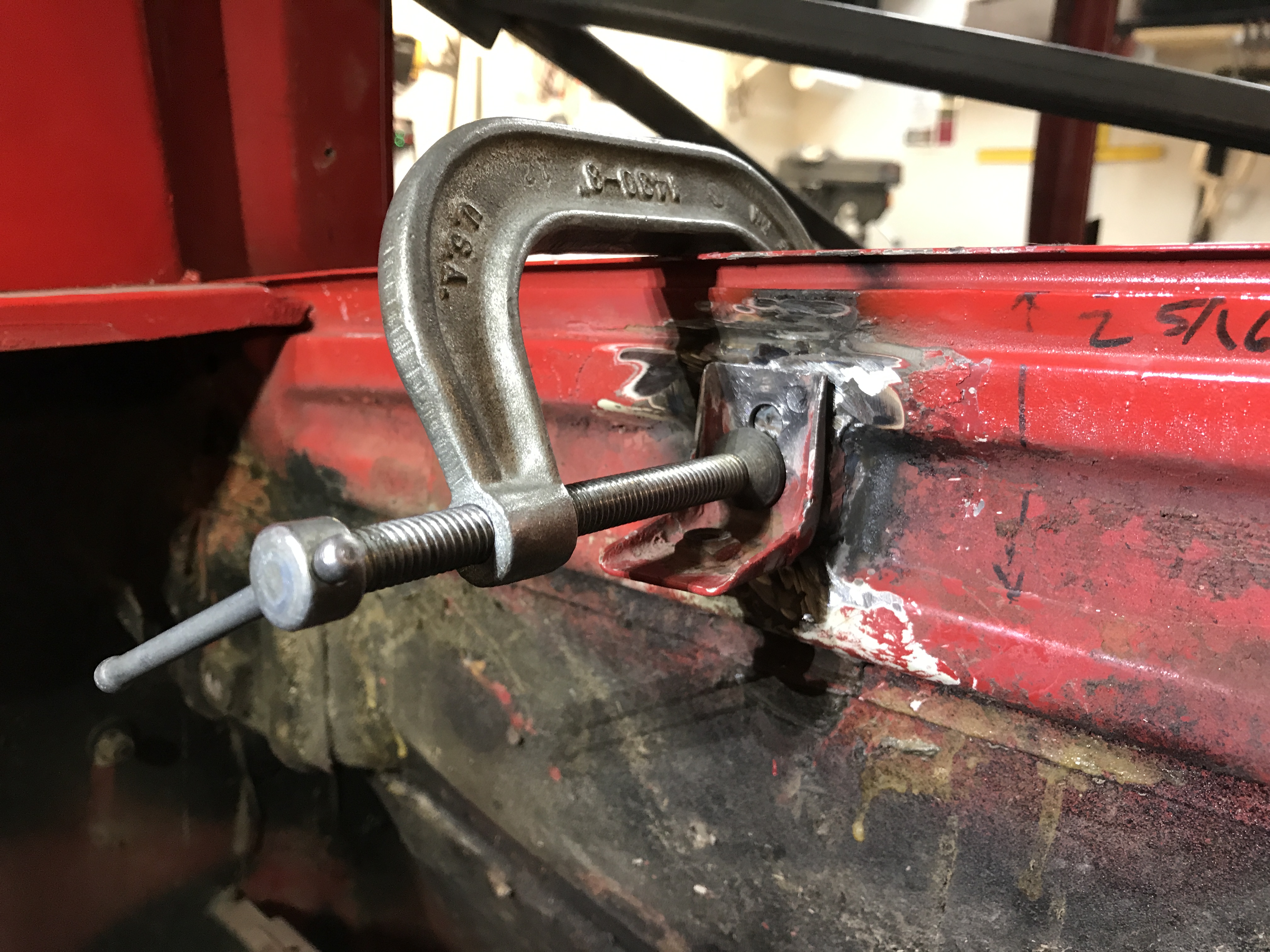 But the left side had a surprise! First, some bondo in the channel, hiding distortion of the channel side.