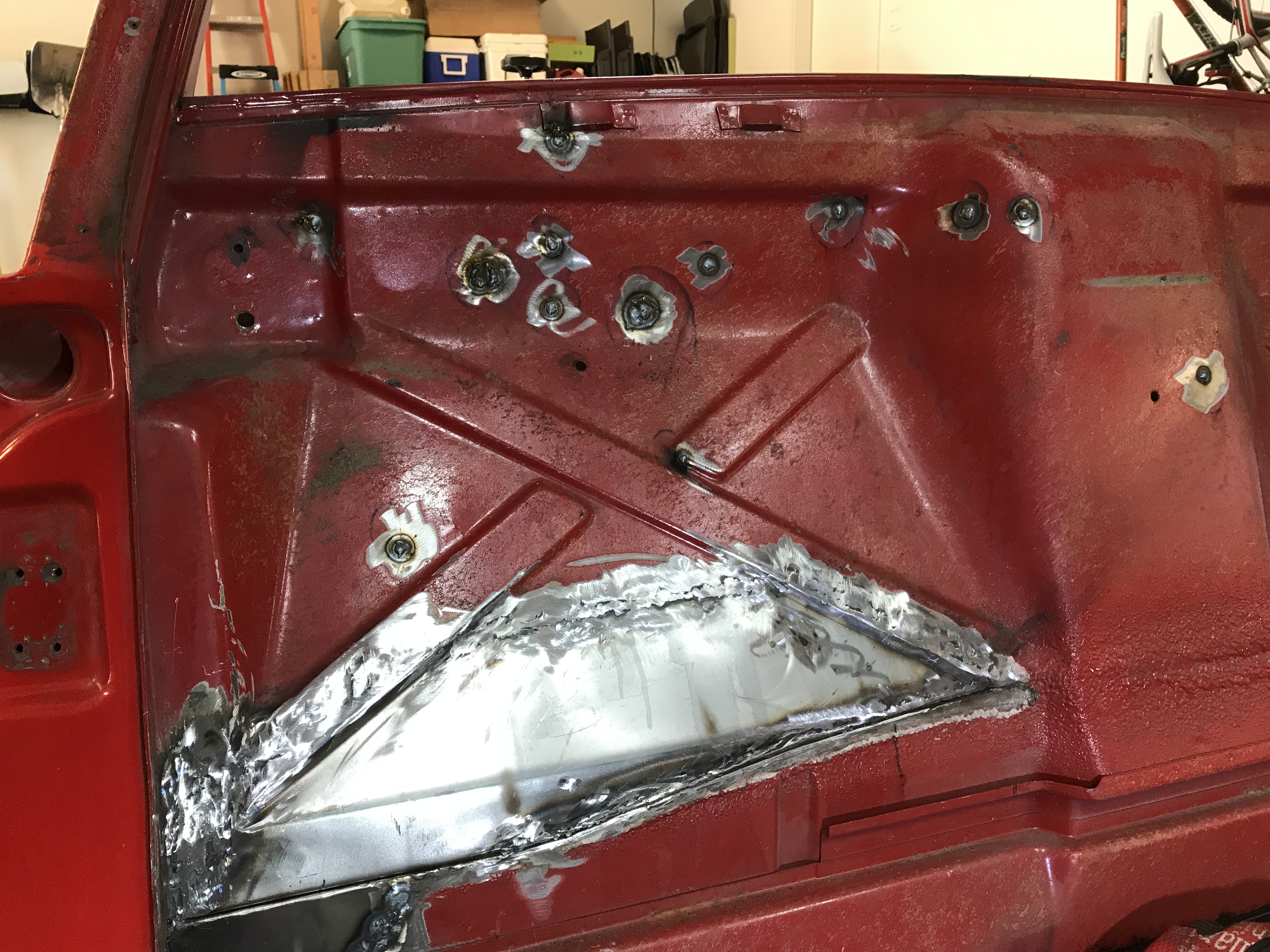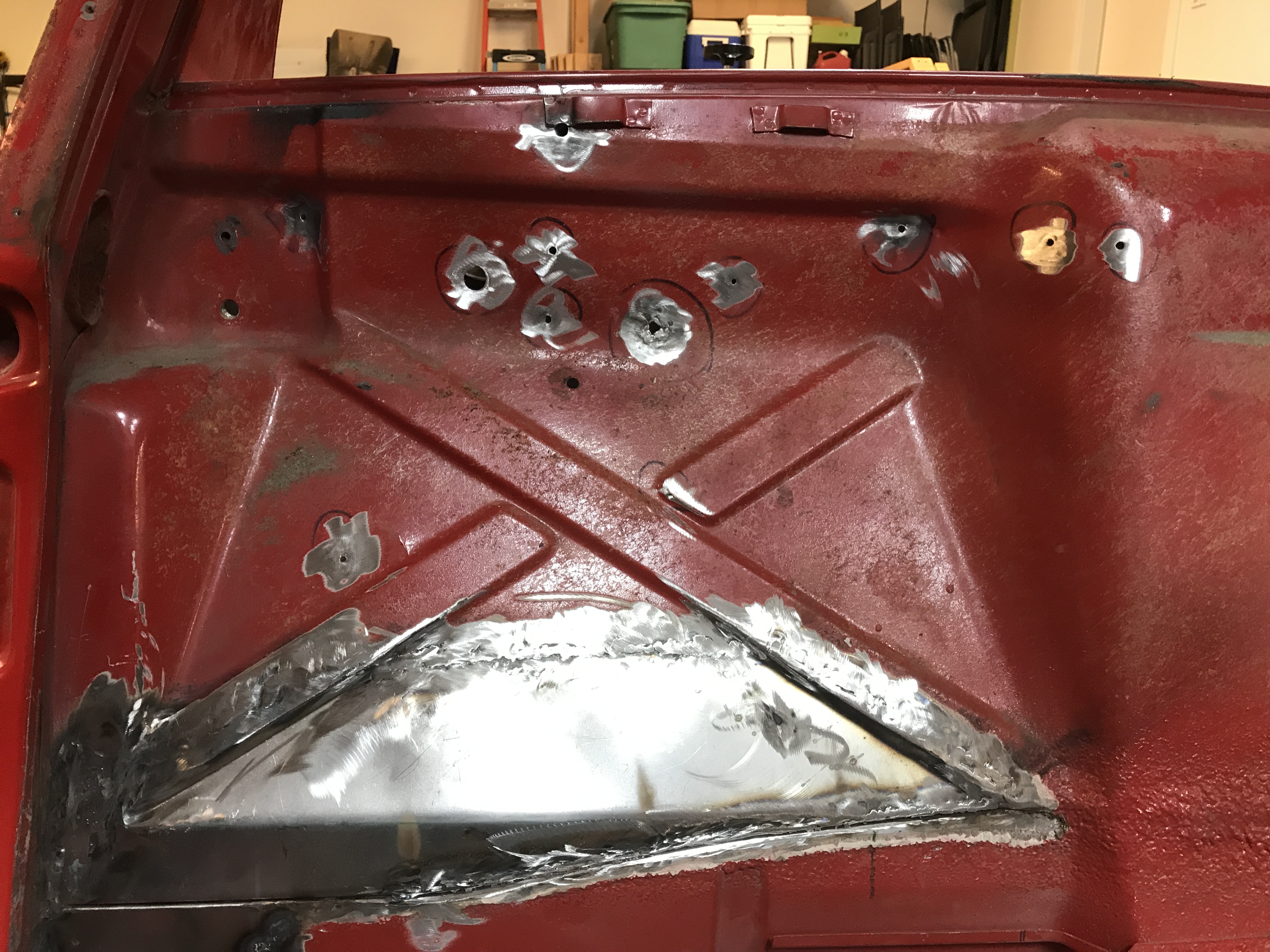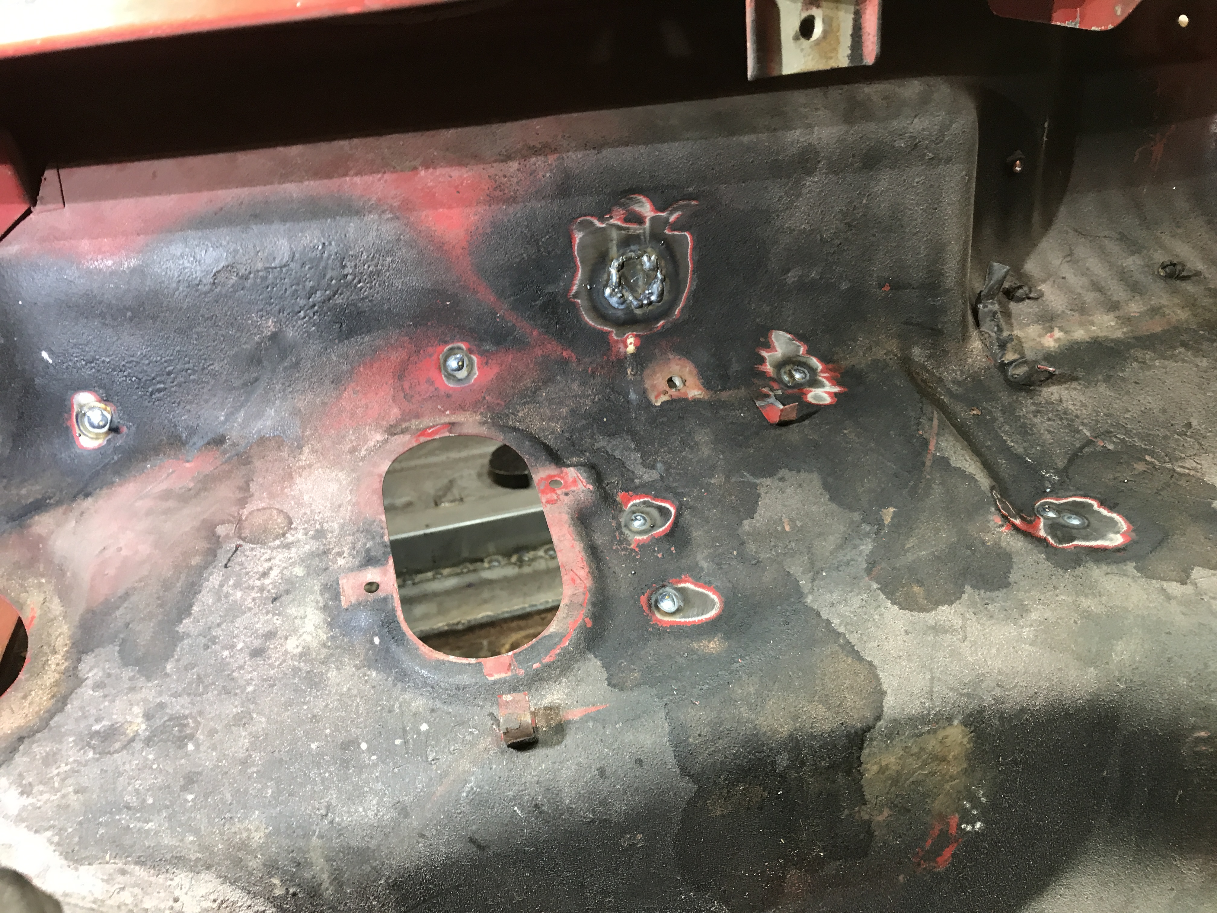Festival of holes, part 2, is done. I patched and welded all the holes in the passenger side firewall...