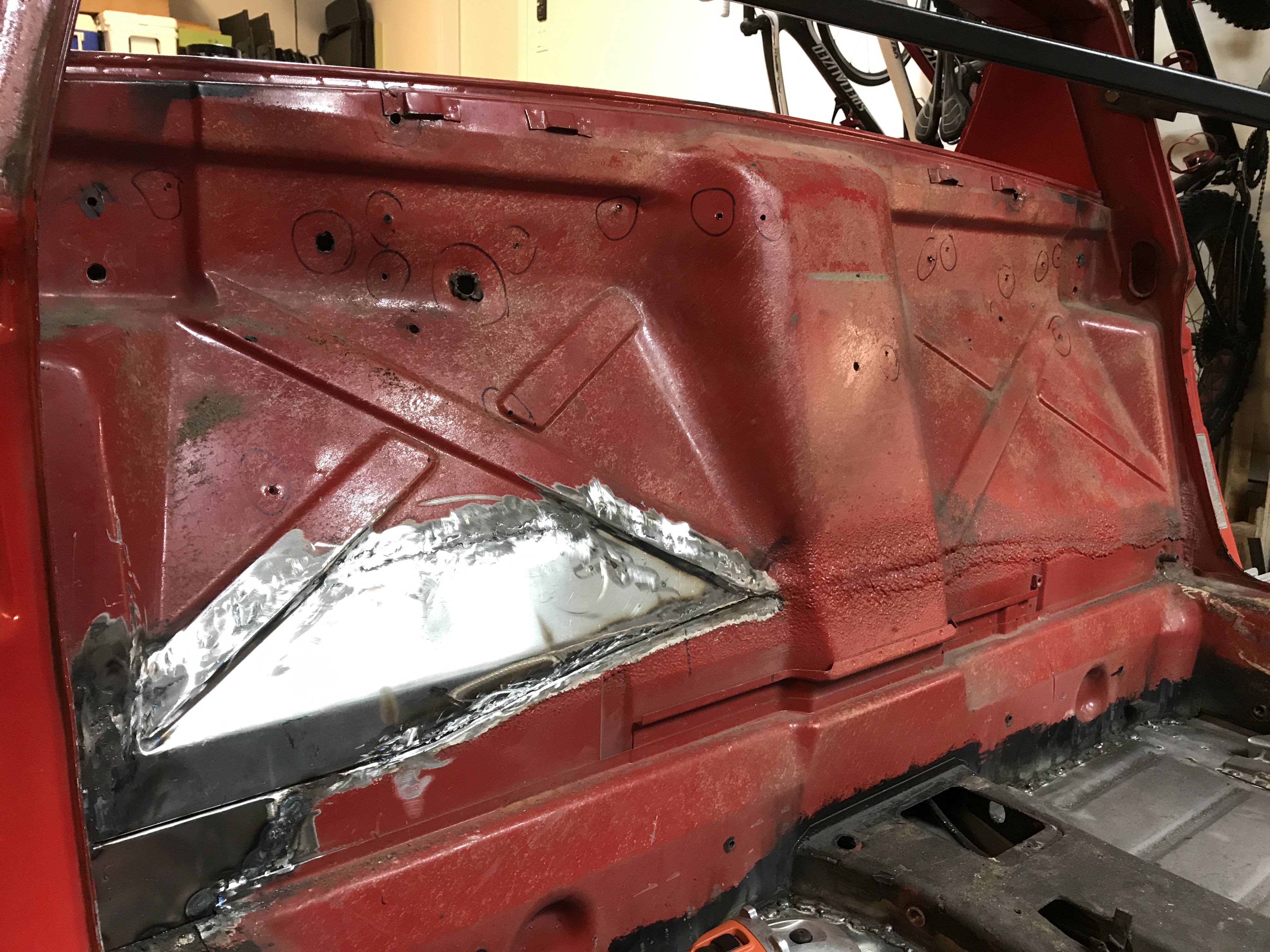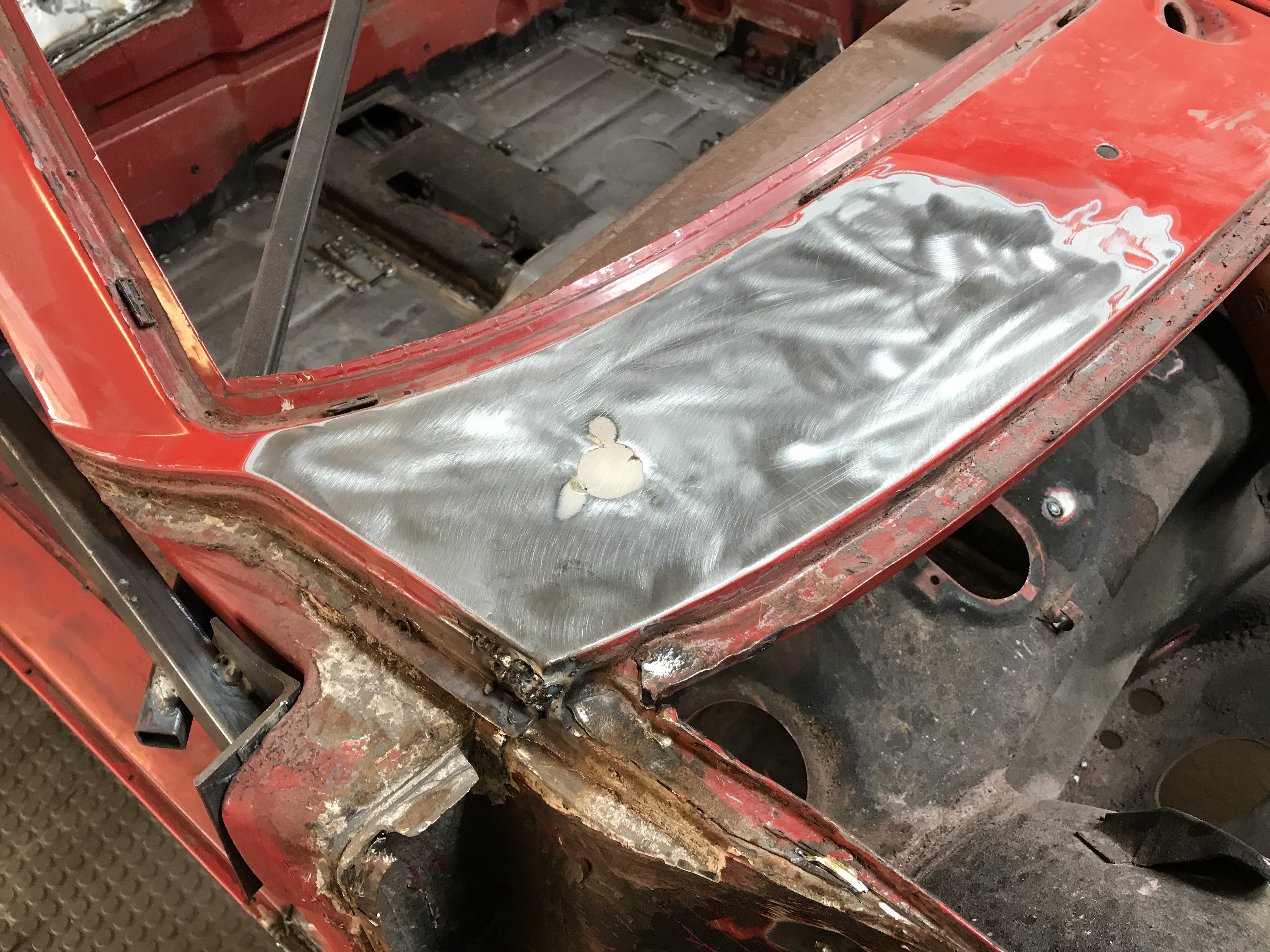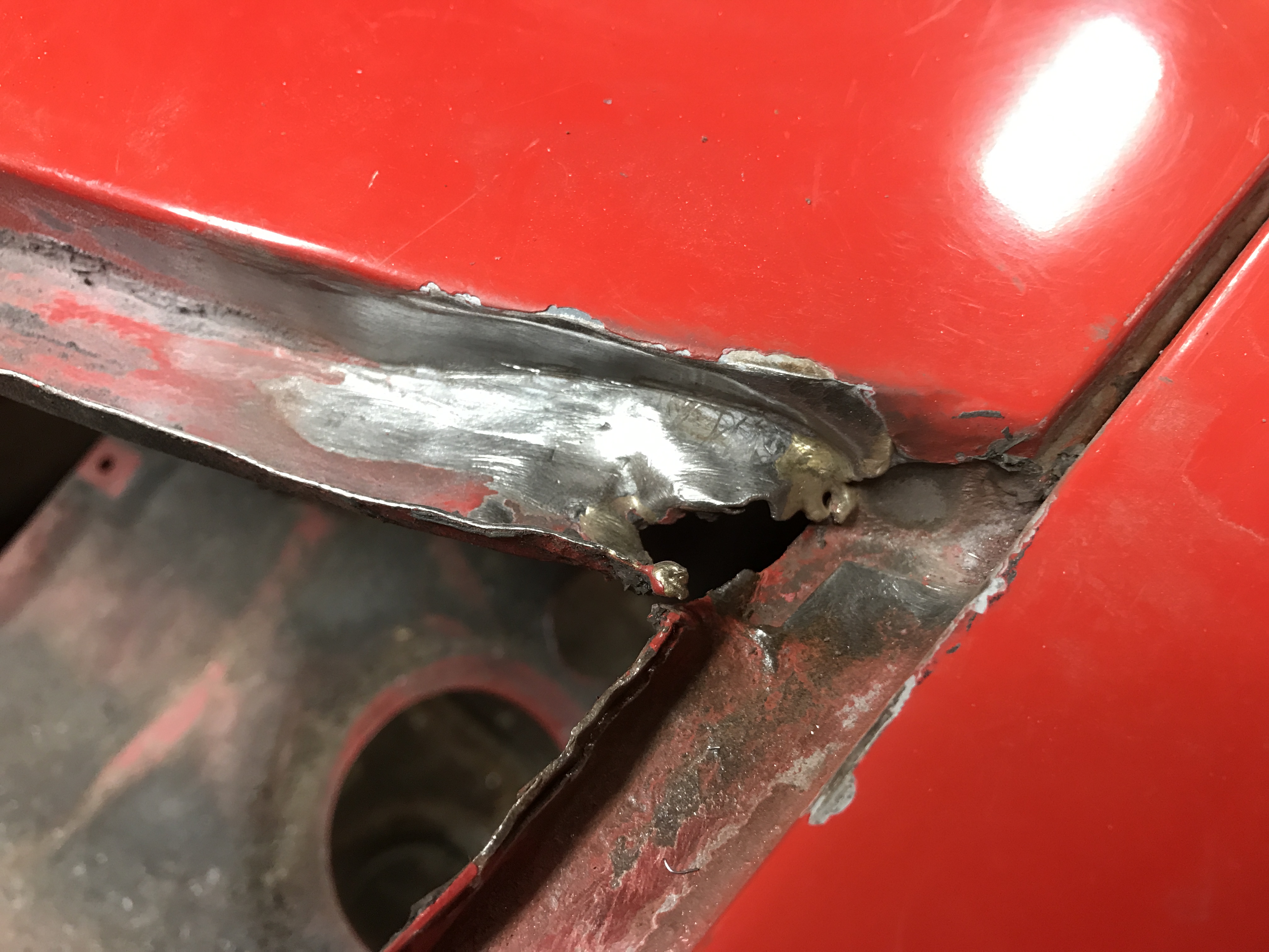 Festival of holes, part 2, is done. I patched and welded all the holes in the passenger side firewall...