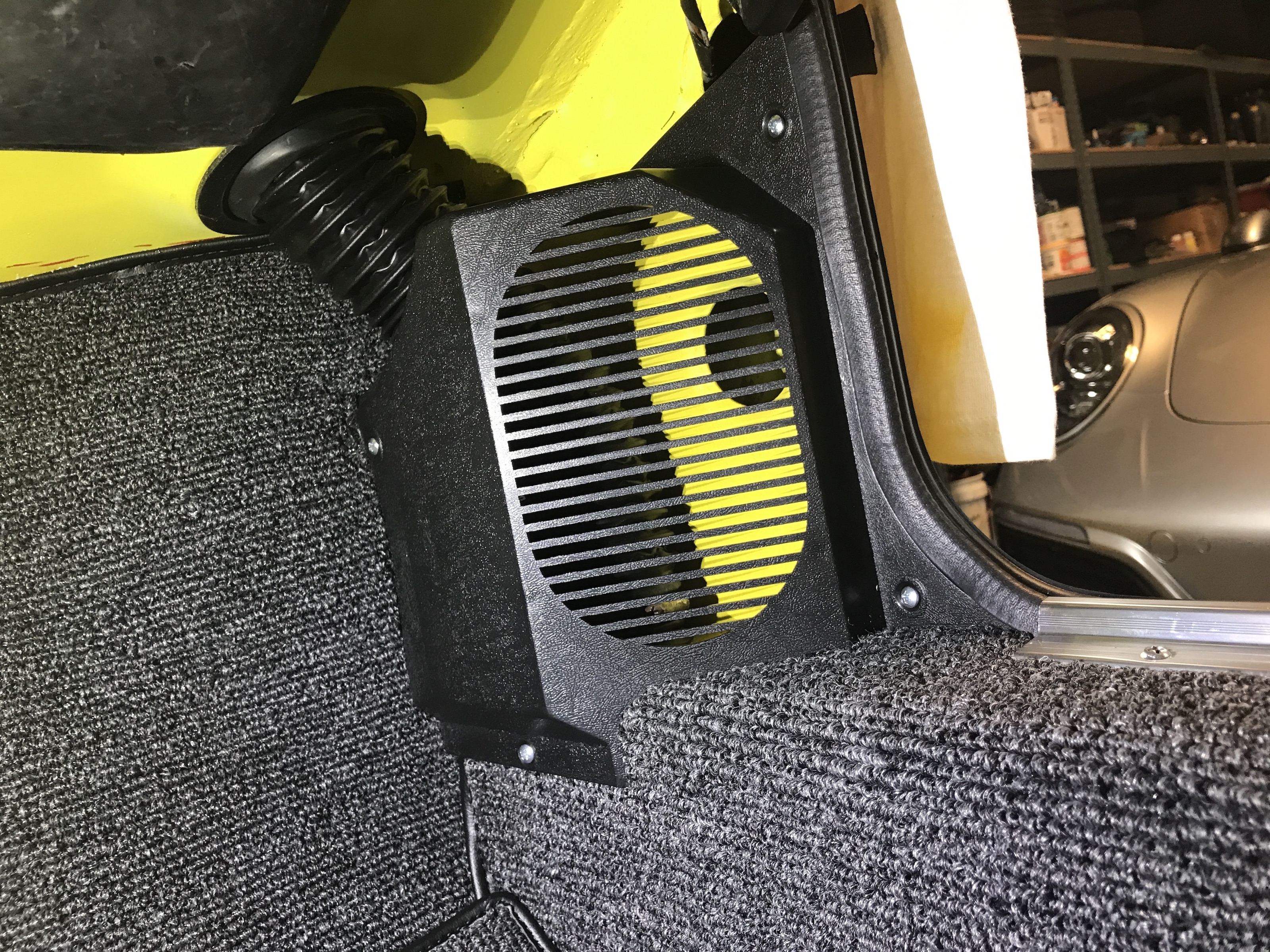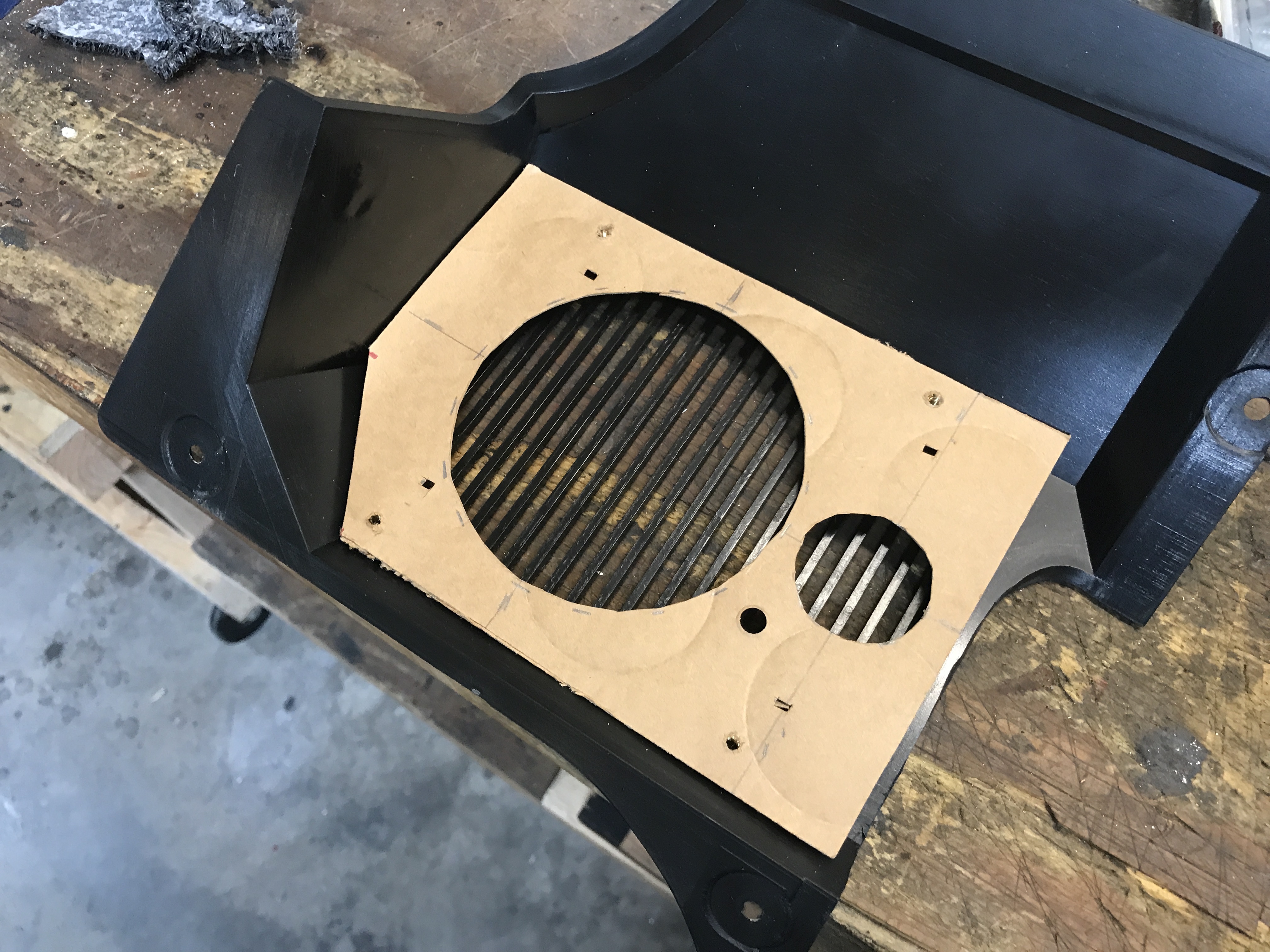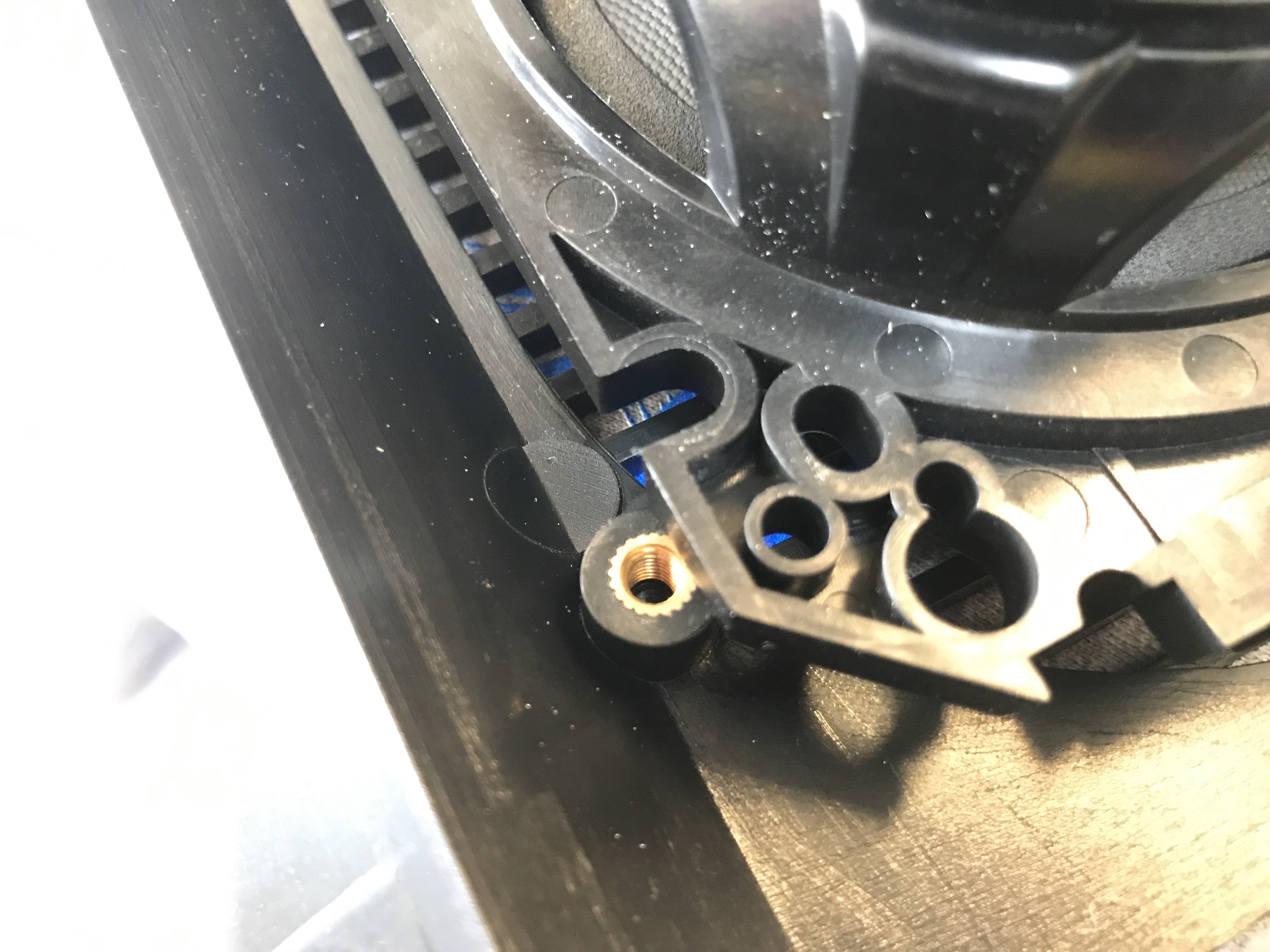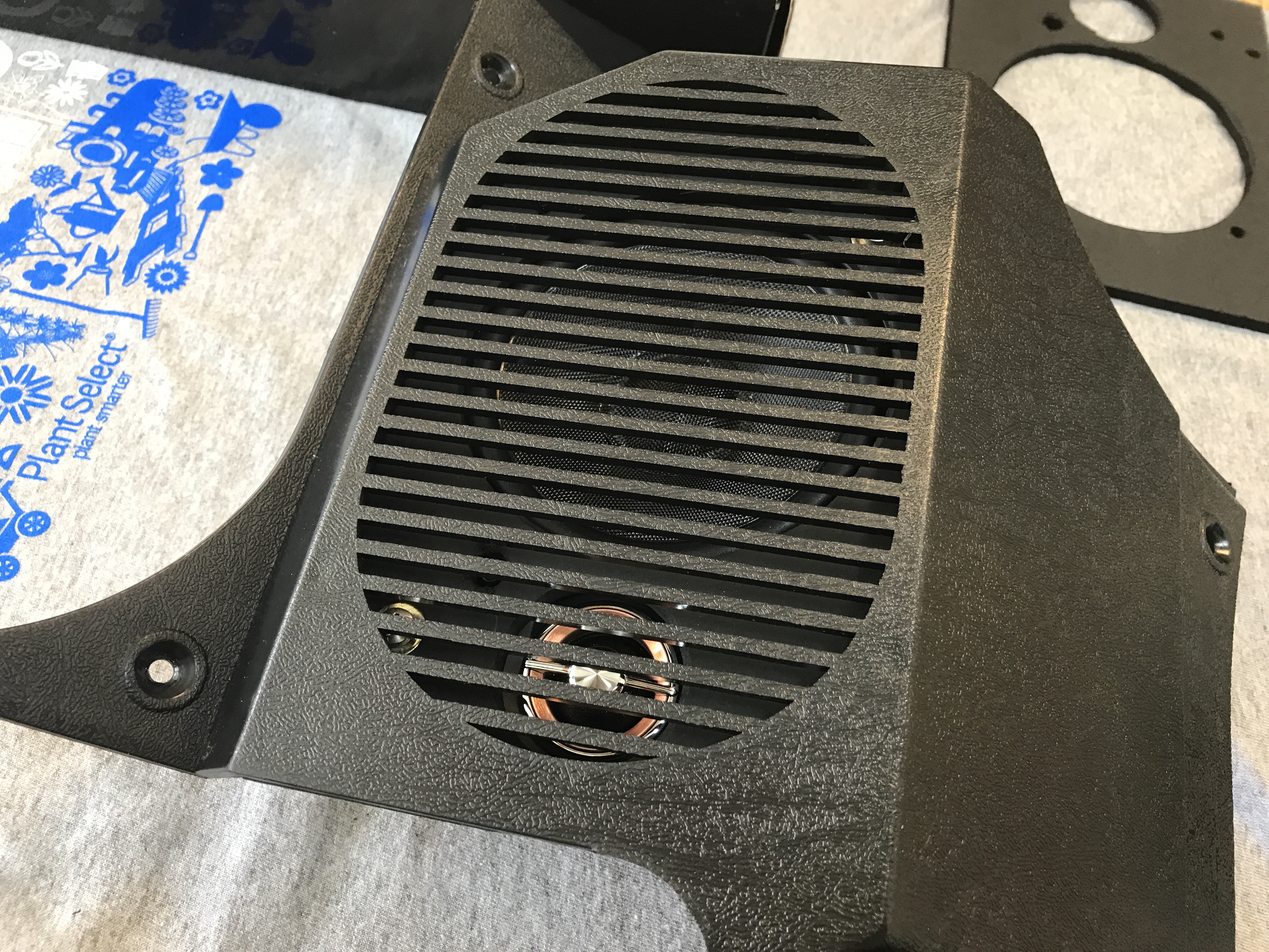 One more mod: for the speaker to sit closer to the grill, it has to sit between the pod mounting studs. But the speaker plate is about 4 mm too wide.