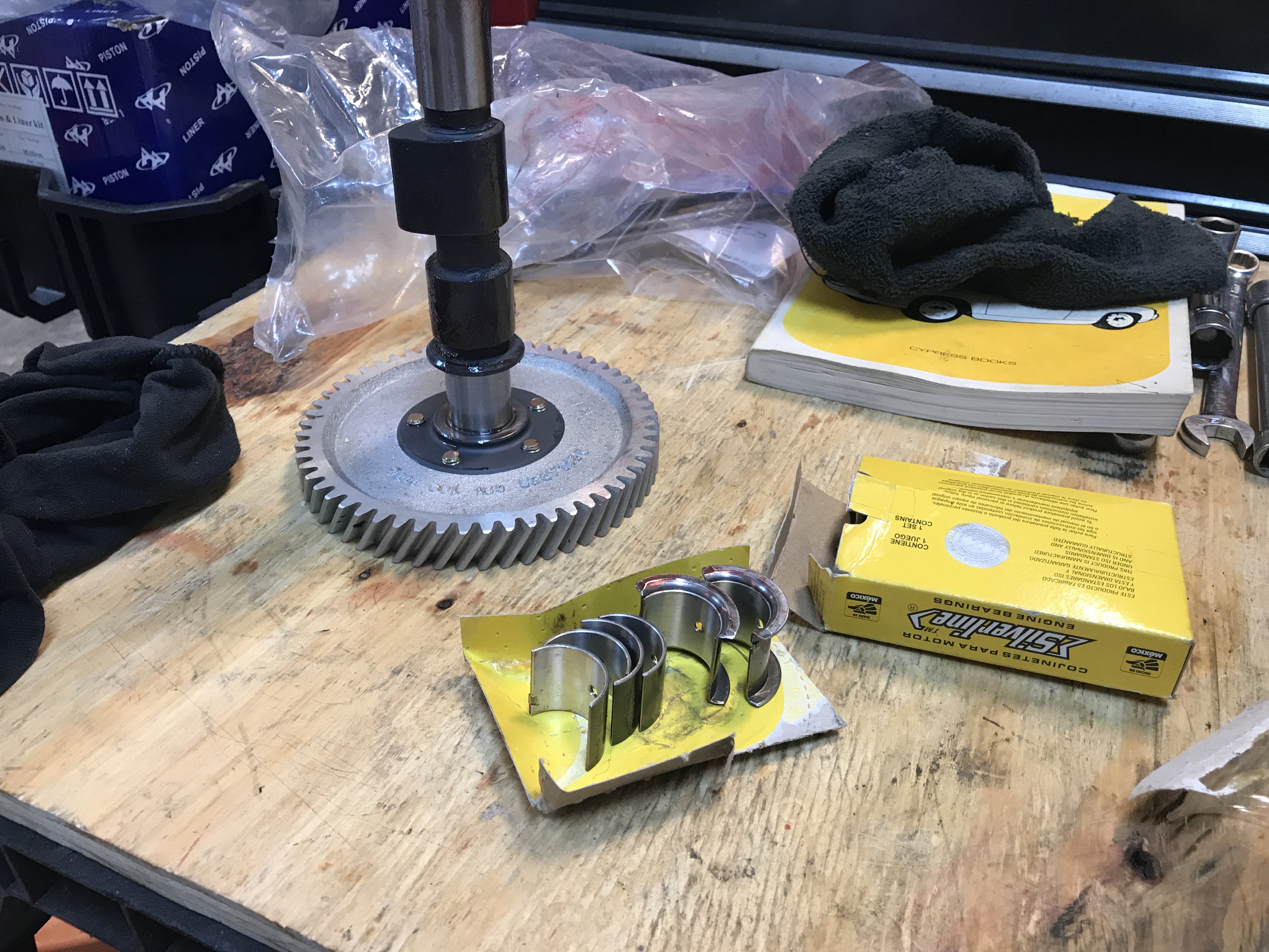 Here's the cam shaft (Web Cams #86) and bearings, including the second thrust bearing. Attached thumbnail(s) |