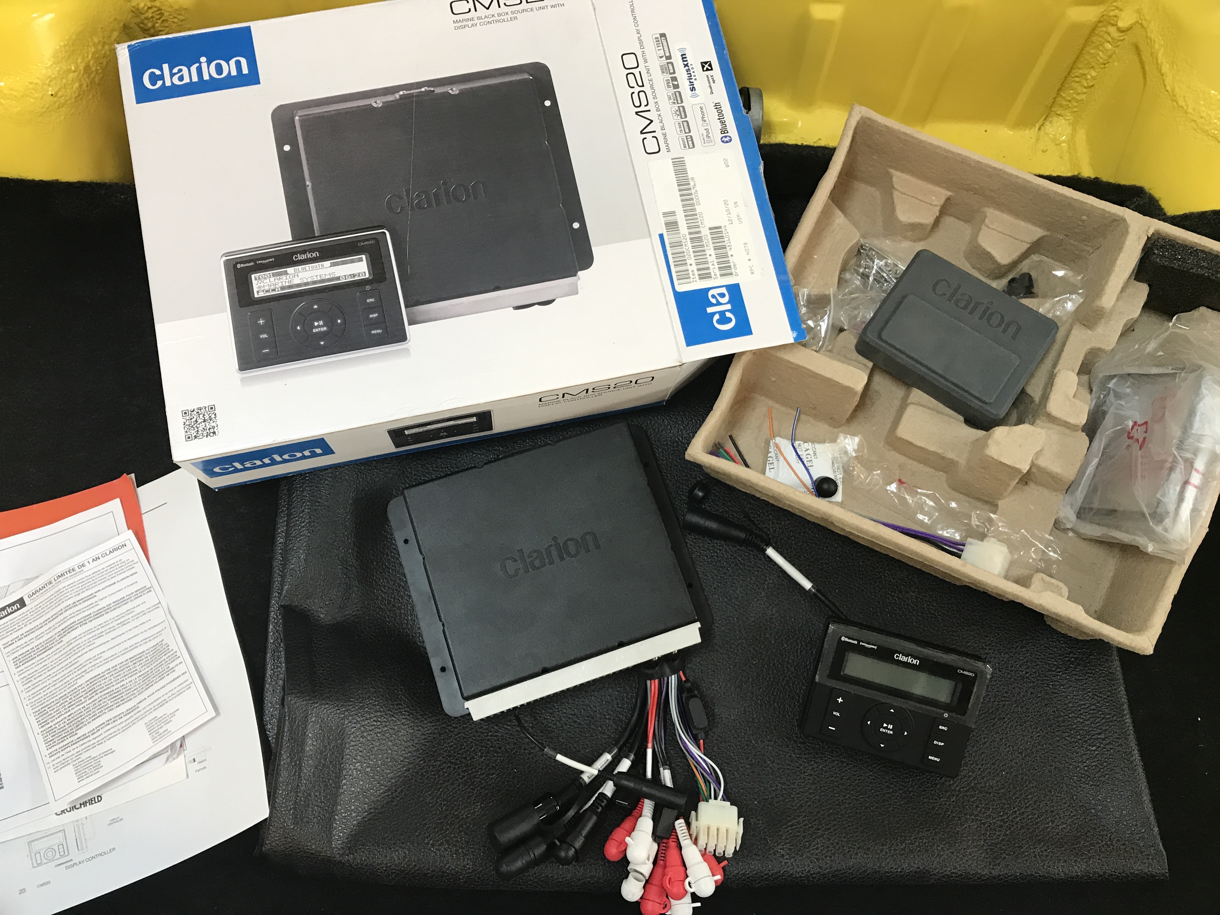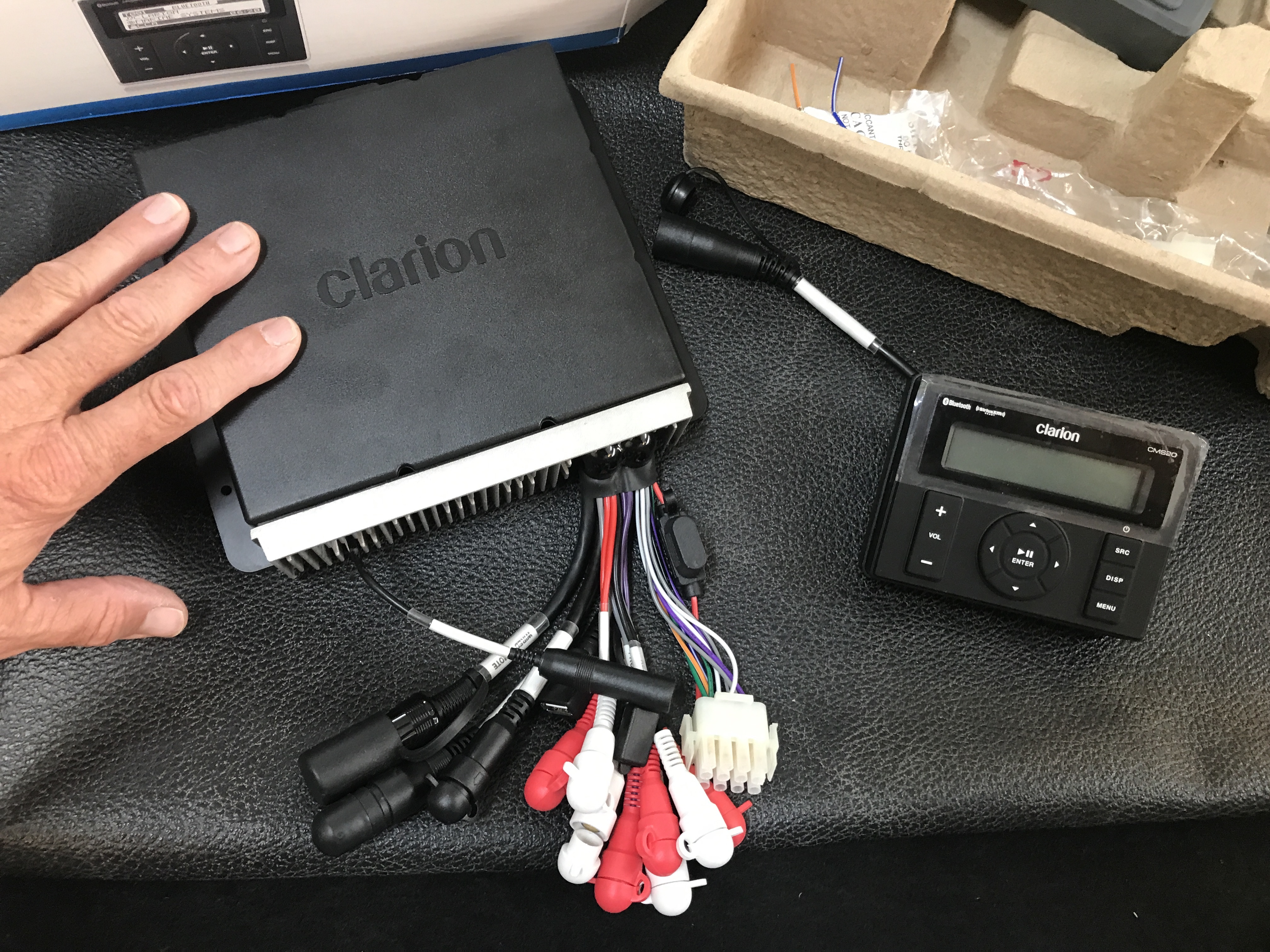 The main box is pretty light and compact, and provides AM-FM and both USB and Bluetooth streaming, and can be mounted remotely. The control box connects via cable.
