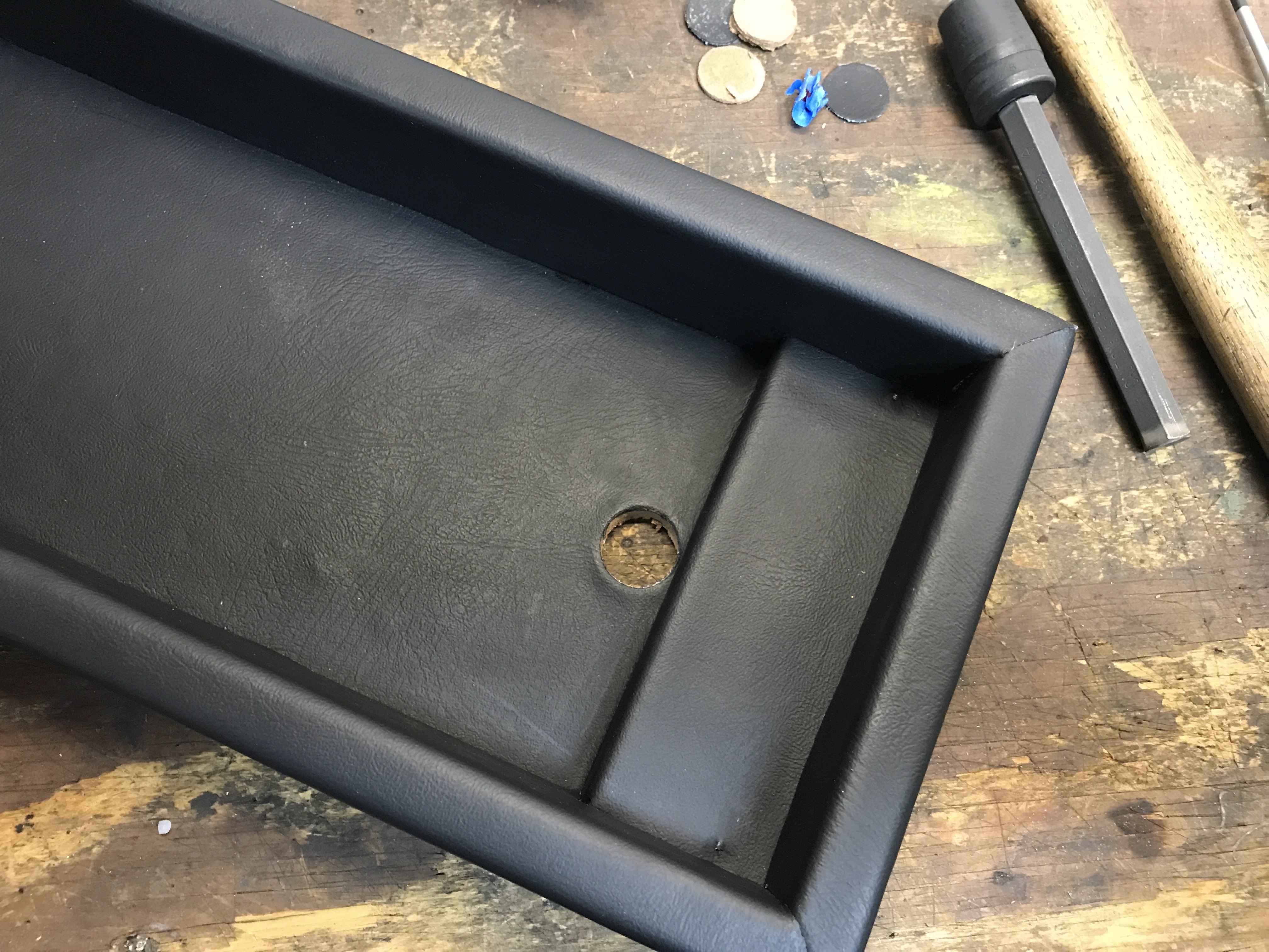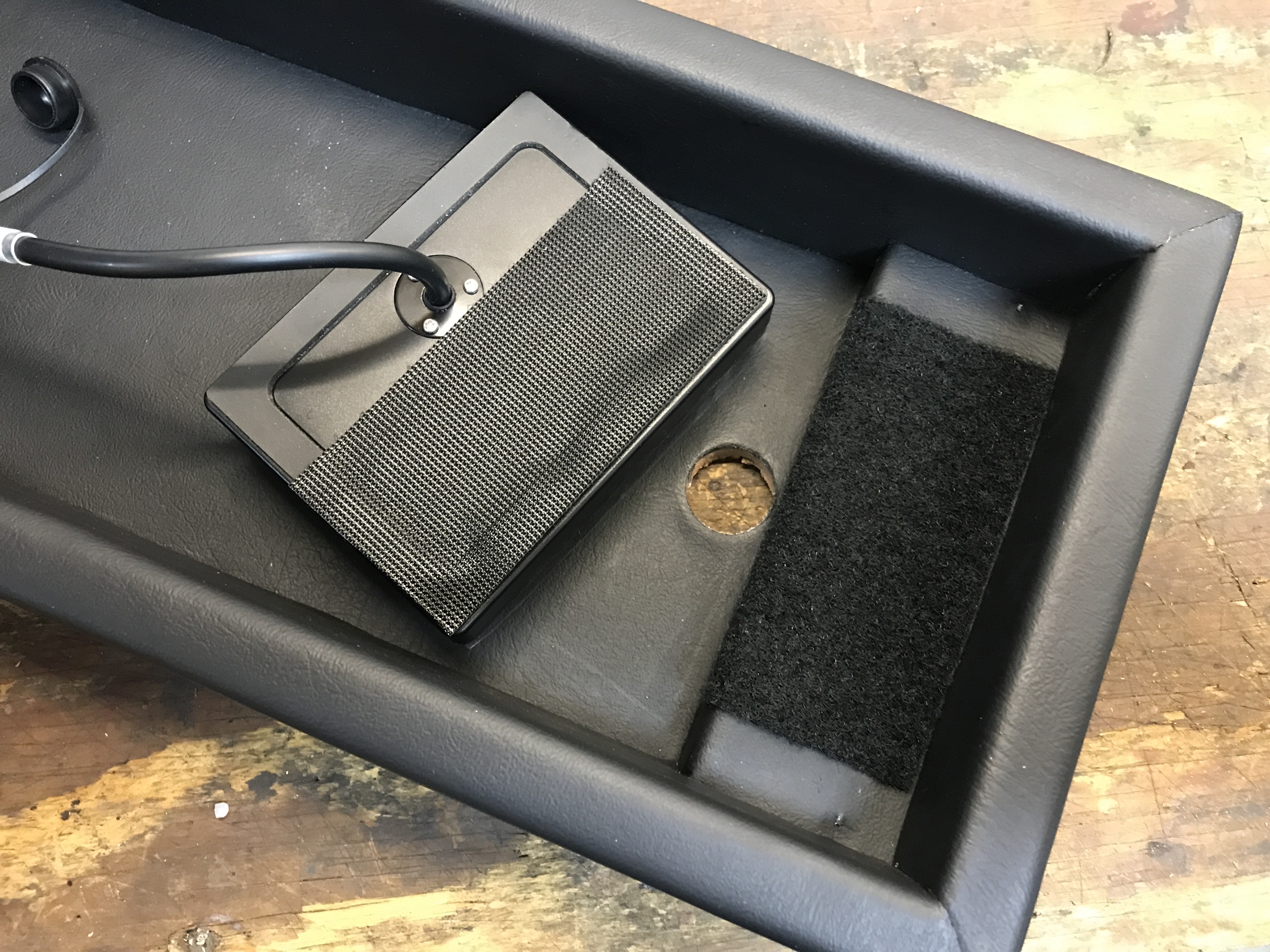 To mount the control in the arm rest I had to punch a hole in the bottom big enough for the cable plug.