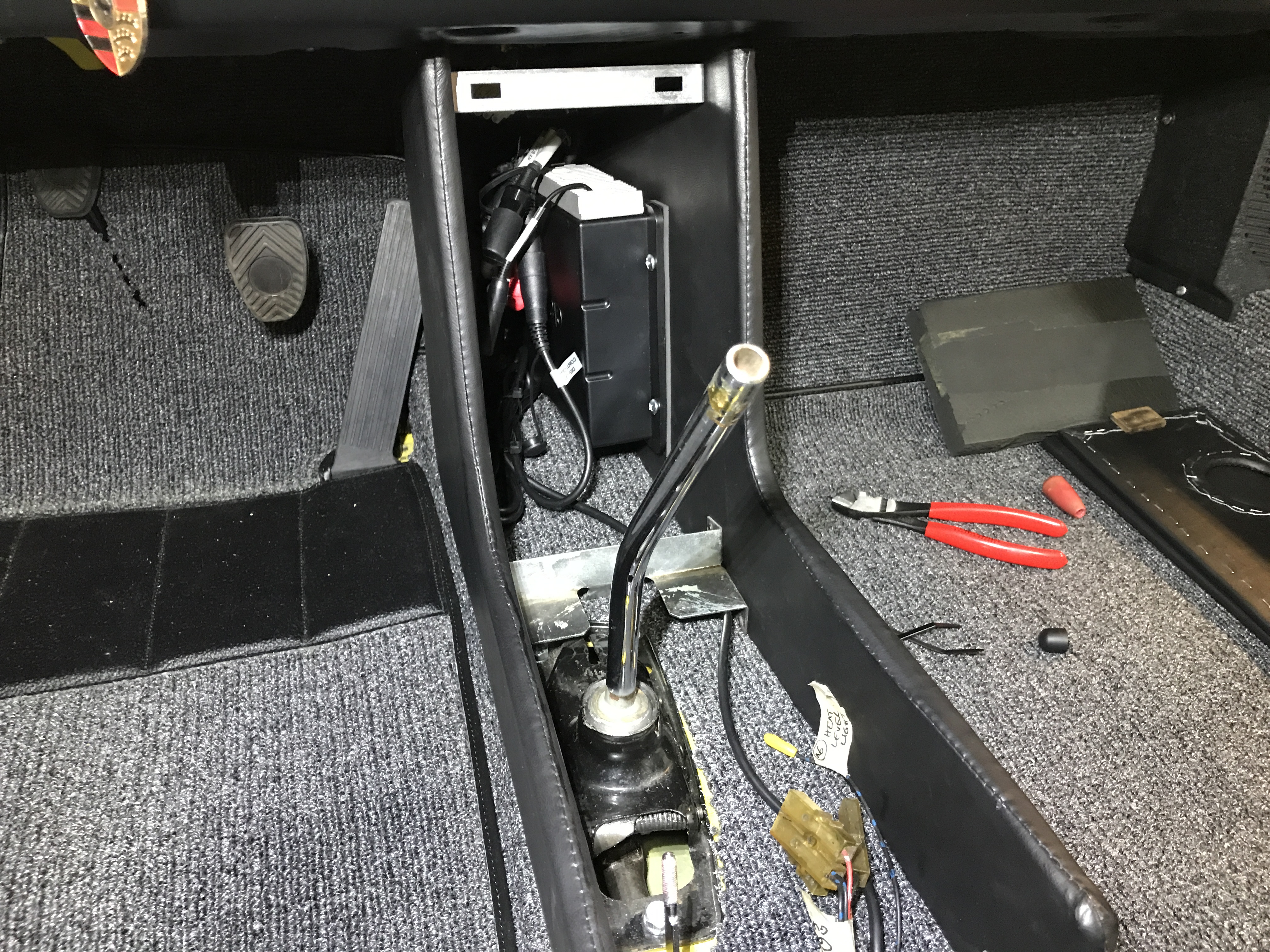 My plan so far: mount the remote box inside the center console, behind the gauges.