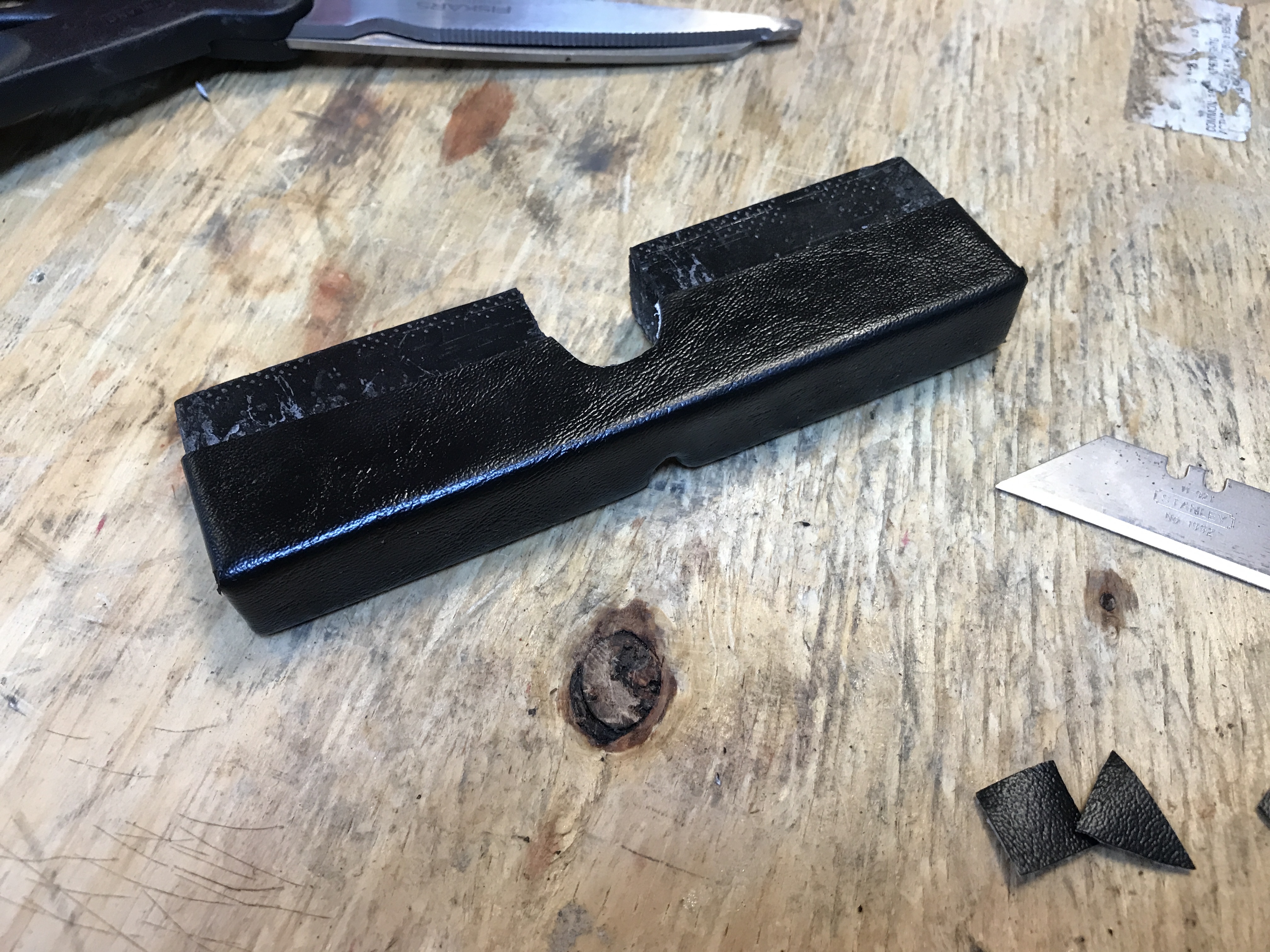 I then finished making a thing, and covered my support for the control box with a scrap of black vinyl.