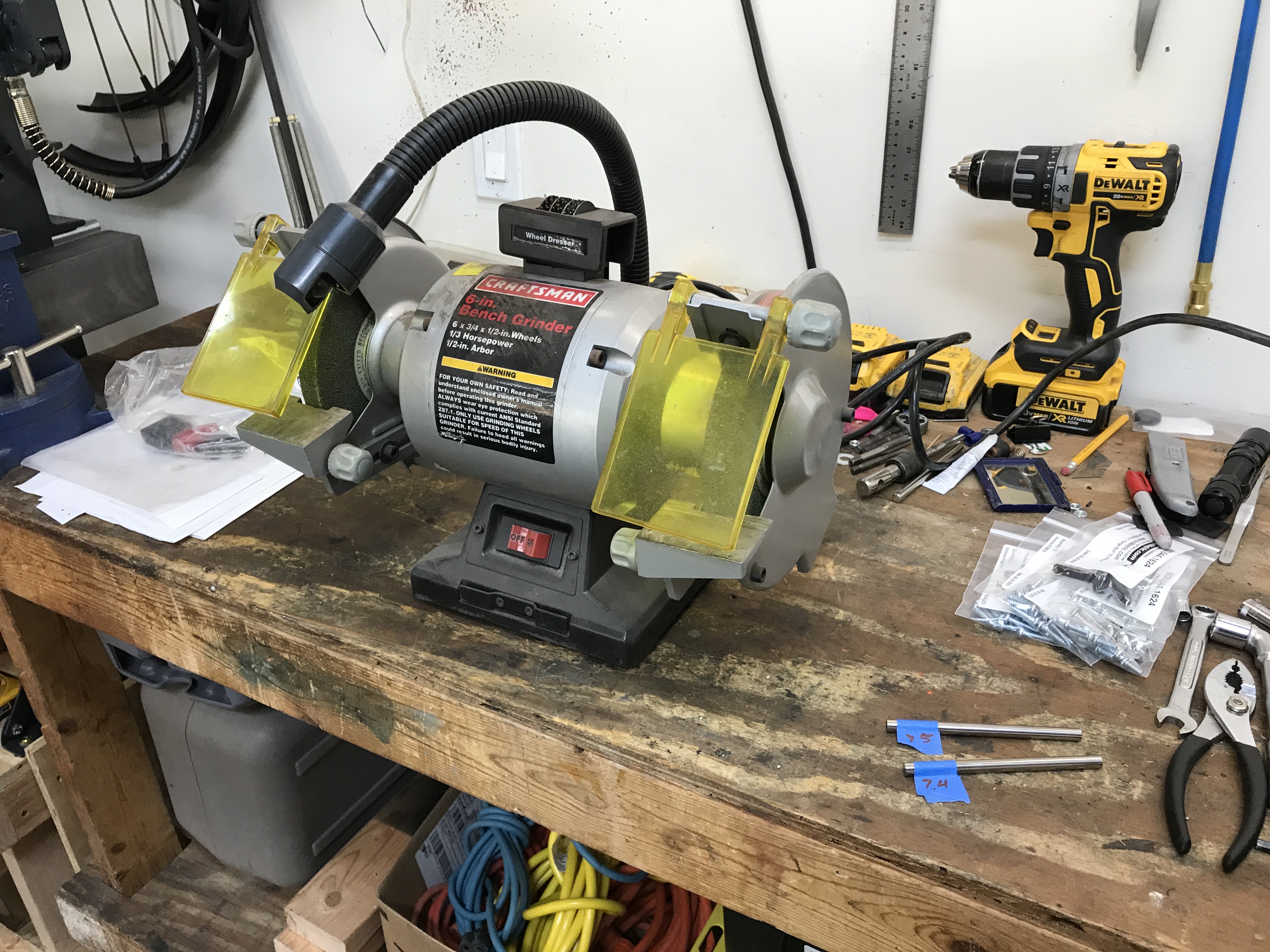 Got my bench grinder onto my bench. Some day in my dream shop I will have more bench space.