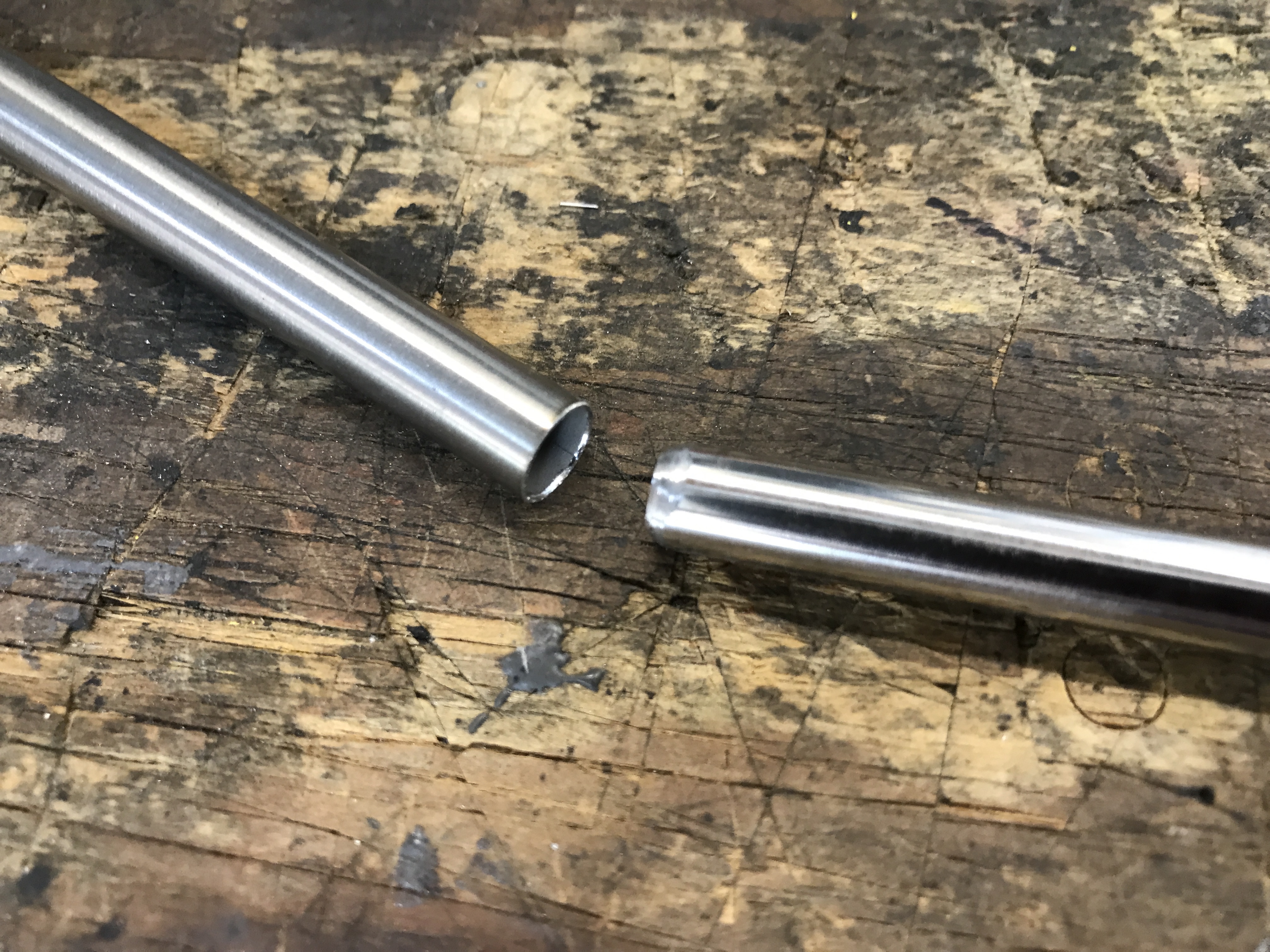 I ground the end of the 7.4 mm rod, so I can use it as a mandrel for the 8.0 mm tubing.