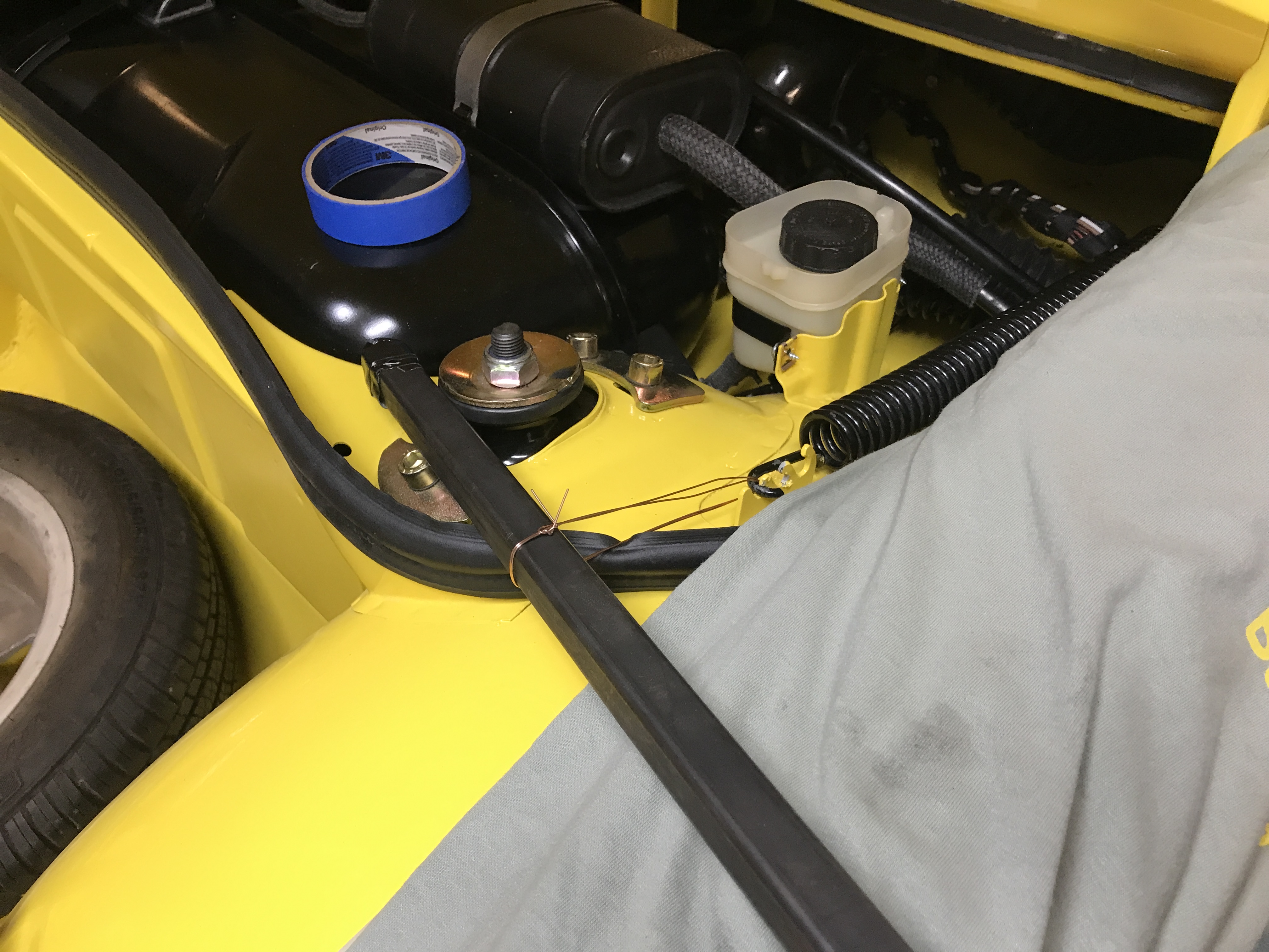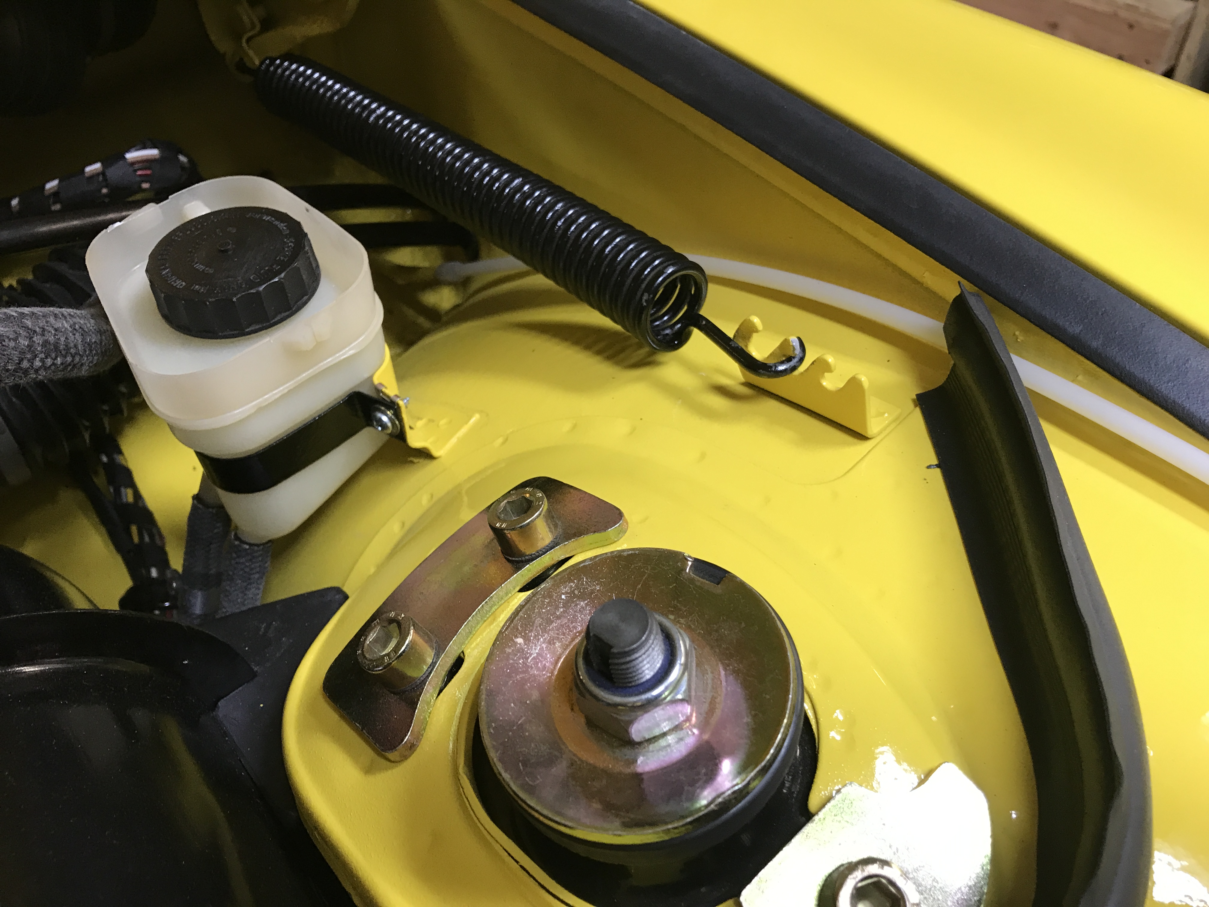 I then tackled the sagging hood. Initially, I put the springs in the middle notch.