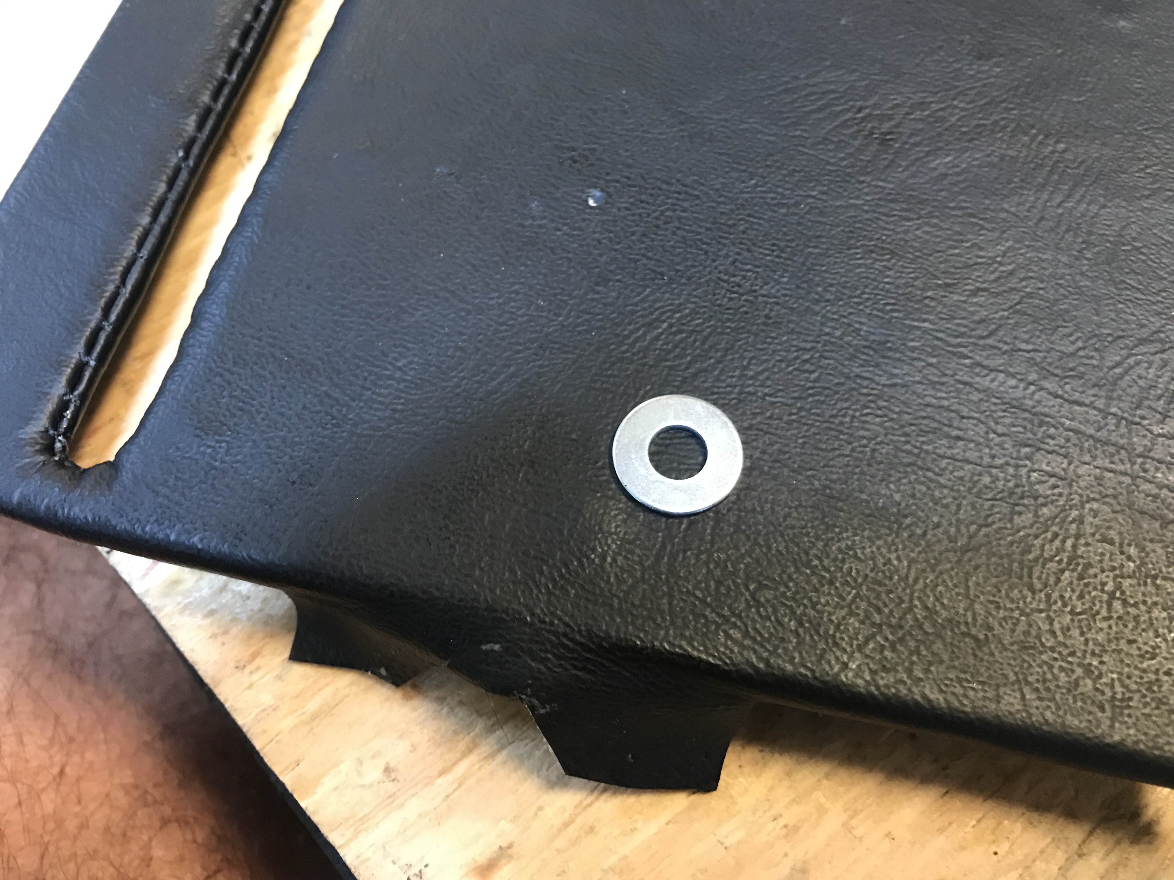 To keep the clip down, I teased open the vinyl along the edge and inserted a thin washer.