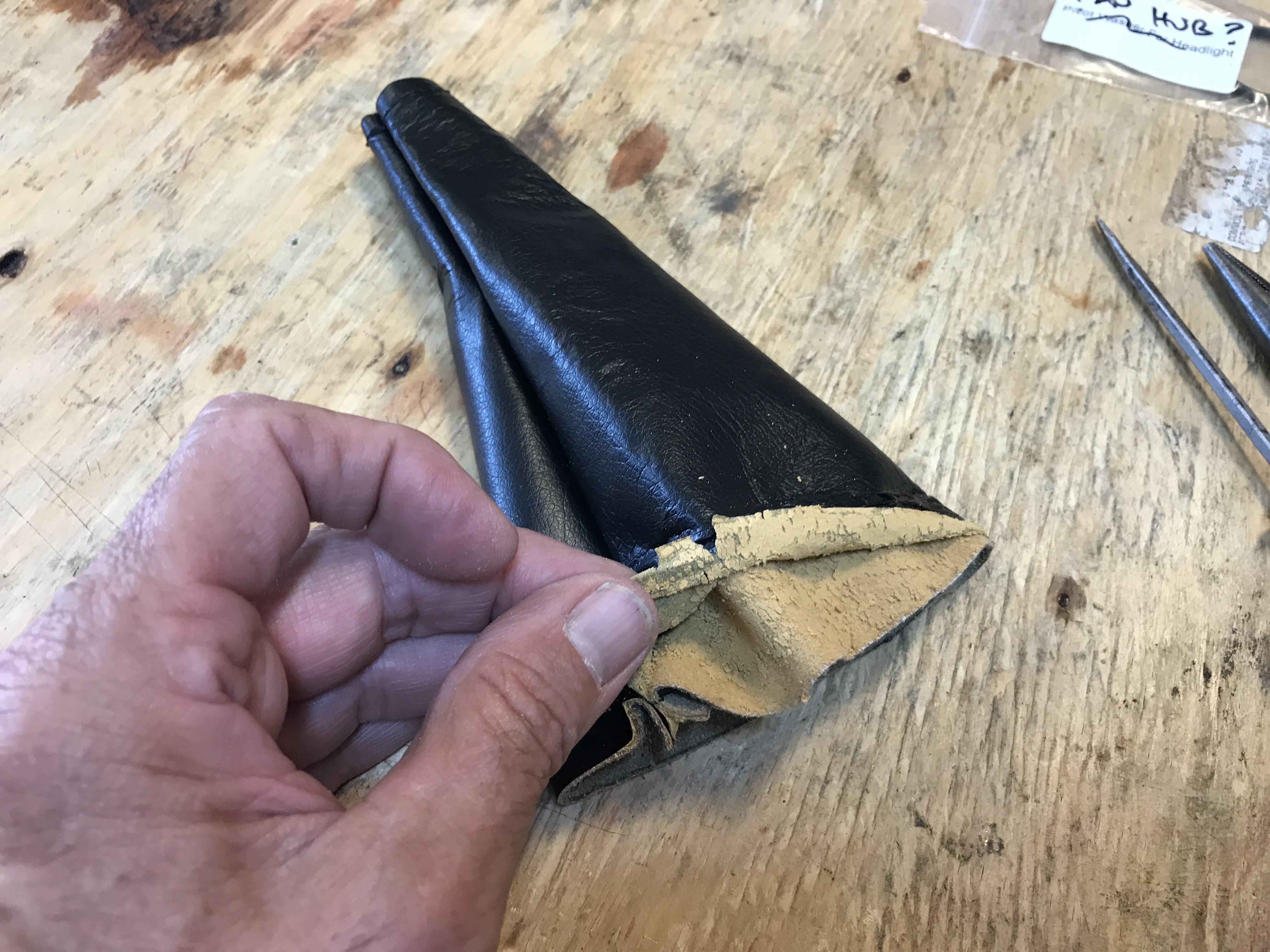 The last thing I need to do is attach the shift lever boot. But the replacement I bough last year is falling apart, and the thin outer layer has separated from the inner material. Very disappointing.