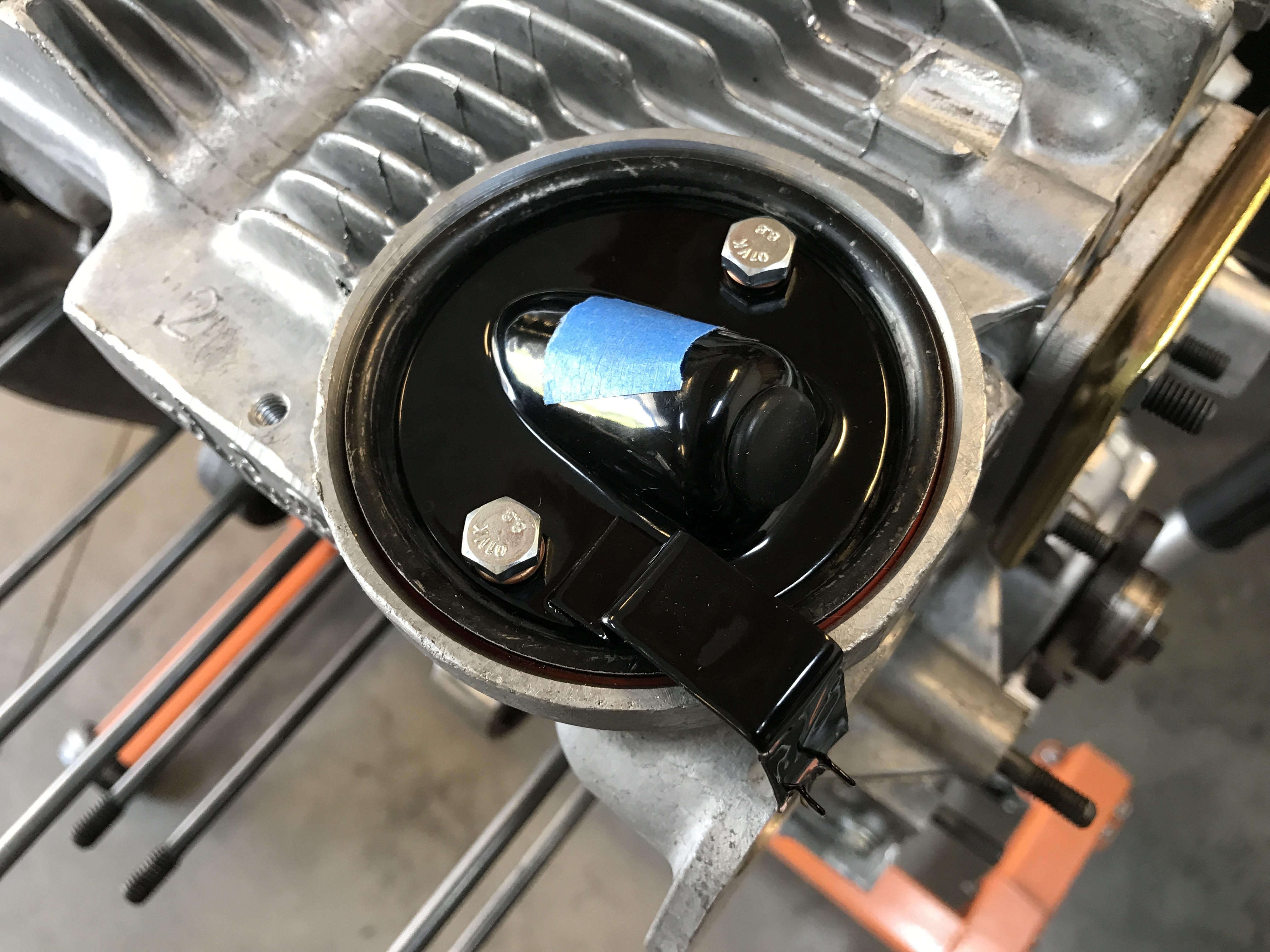 Cover installed temporarily. I will make a new lead and attach that , but only after I get done with most of the engine build.