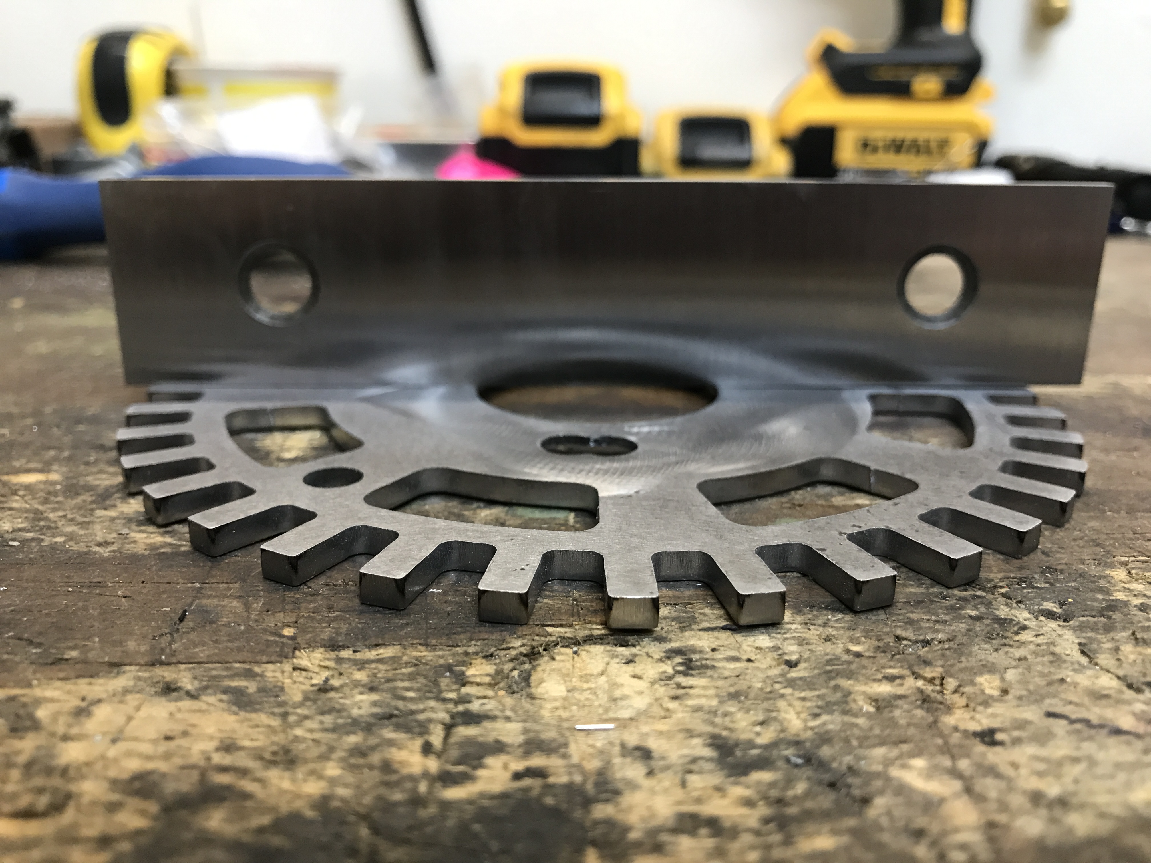 After some rounds of light hammering and checking, I got the wheel to mount flat.