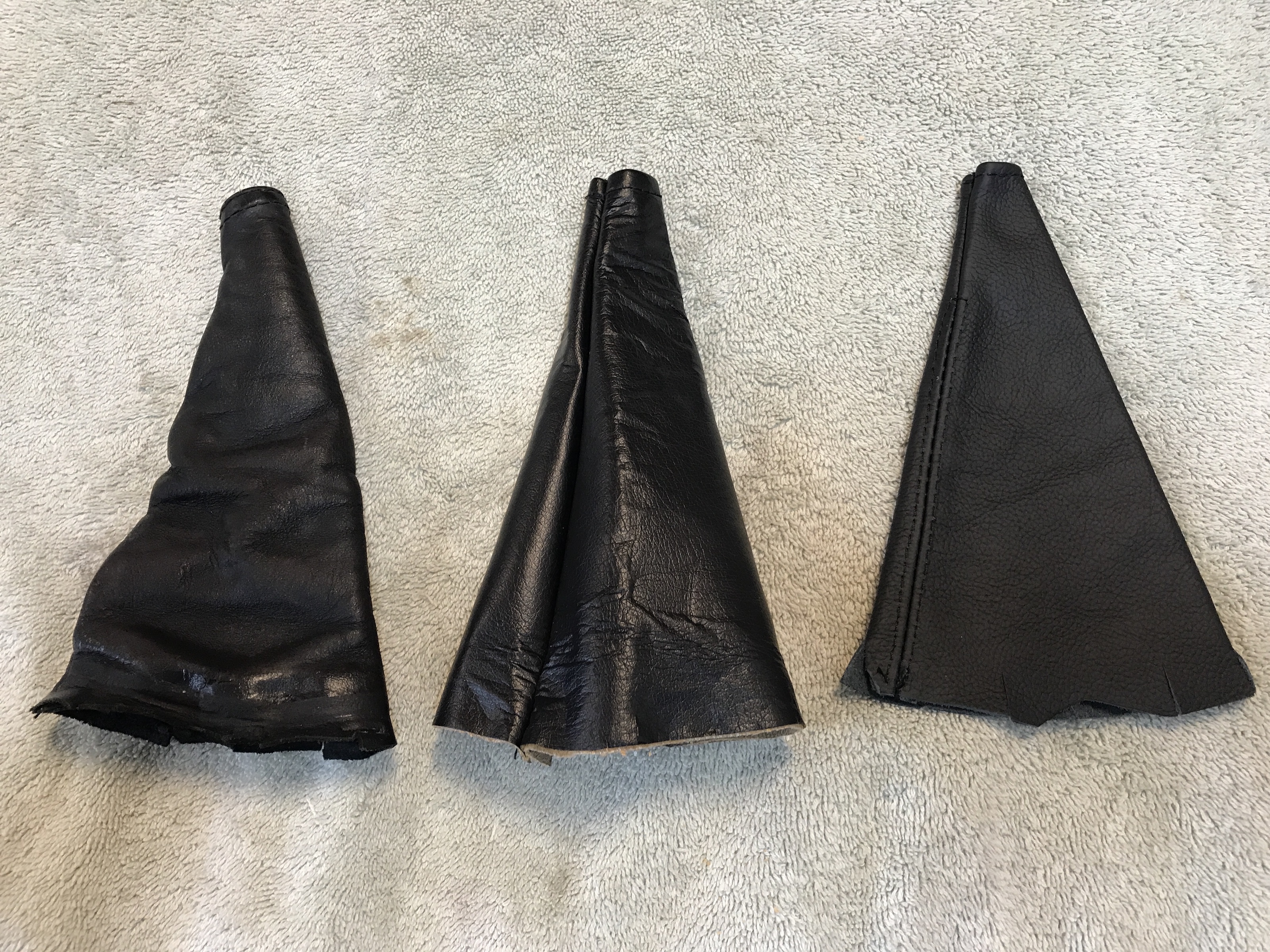 Some more interior bits today. Here are three shift lever boots, from left to right:
