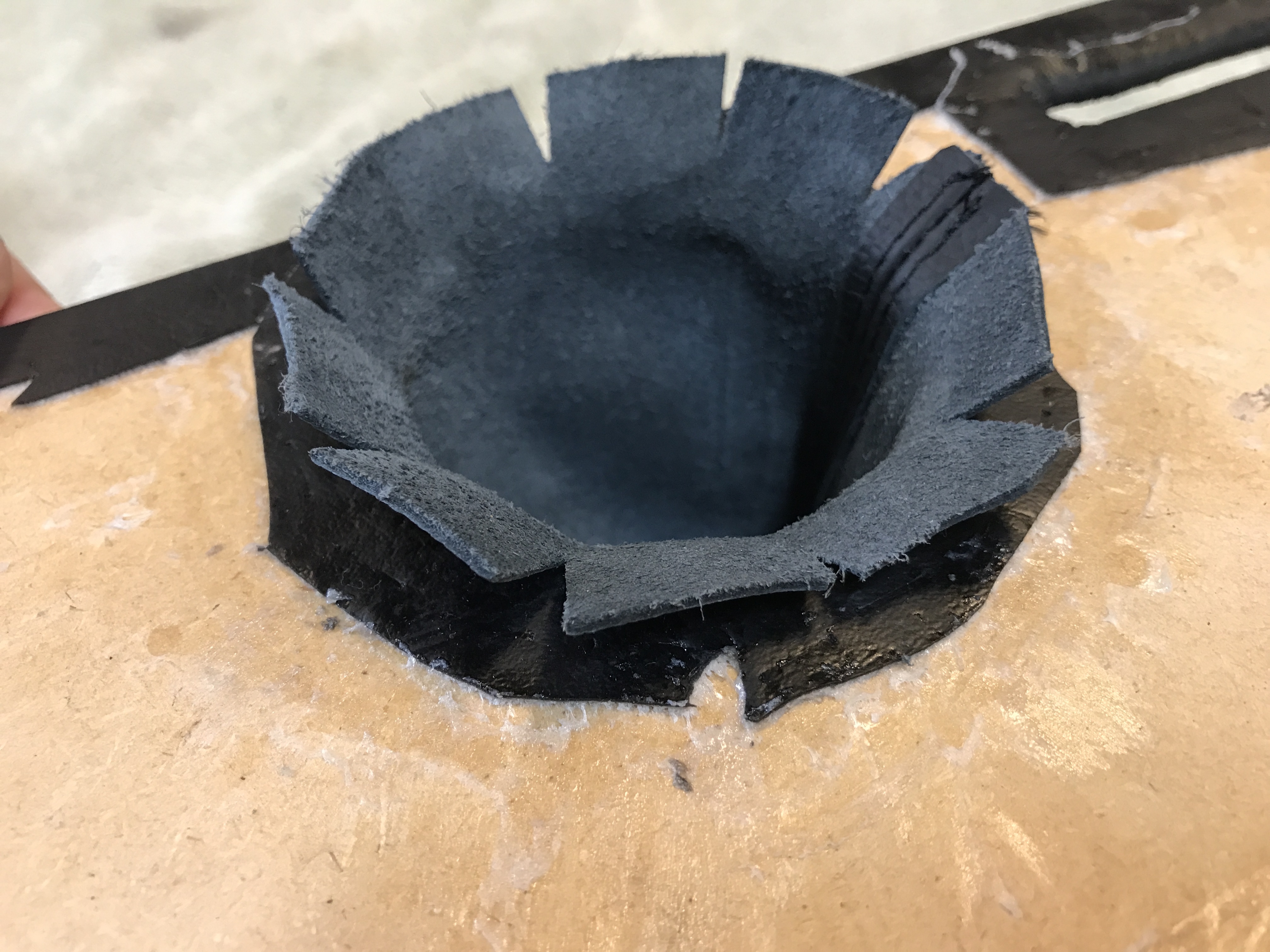 Before installing the panel, I wanted to hide the bight stuff visible through the slot for the heater control lever.