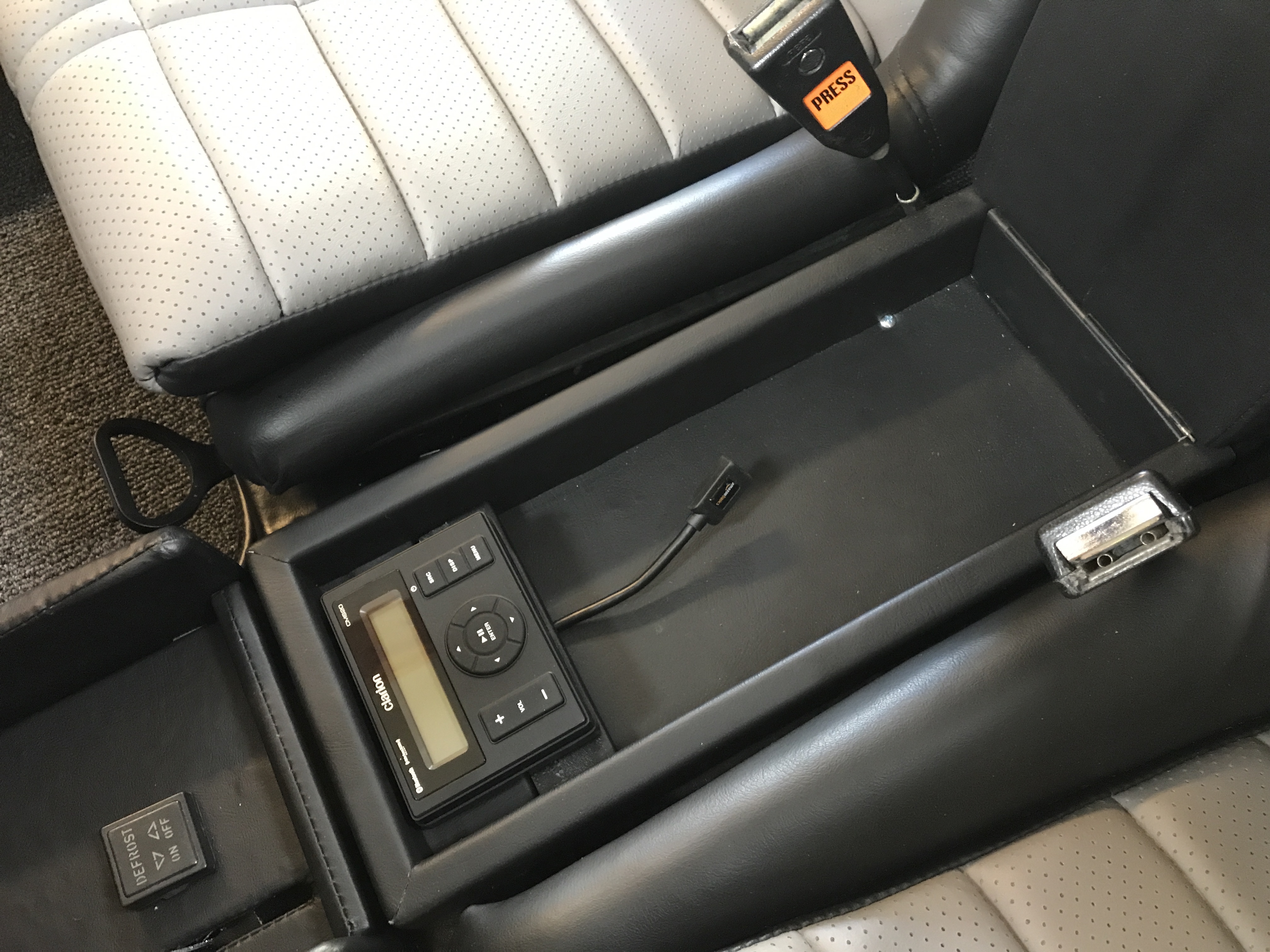 After that, I fastened down the arm rest, with the hidden control for the hidden audio system, complete with USB plug for phones.